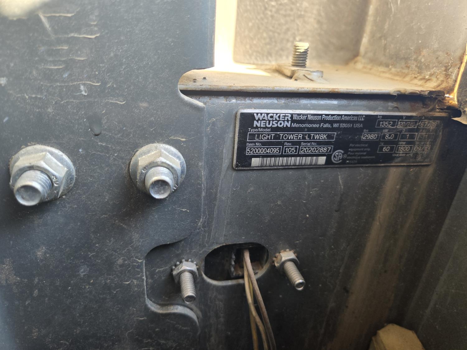 52 2013 Wacker Neuson LTW8 Towable Light Tower (Inoperable)