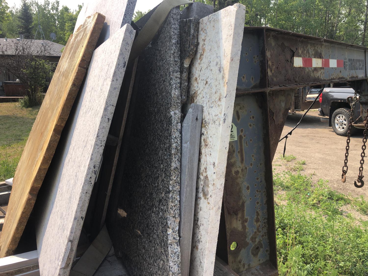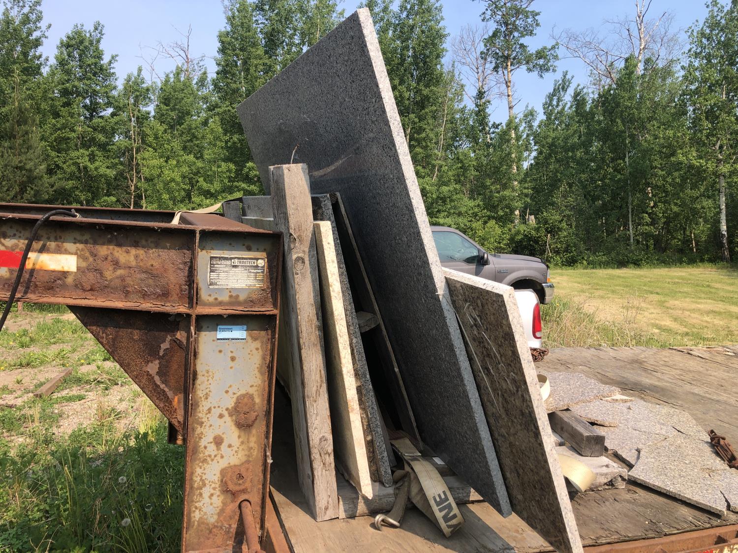 wood deck, flip over ramps, spring suspension, rub rails, stake pockets, Selling trailer qty of granite pieces, 235/85R16 tires
