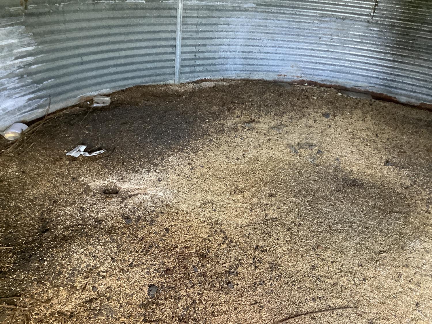 wood floor, Bin # 9. Note: There is a bit of spoiled grain in bin so take caution, if floor is in poor condition it can stay behind