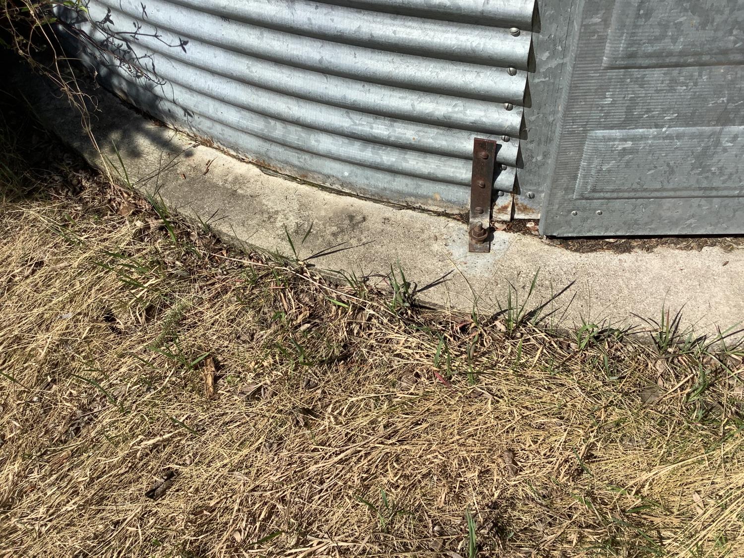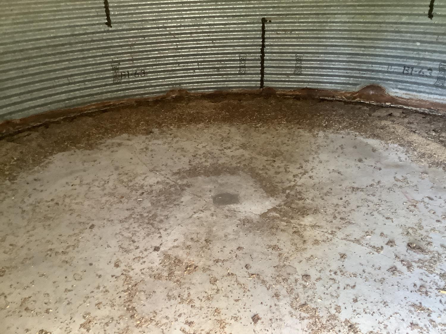 on concrete floor, Bin # 12. Note: There is no spoiled grain in bin. Buyer may have to cut trees away to remove bin.