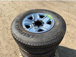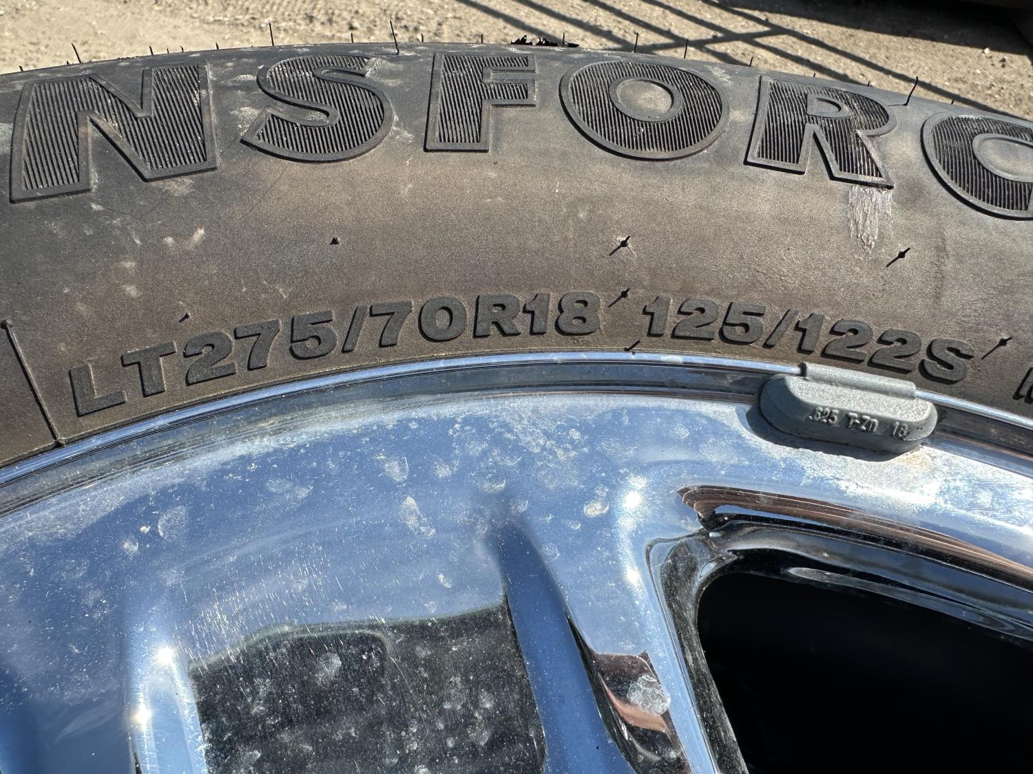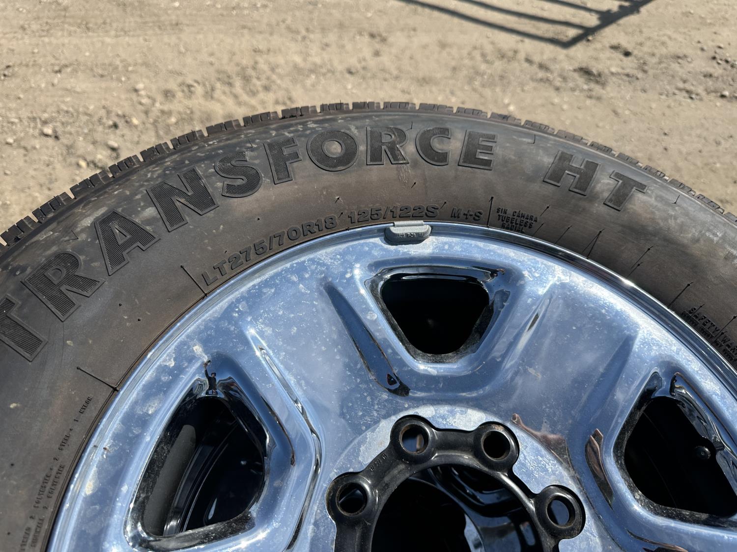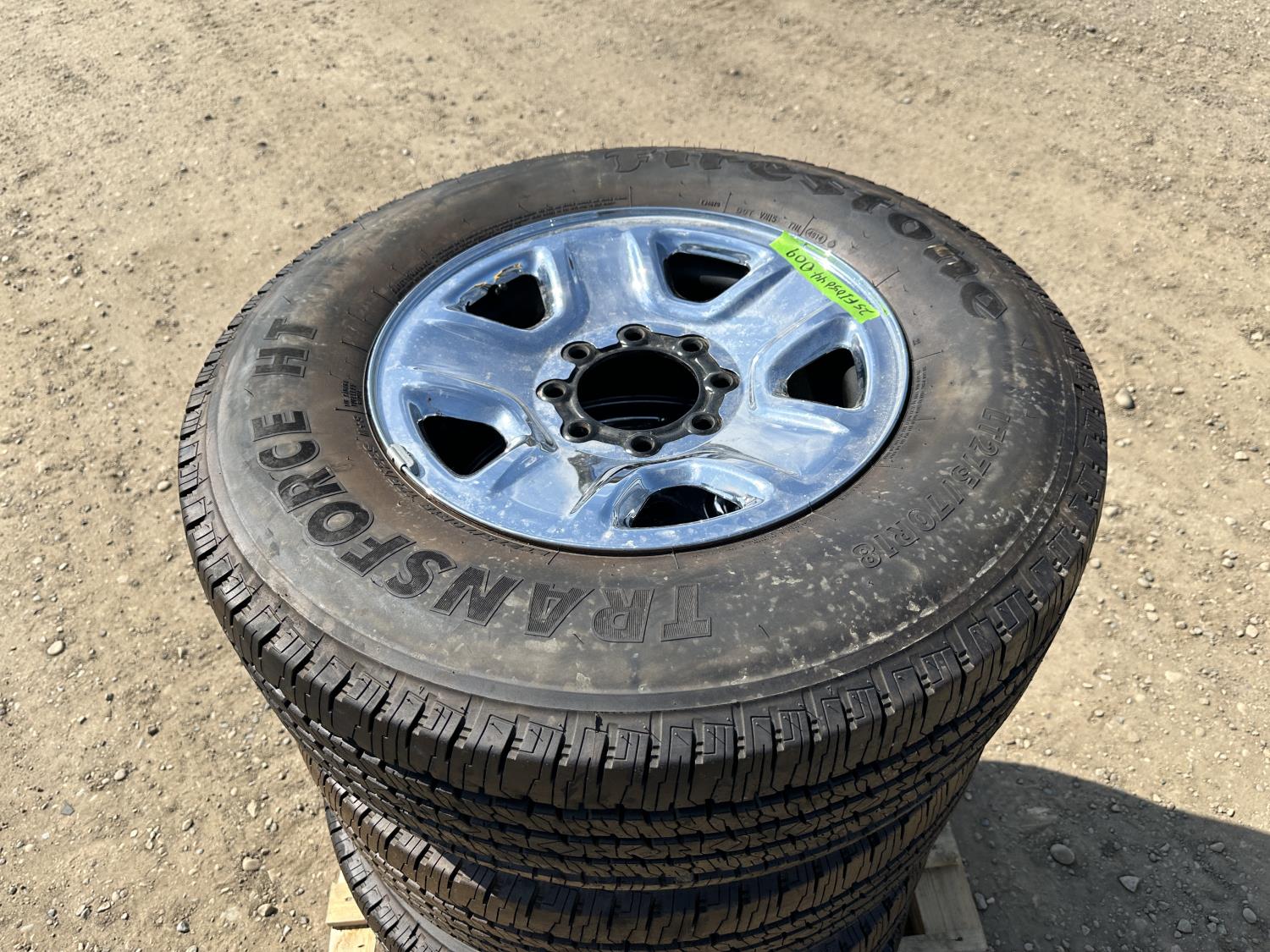 1887 (4) Firestone Transforce 275/70R18 Tires On 8 Bolt Dodge Rims with Lugs and Hubcaps
