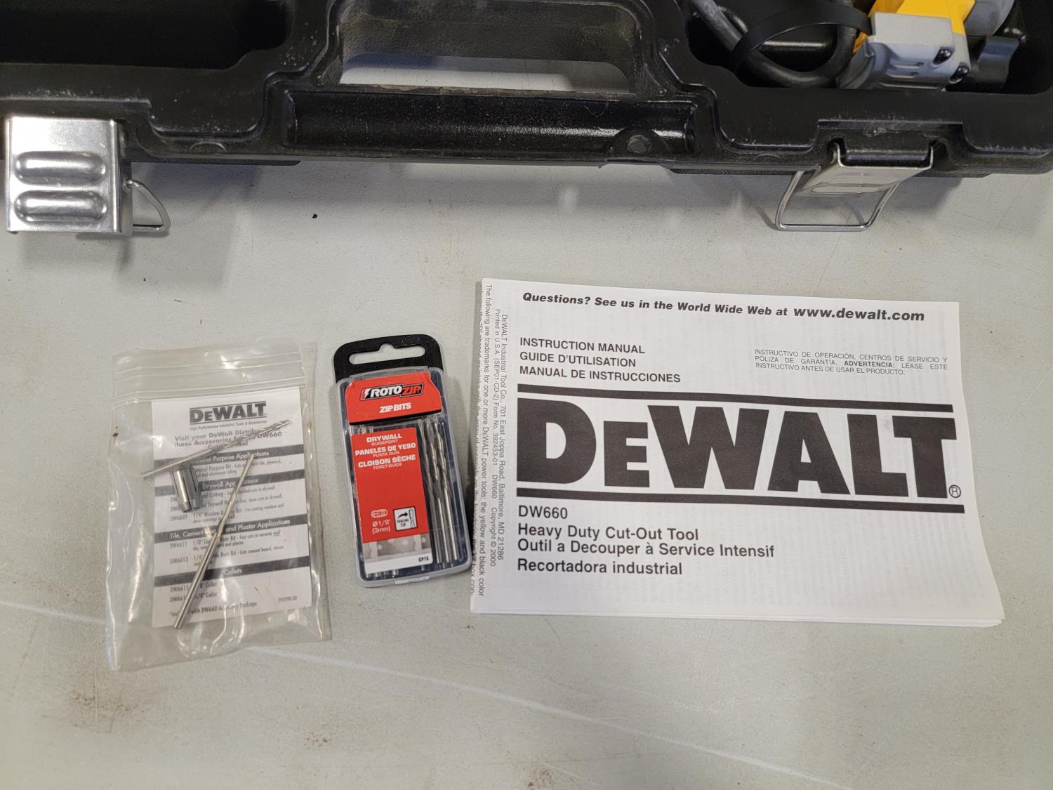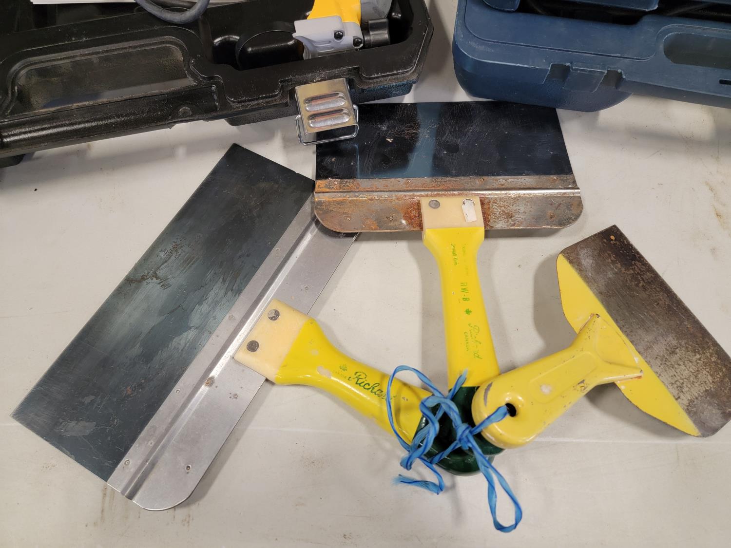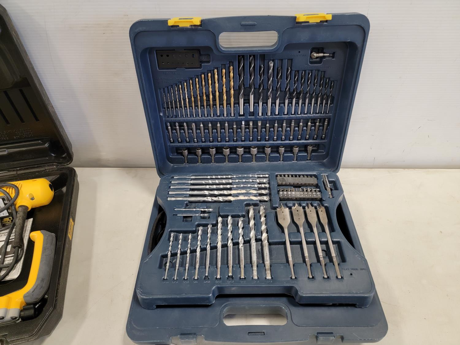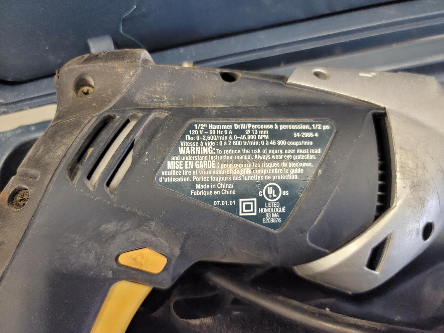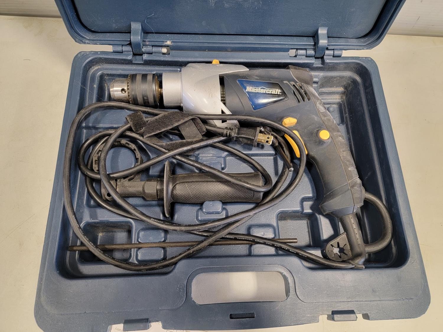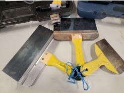 5463 Mastercraft 1/2 Inch Hammer Drill and Bit Set, Dewalt Cut-Out Tool and (3) Drywall Knives