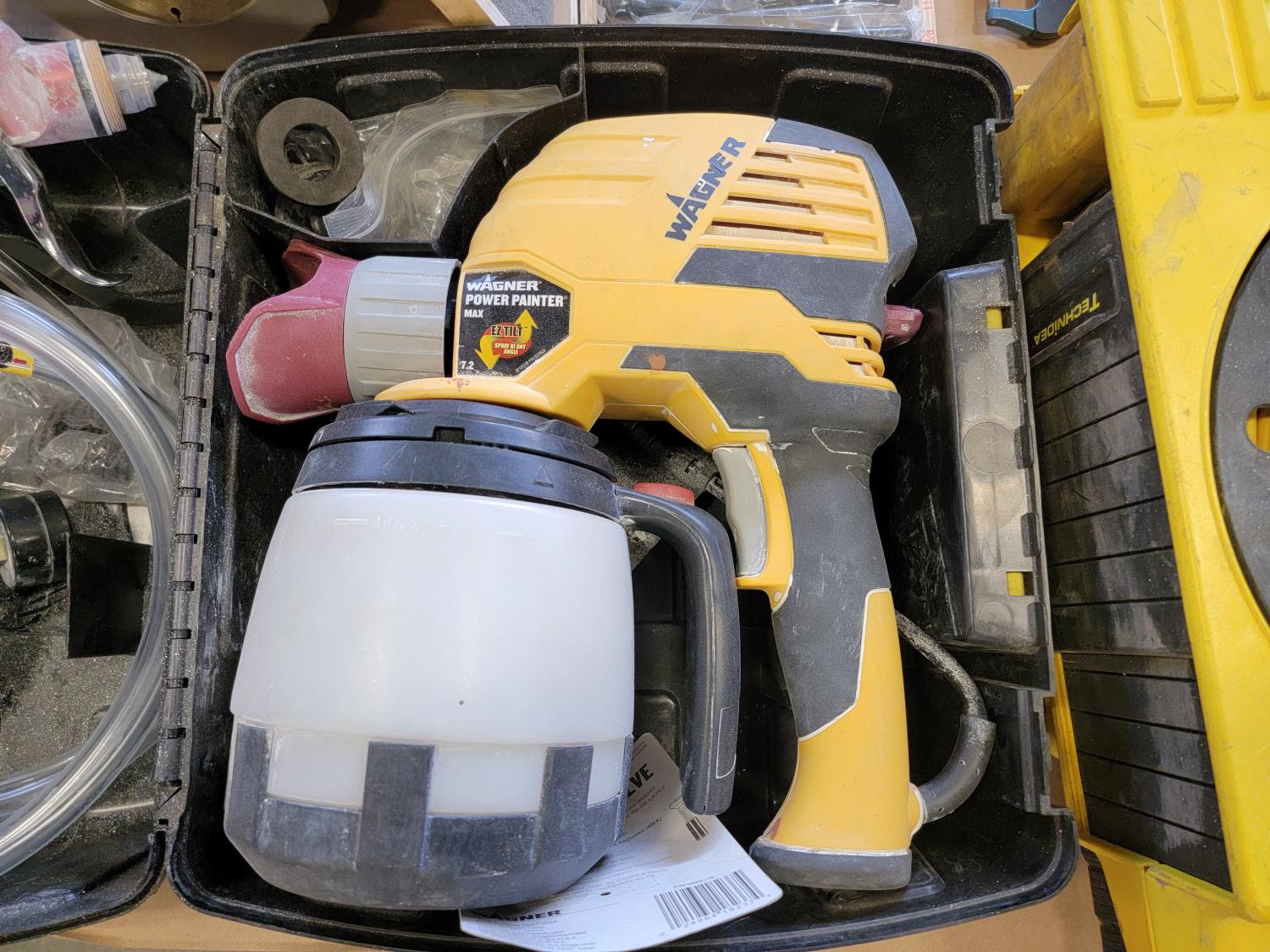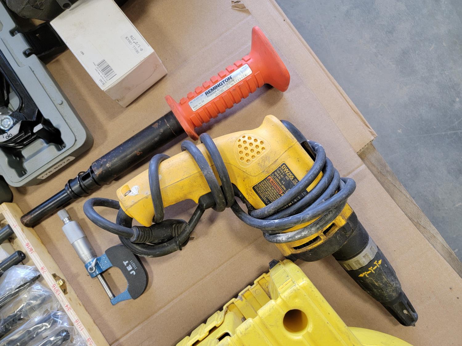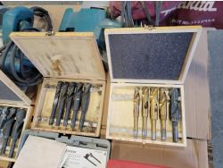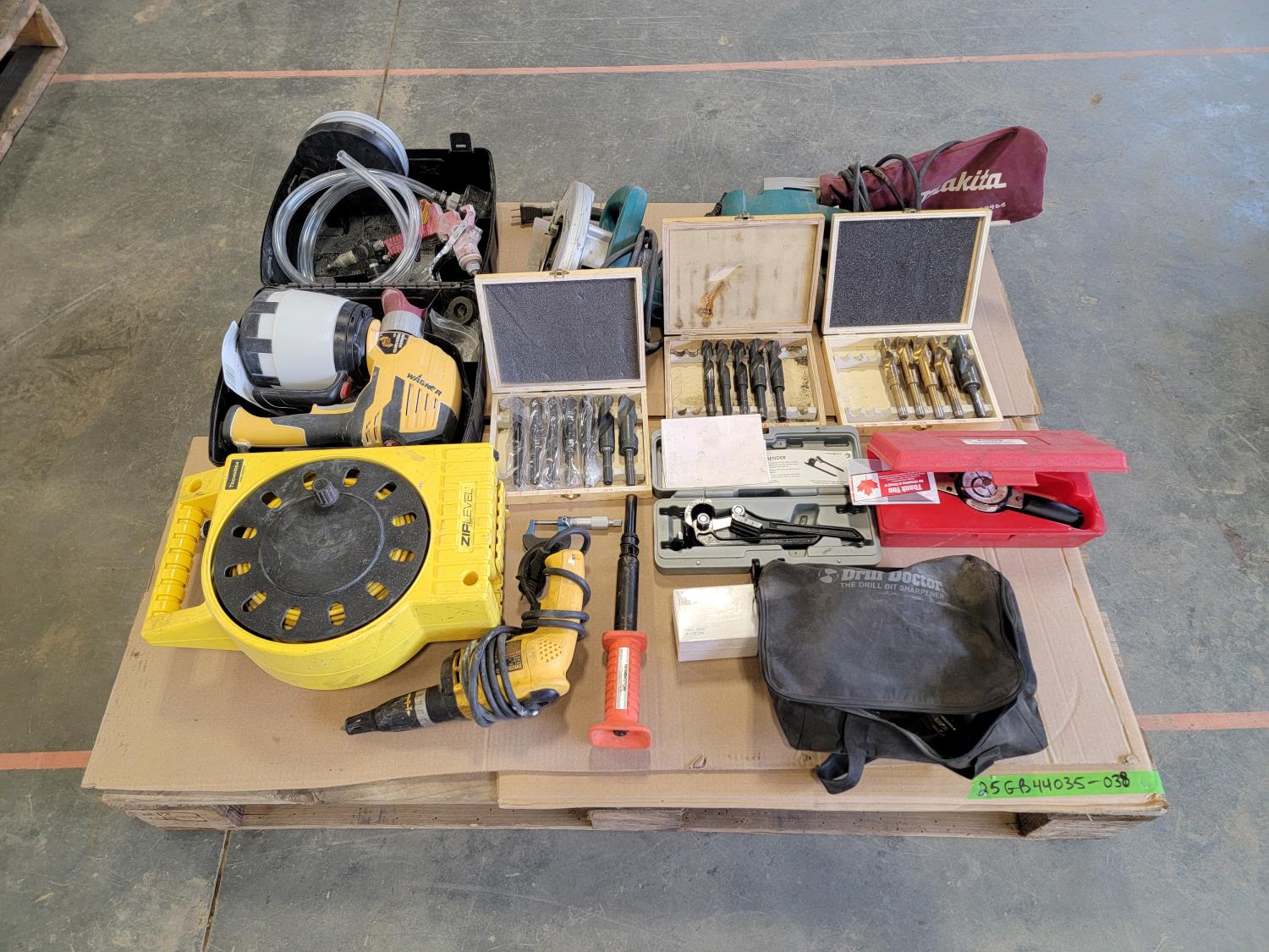 Technidea Pro-2000 Ziplevel altimeter, pipe bender, Proto dial torque wrench, Makita belt sander, Powerfist drill bits
