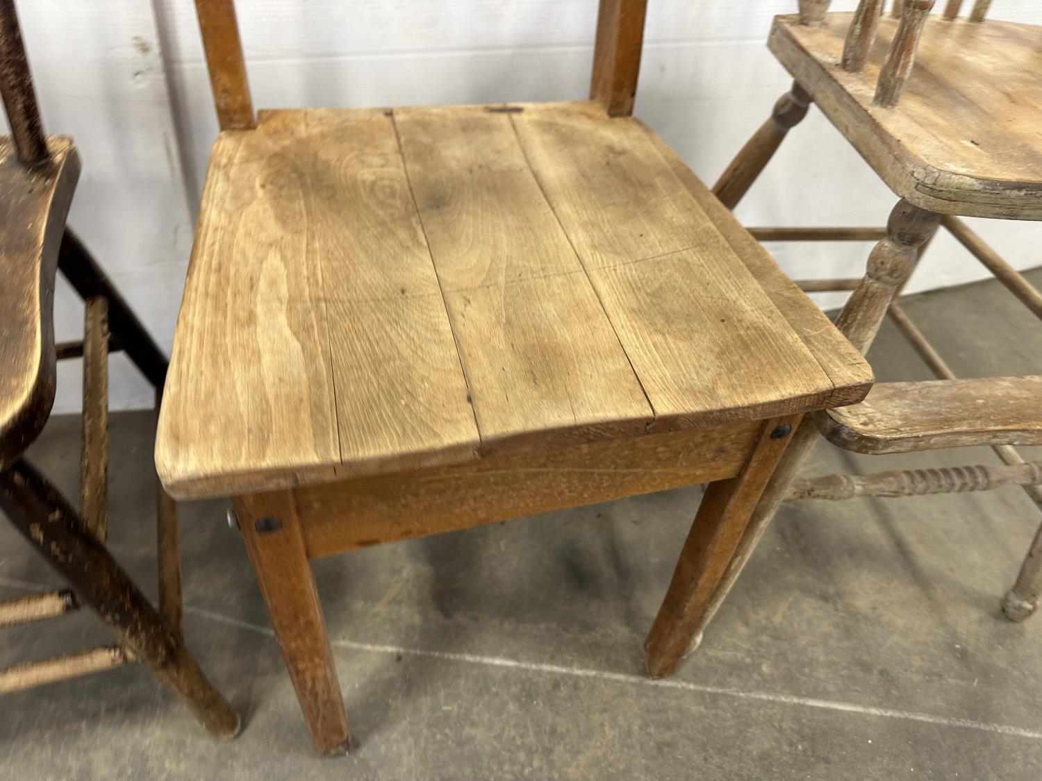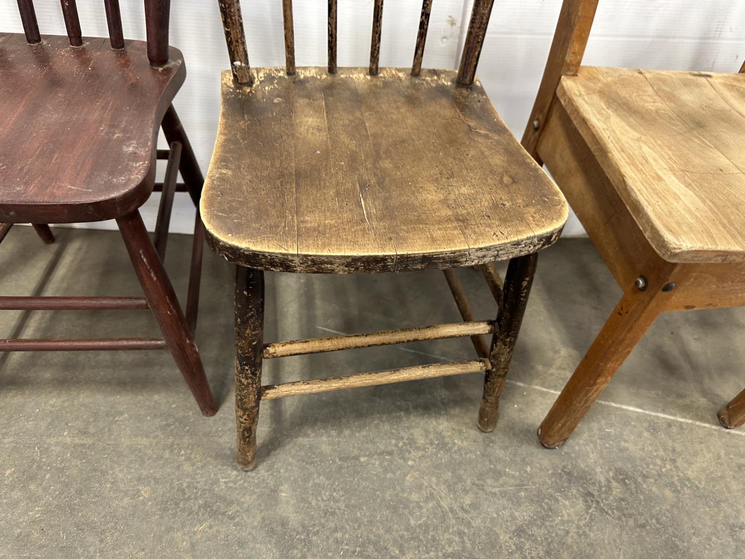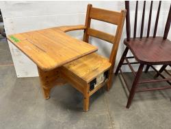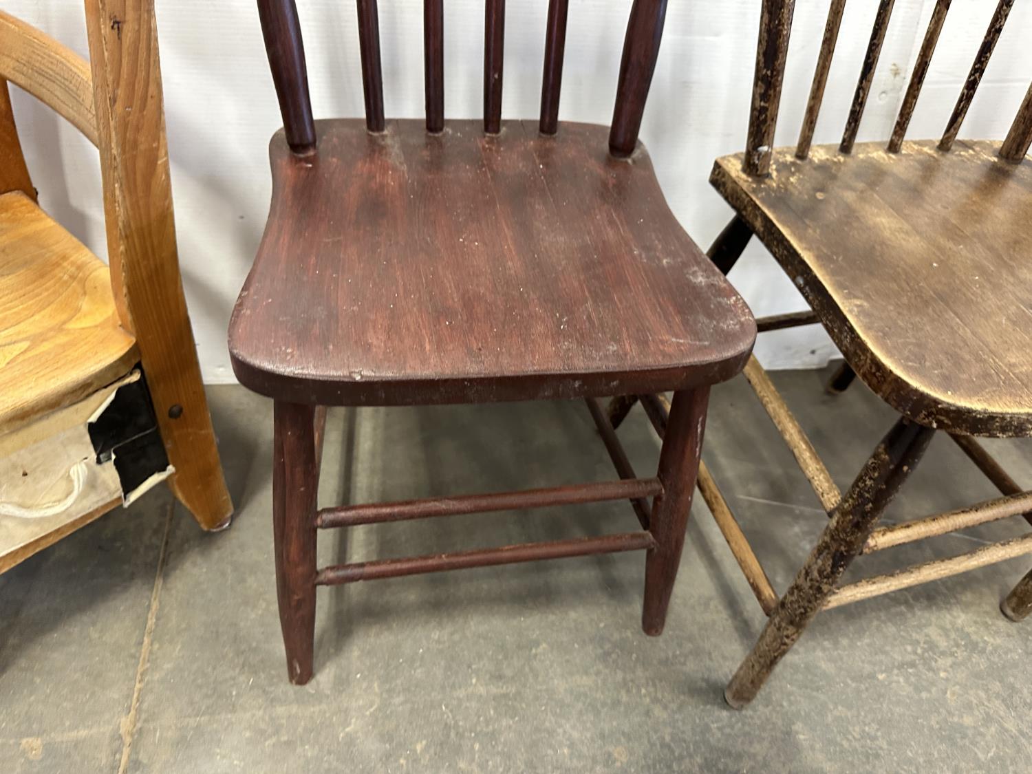 5386 Vintage High Chair, Children's Desk and (3) Wooden Dining Chairs