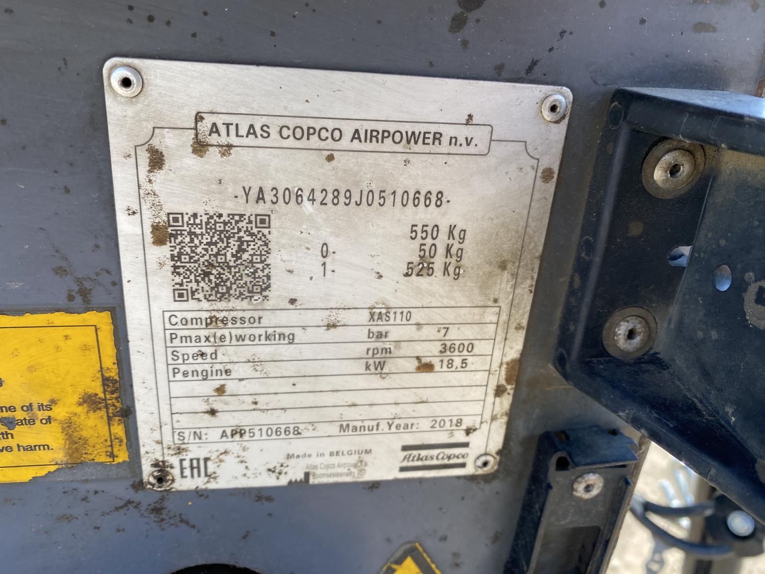 64 2018 Atlas Copco XAS 110 CFM Towable Air Compressor (Inoperable)