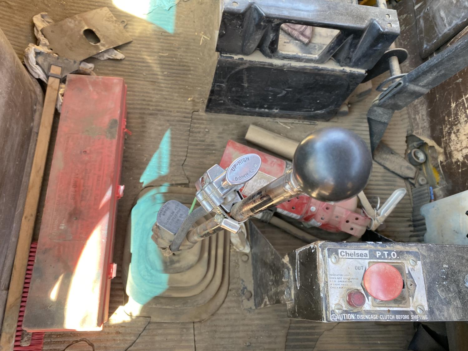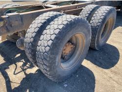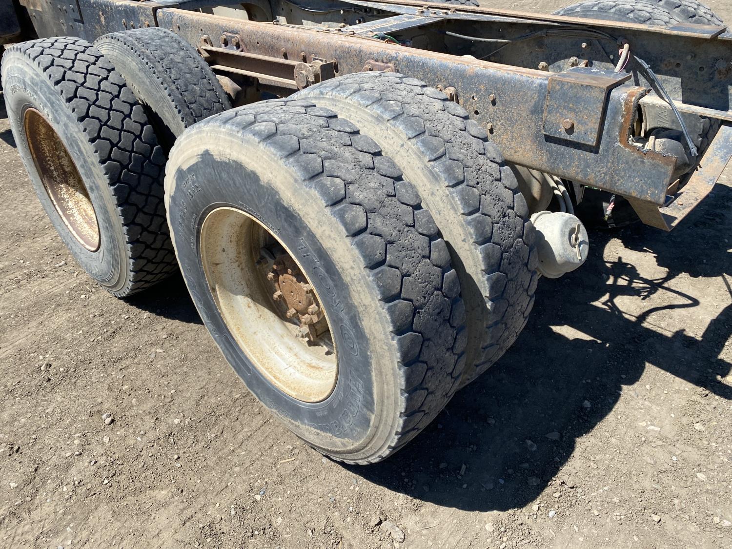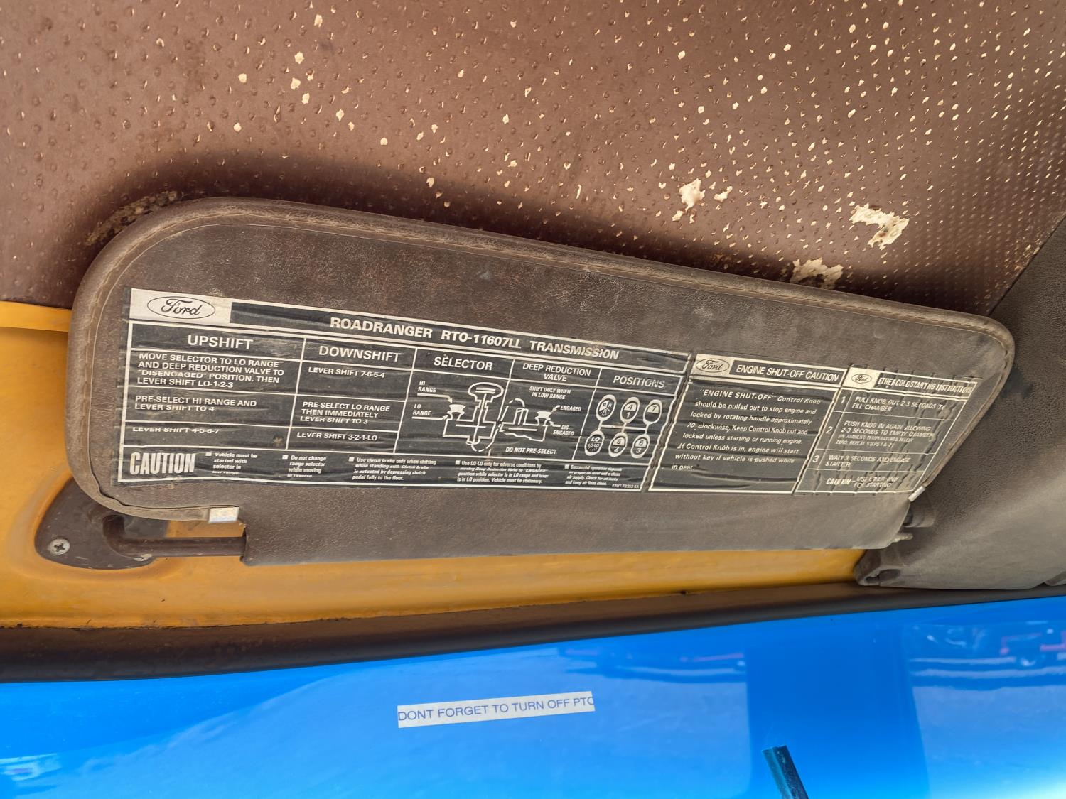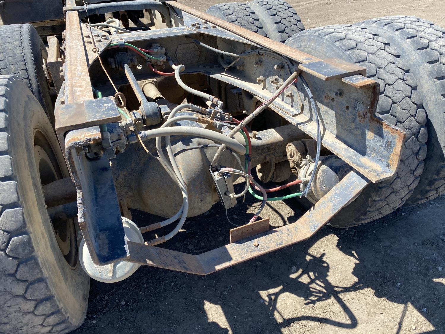 Detroit 10678517 7.0 L 6 cylinder engine, Ford 7LL manual transmission, air ride driver seat, PTO pump, spring suspension, 10,850 lb front axle, 34,000 lb rear axles, diff lock, 222 inch WB, 198 inch from back of cab to end of frame, 315/80R22.5 front tires, 11R22.5 rear tires