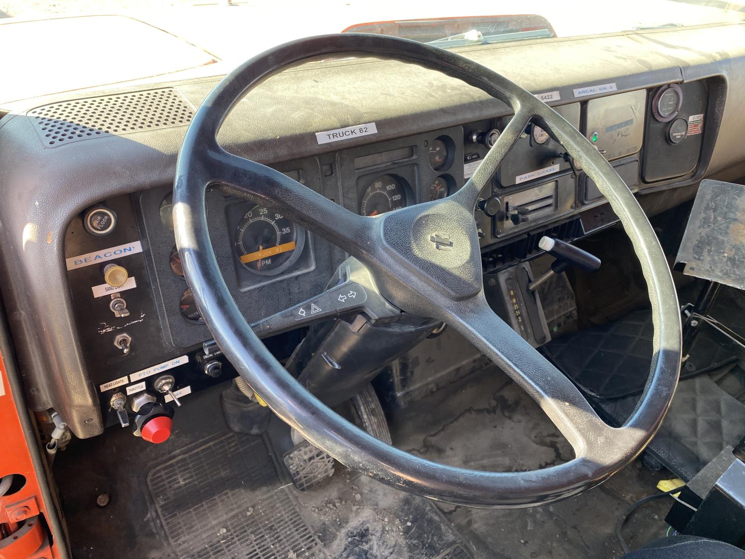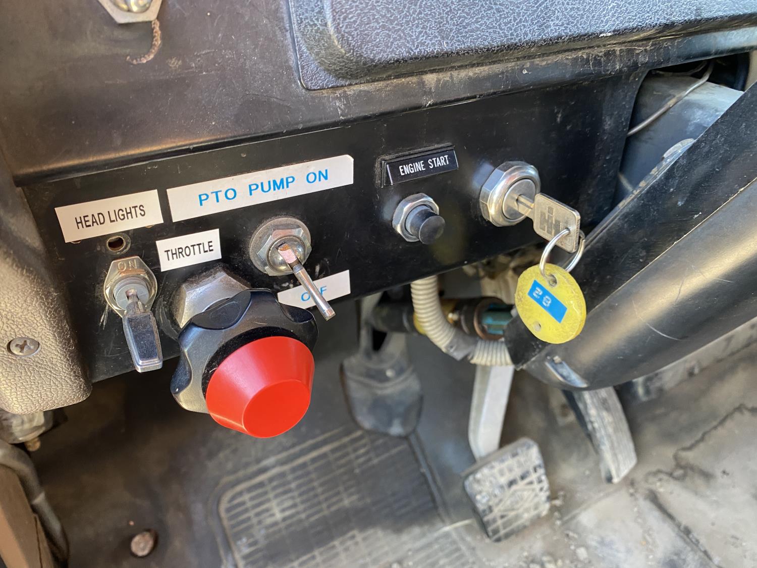 6 cylinder diesel engine, automatic transmission, air ride driver seat, 10 ft box, PTO pump, spring suspension, 162 inch WB, 385/65R22.5 front tires, 10-20 rear tires