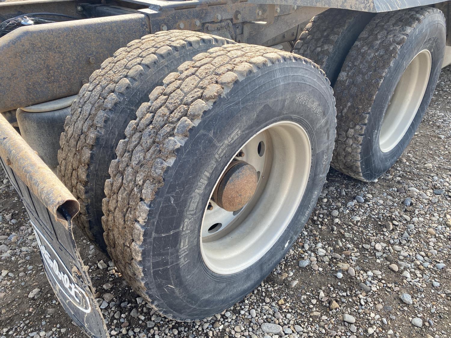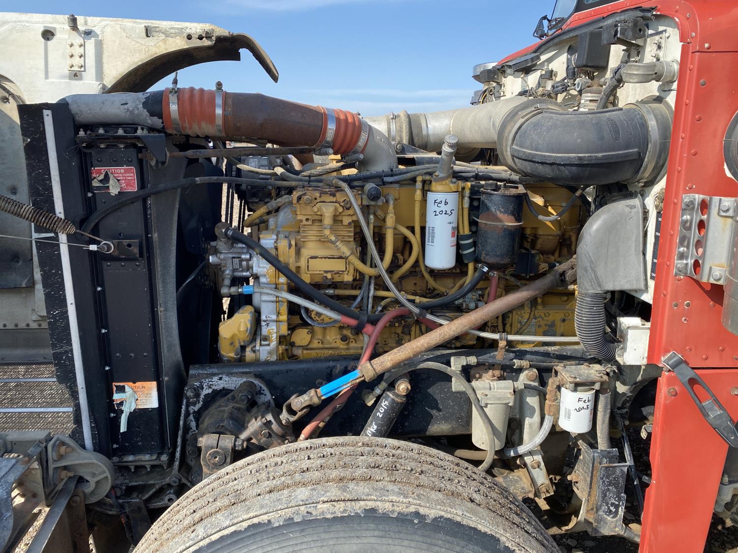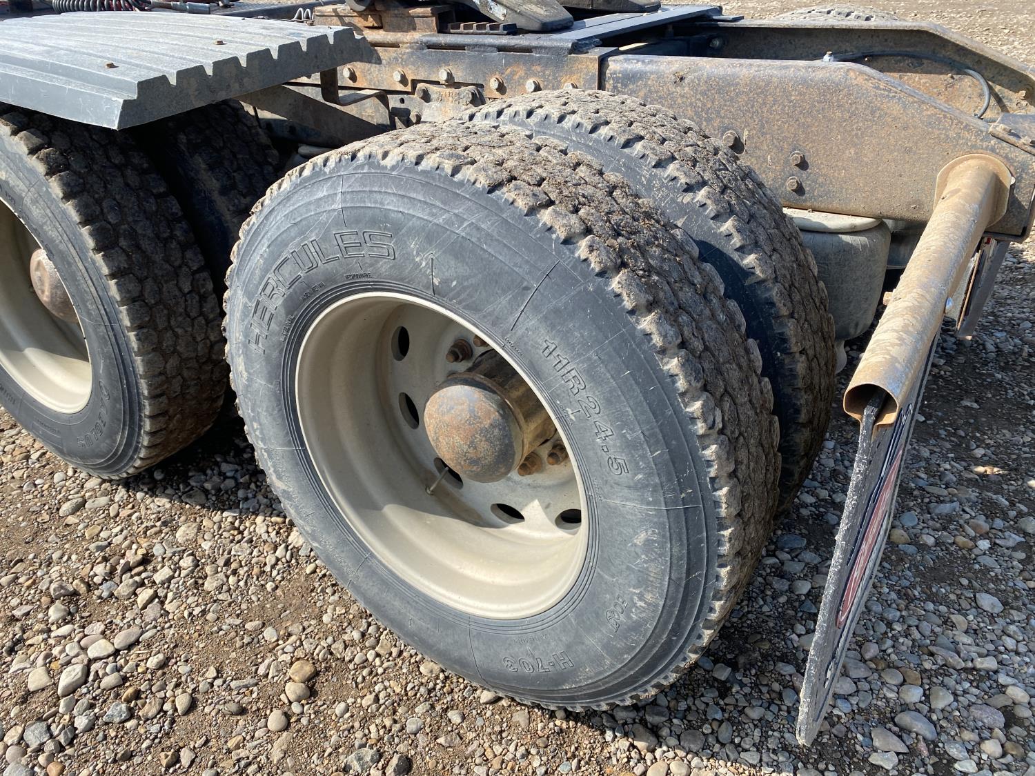 Caterpillar 14.6 L 6 cylinder engine, engine brake, engine block heater, Eaton Fuller 18 speed manual transmission, A/C, Peterbilt air ride suspension, 12,000 lb front axle, 40,000 lb rear axles, diff lock, 229 inch WB, all aluminum wheels, 11R24.5 tires