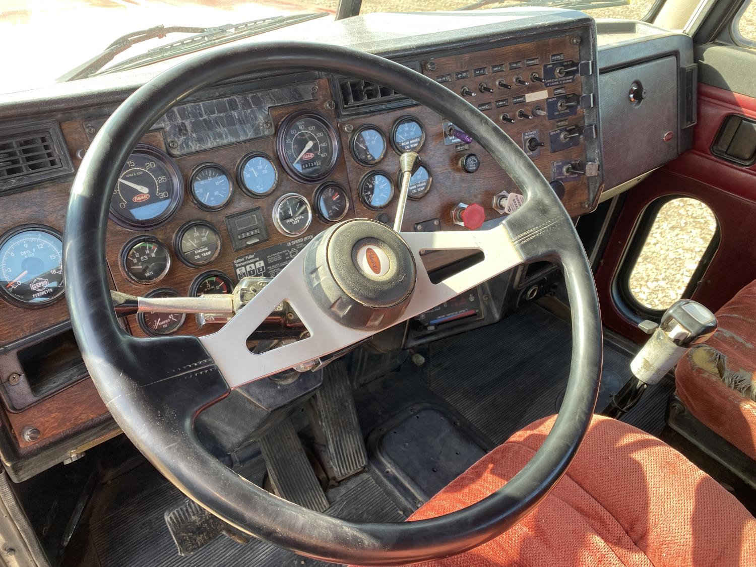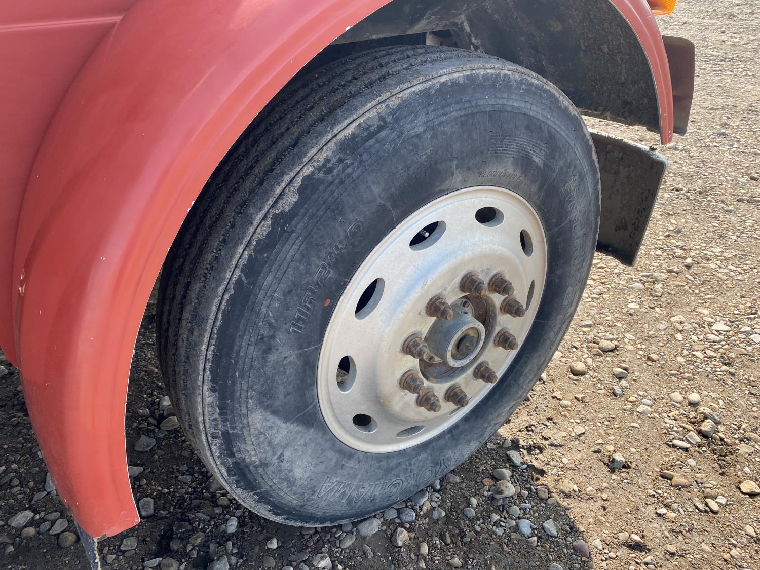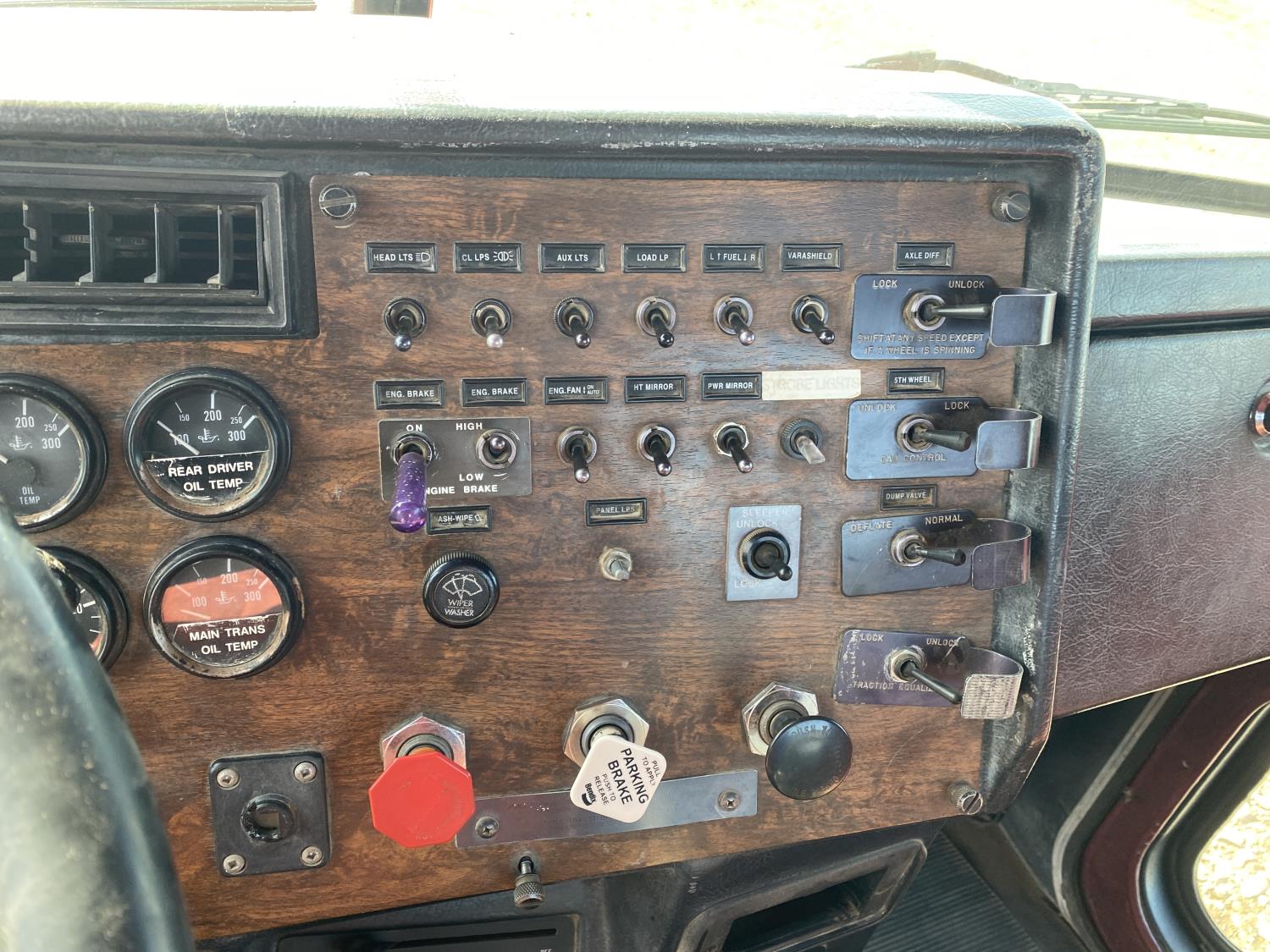 Caterpillar 14.6 L 6 cylinder engine, engine brake, engine block heater, Eaton Fuller 18 speed manual transmission, A/C, Peterbilt air ride suspension, 12,000 lb front axle, 40,000 lb rear axles, diff lock, 229 inch WB, all aluminum wheels, 11R24.5 tires