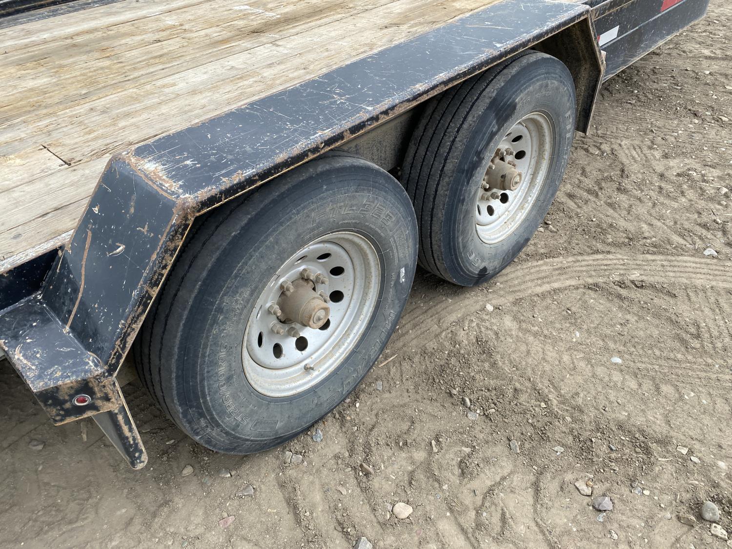 81 inch wide deck, 20 ft tilt deck, wood deck, electric brakes, spring suspension, ball hitch, tool / storage box, rub rails, stake pockets, 7000 lb axles, 235/80R16 tires