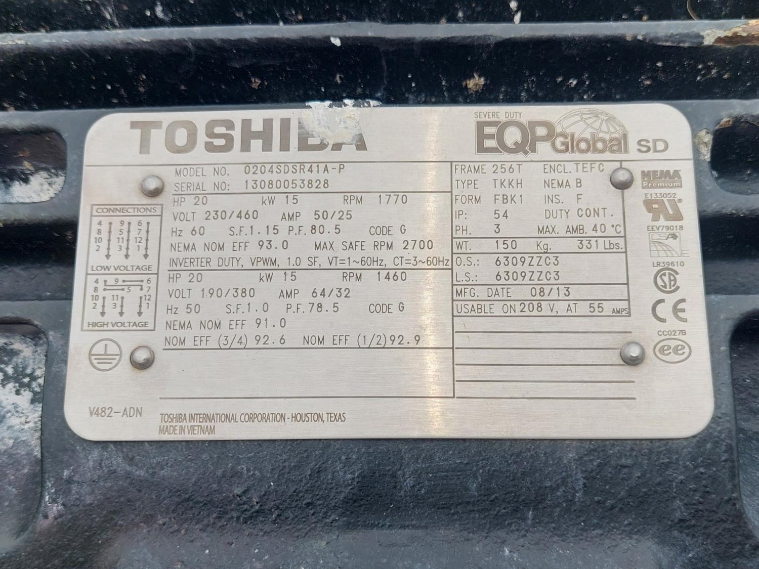Toshiba 20 HP 230/460V 3 phase electric motor, 215/75R15 tires