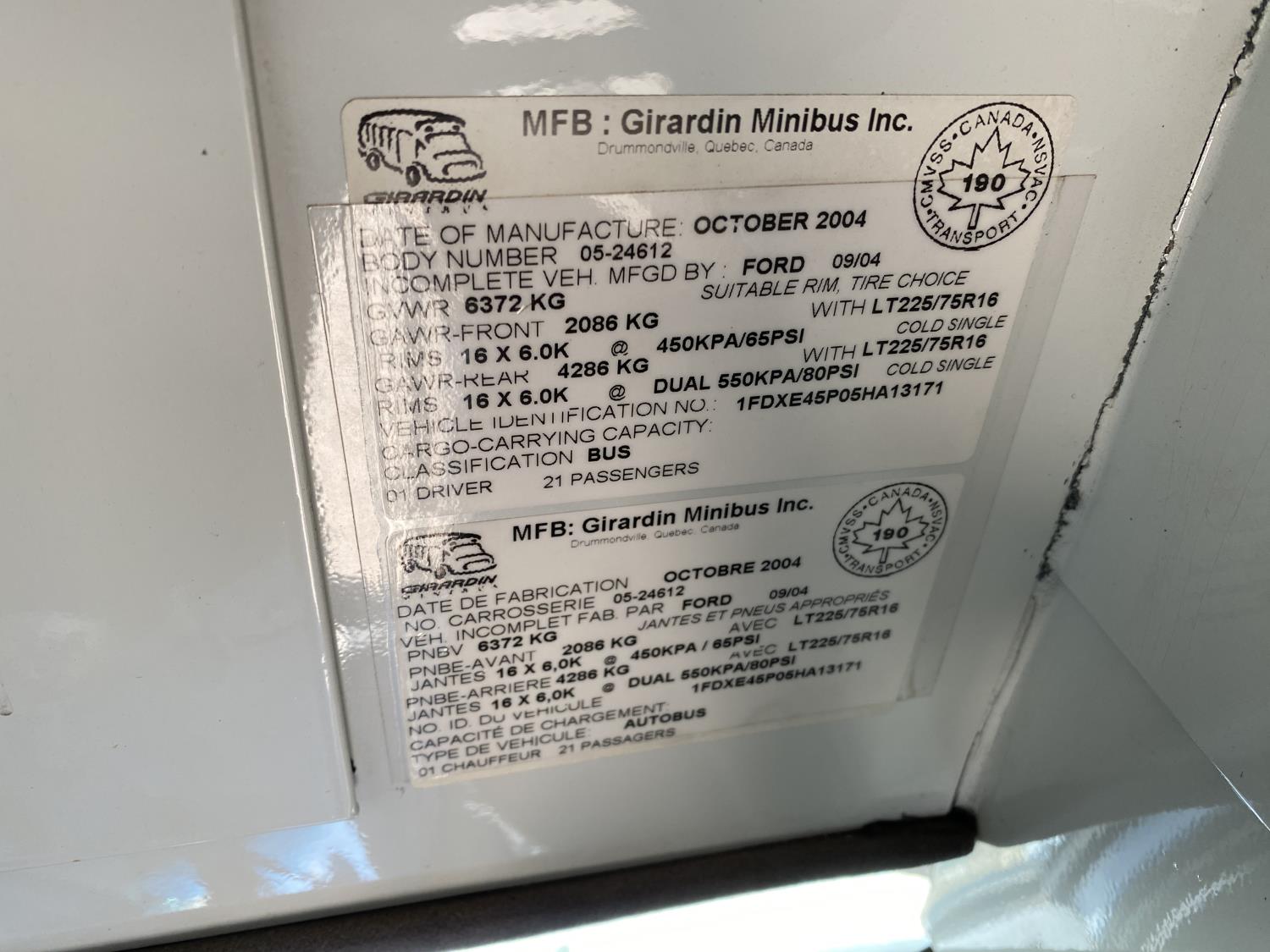 6.0 L, V8, automatic transmission, A/C, heated mirrors, 22 seats, 176 inch WB, 225/75R16 tires