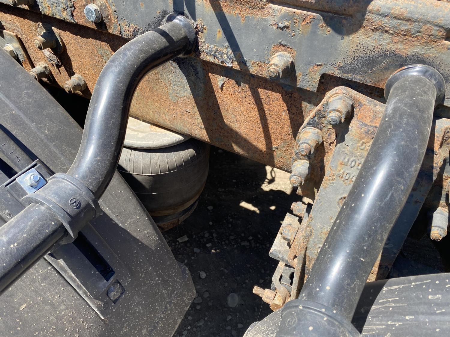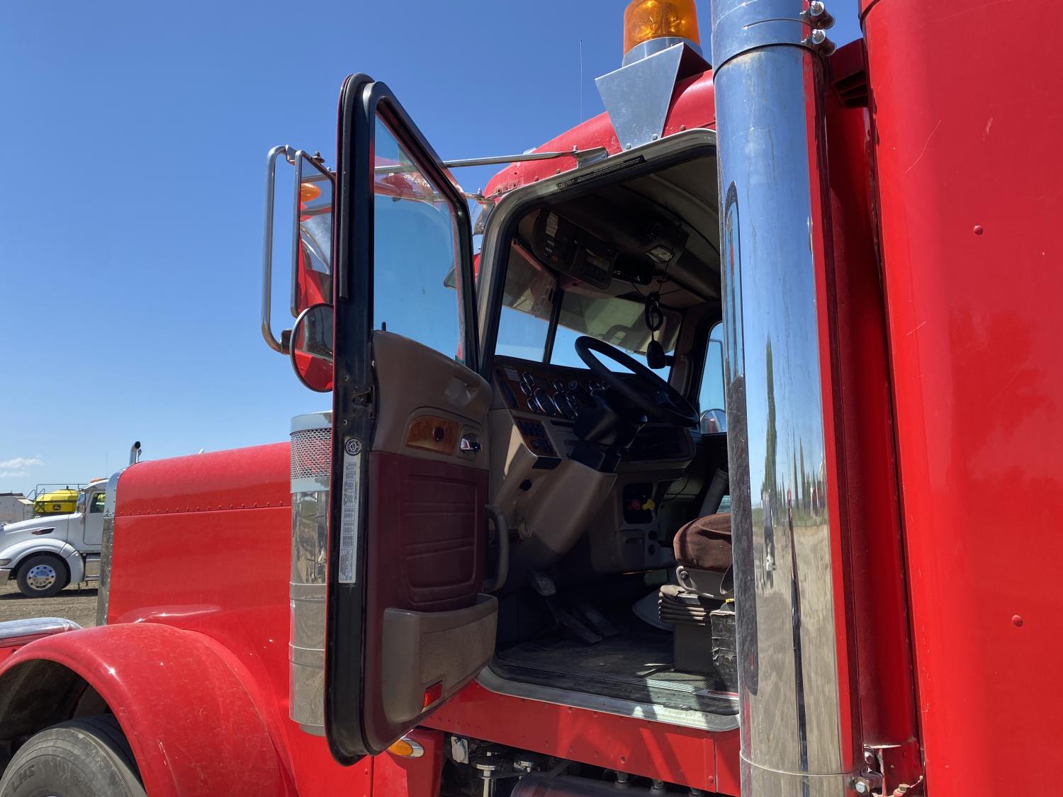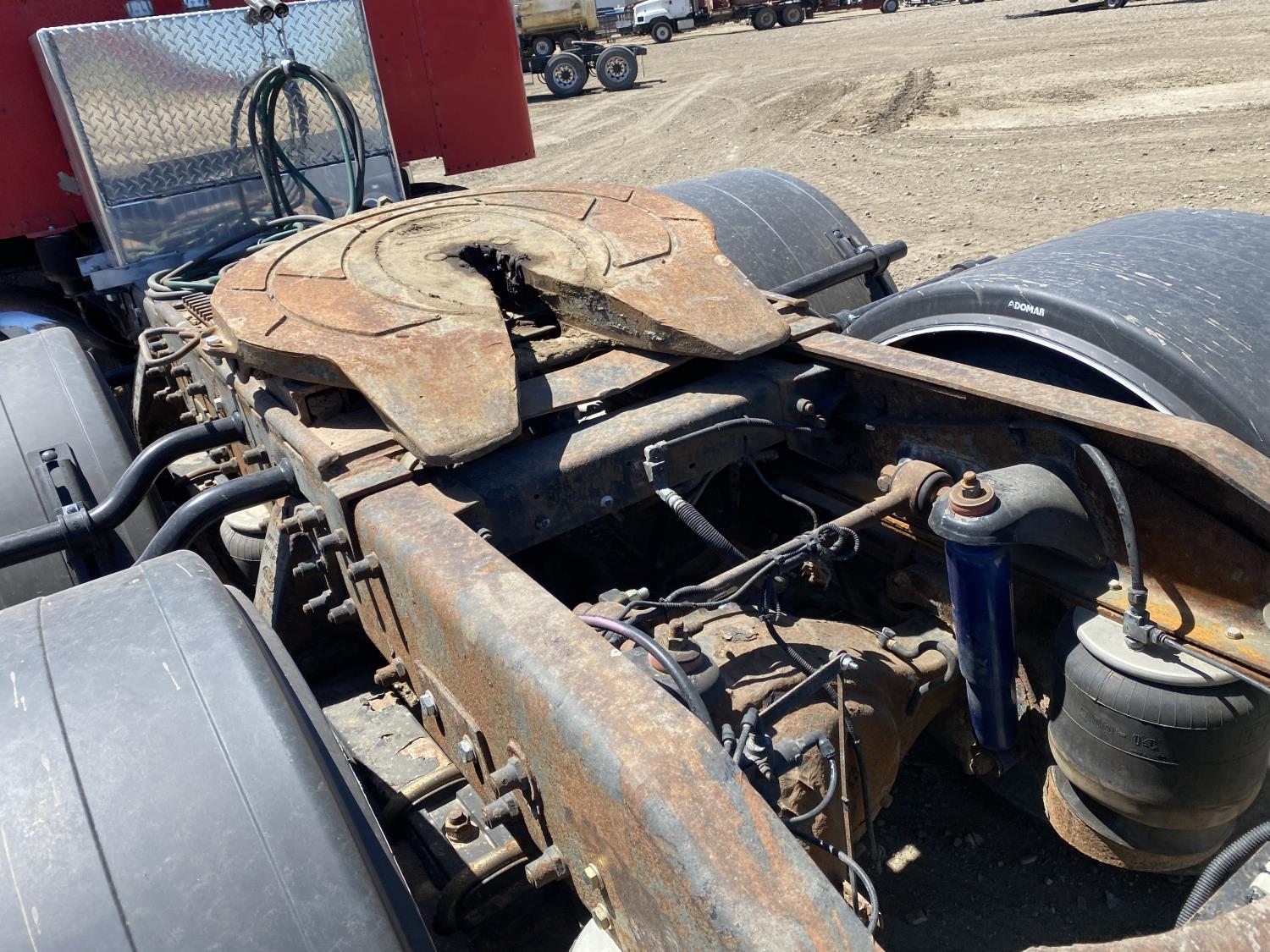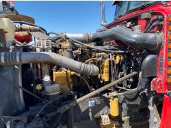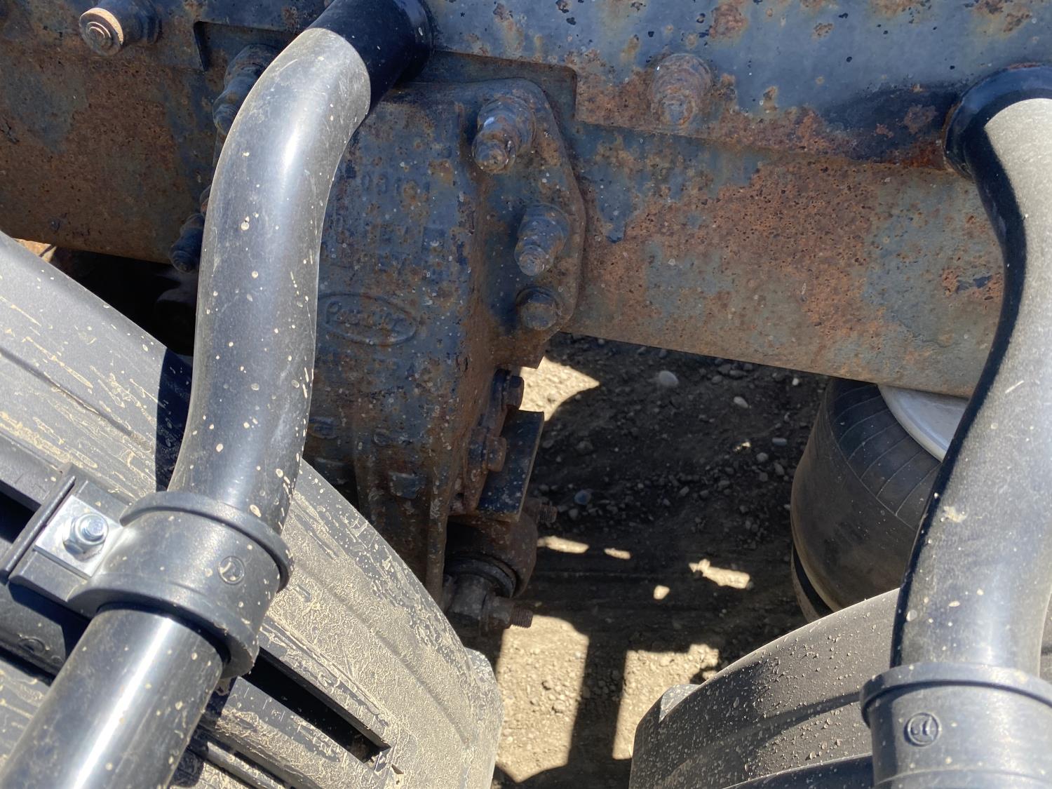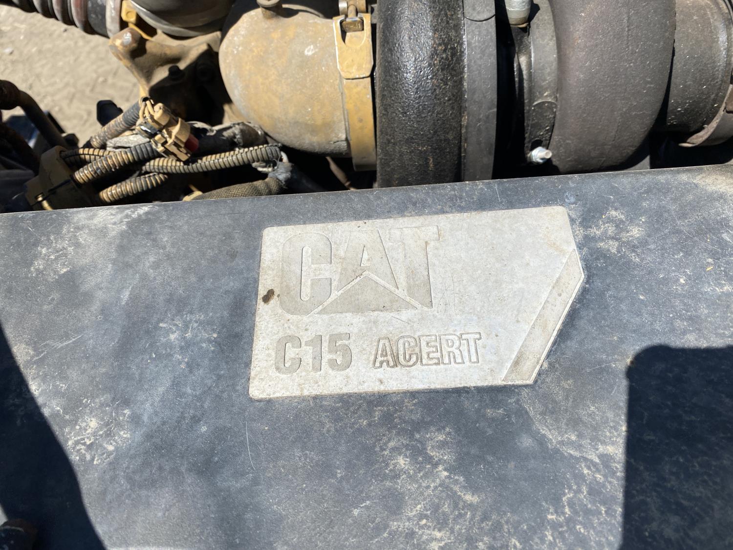 Caterpillar C15 6 cylinder engine, engine block heater, Eaton Fuller 18 speed manual transmission, flat top 60 inch sleeper, A/C, cruise control, air ride seats, hydraulic wet kit, air ride cab, PTO pump, Peterbilt air ride suspension, 14,320 lb front axle, 46,000 lb rear axles, full lockers, 242 inch WB, all aluminum wheels, 11R24.5 tires