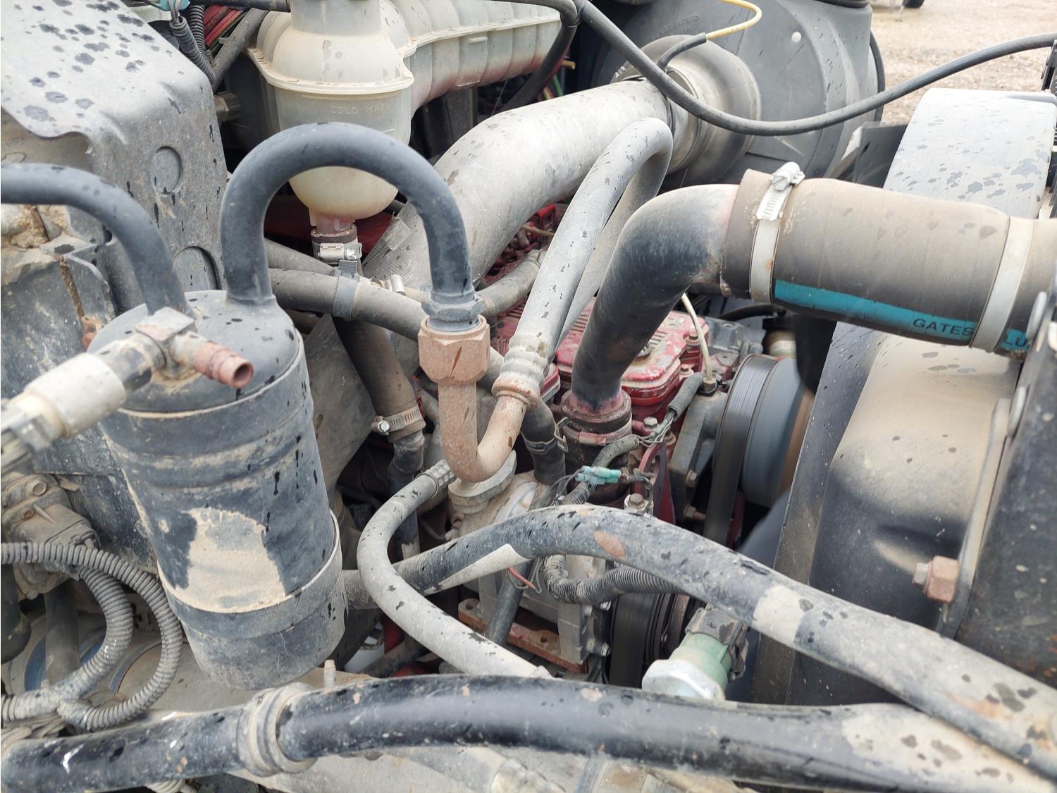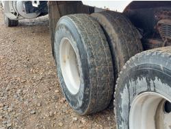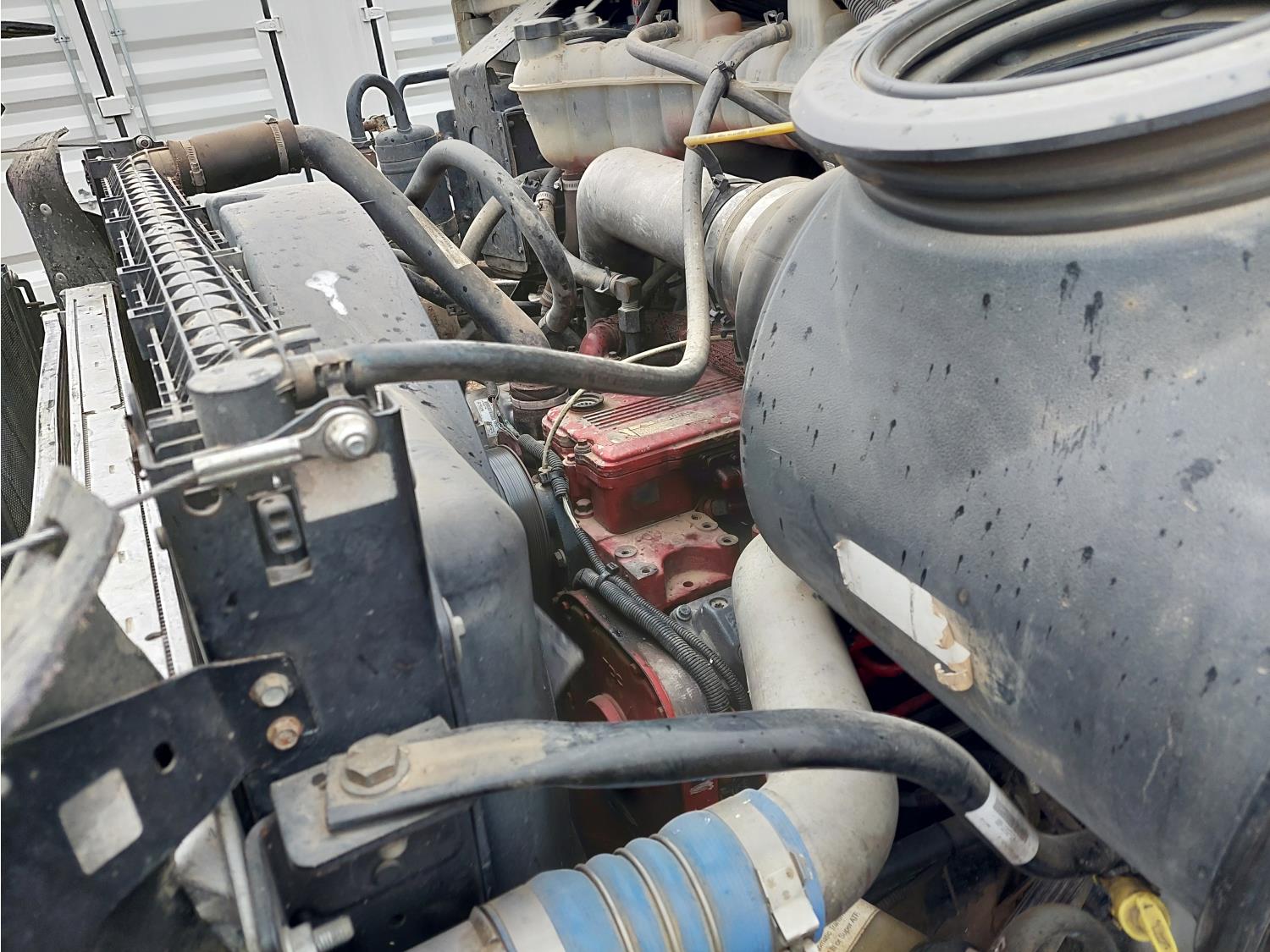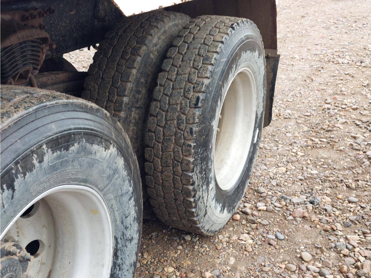 Cummins 8.3 L 6 cylinder engine, engine block heater, Allison automatic transmission, A/C, cruise control, air ride driver seat, 18 ft L box, 82 inch W x 38 inch T side walls, poly lined floor, double floor chain unload, double horizontal beaters, Tuf Trac rubber block suspension, 14,500 lb front axle, 40,000 lb rear axles, differential lock, 238 inch WB, Muncie PTO, 315/80R22.5 front tires, 11R22.5 rear tires