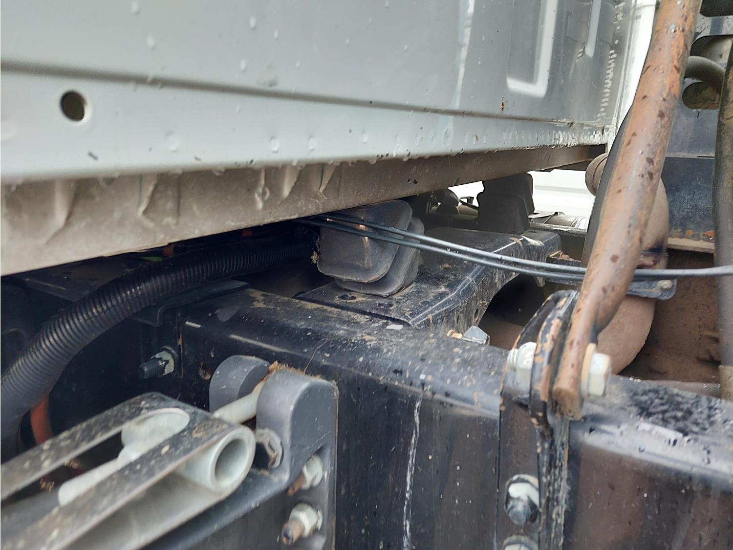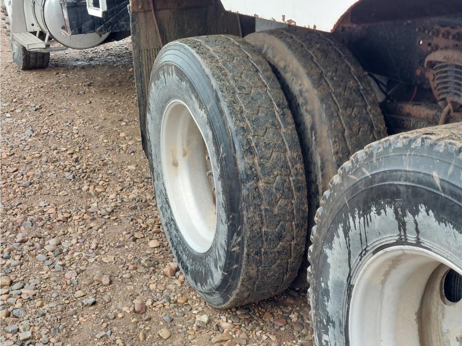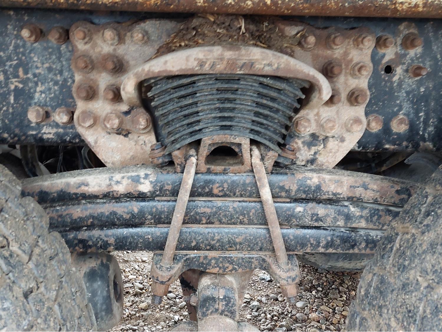 Cummins 8.3 L 6 cylinder engine, engine block heater, Allison automatic transmission, A/C, cruise control, air ride driver seat, 18 ft L box, 82 inch W x 38 inch T side walls, poly lined floor, double floor chain unload, double horizontal beaters, Tuf Trac rubber block suspension, 14,500 lb front axle, 40,000 lb rear axles, differential lock, 238 inch WB, Muncie PTO, 315/80R22.5 front tires, 11R22.5 rear tires