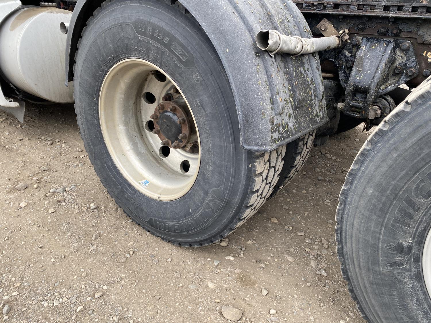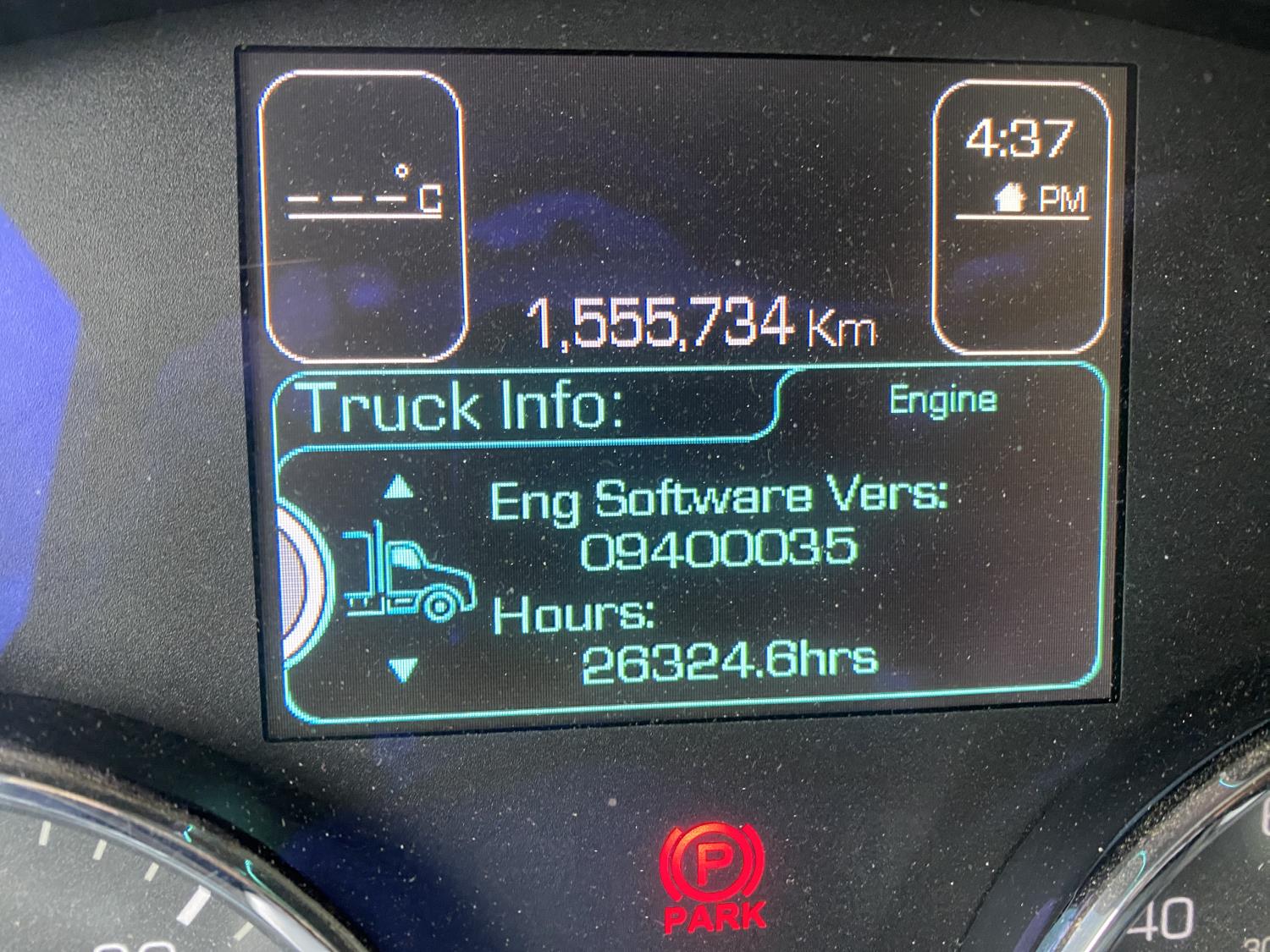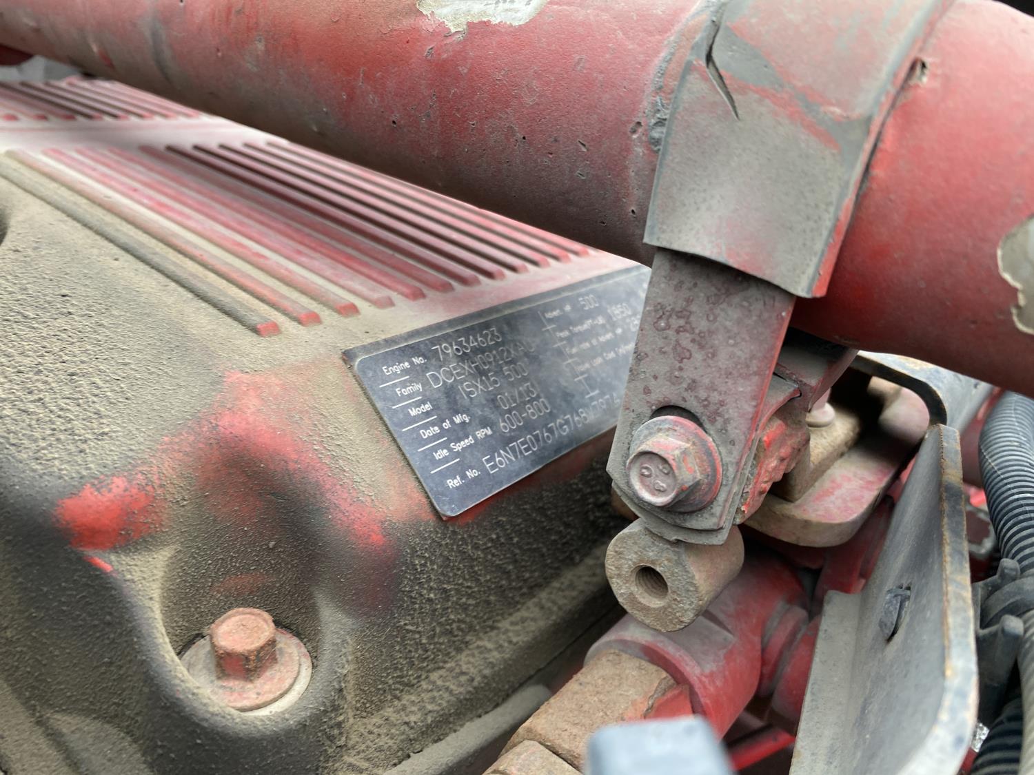 Cummins ISX15 15 L 6 cylinder 500 HP engine, engine brake, engine block heater, Eaton Fuller 18 speed manual transmission, high rise 66 inch sleeper, fridge, bunk beds, A/C, cruise control, air ride seats, air ride cab, Paccar air ride suspension, 13,200 lb front axle, 40,000 lb rear axles, full lockers, 238 inch WB, all aluminum wheels, 11R22.5 tires