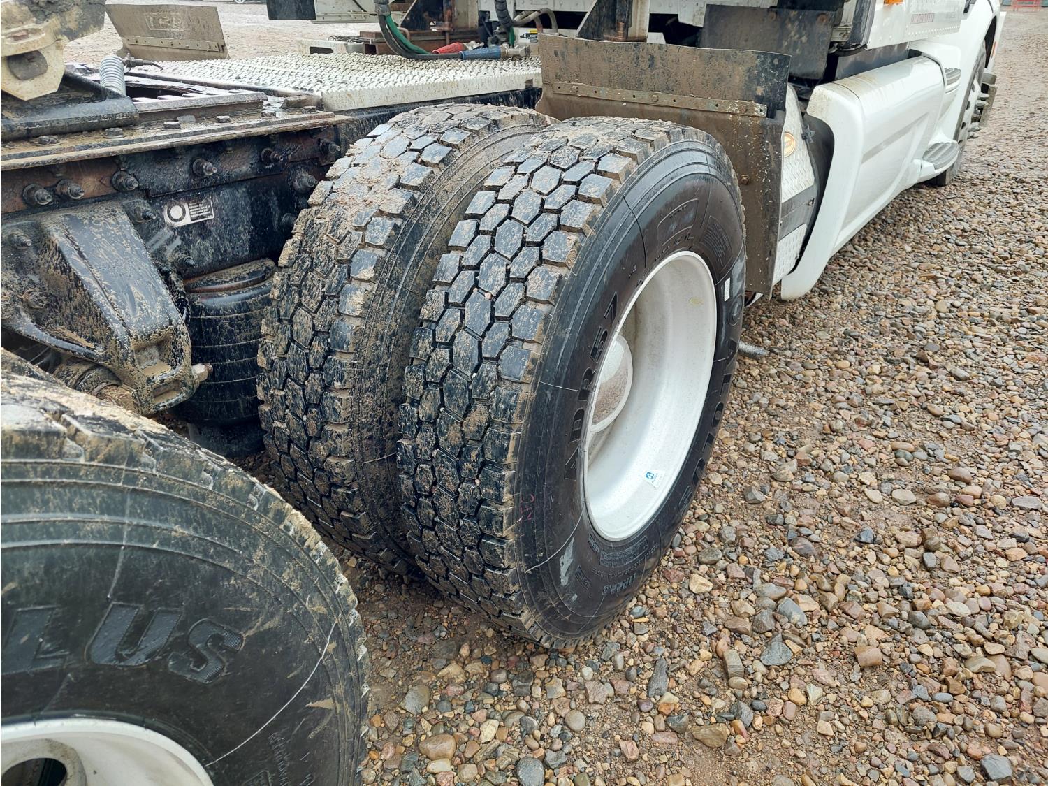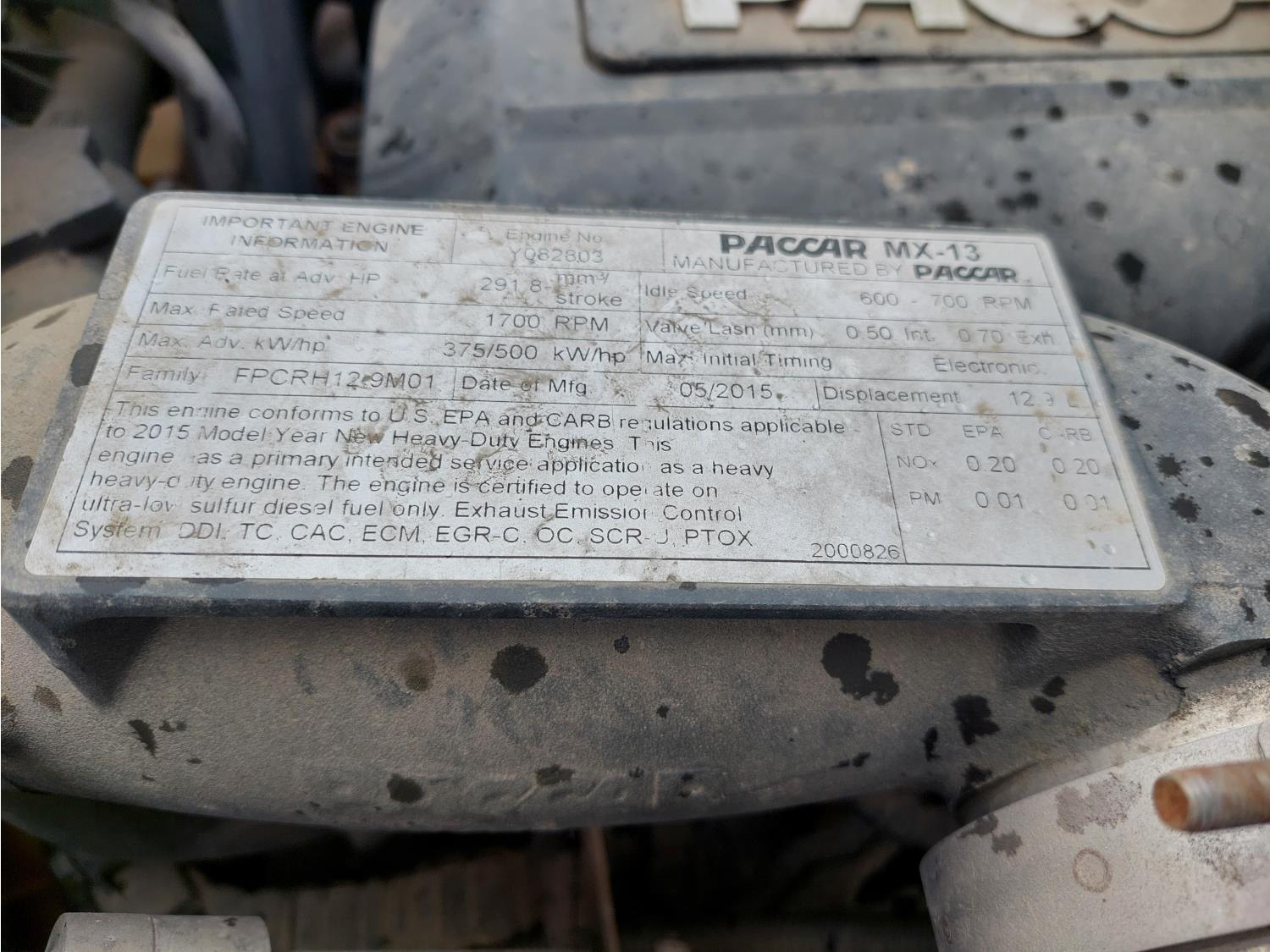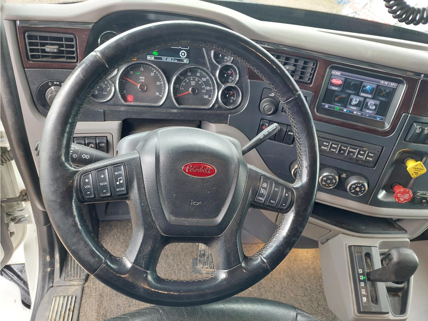 Paccar MX-13 12.9 L 6 cylinder 500 HP engine, DEF required, engine brake, automatic transmission, Webasto cab heater, mid rise 72 inch sleeper, fridge, microwave, bunk beds, A/C, cruise control, leather interior, air ride seats, CB radio, 2-way radio, air ride cab, Comfort Pro APU, aluminum moose bumper, aluminum headache rack, Paccar air ride suspension, 12,300 lb front axle, 40,000 lb rear axles, 3 way diff locks, 236 inch WB, single frame, all aluminum wheels, 11R22.5 tires