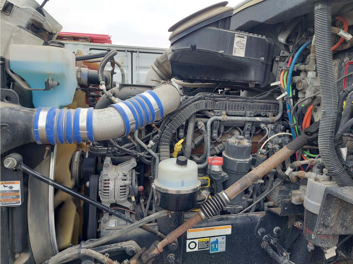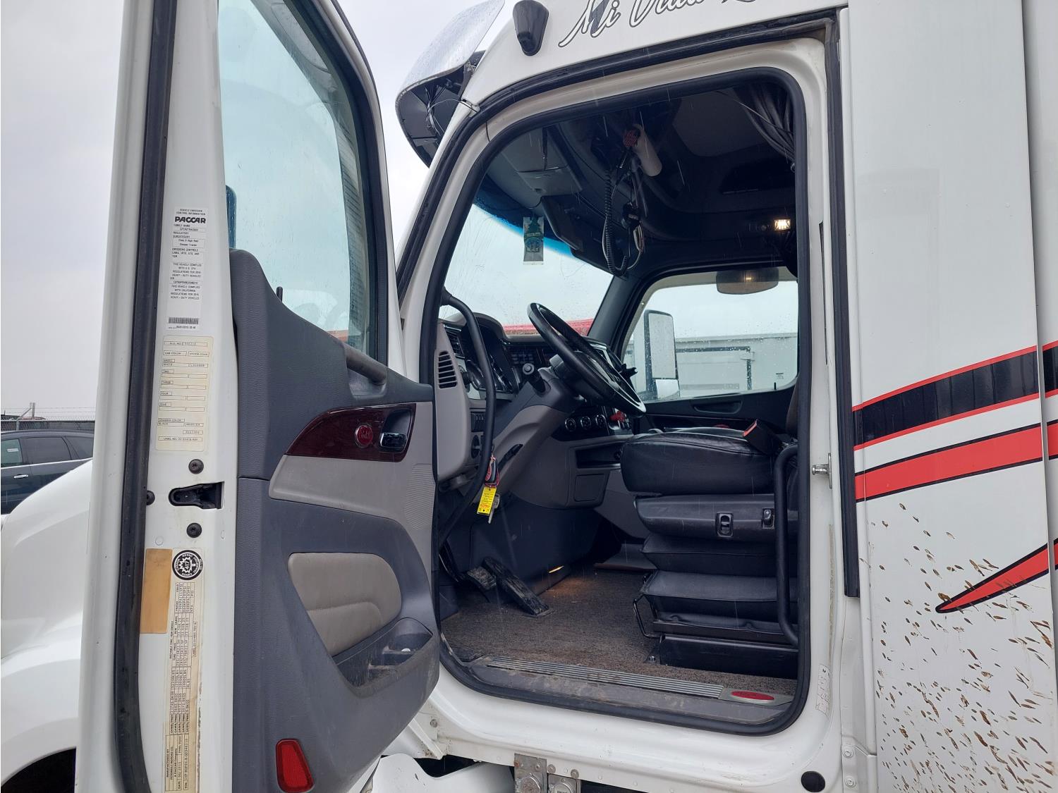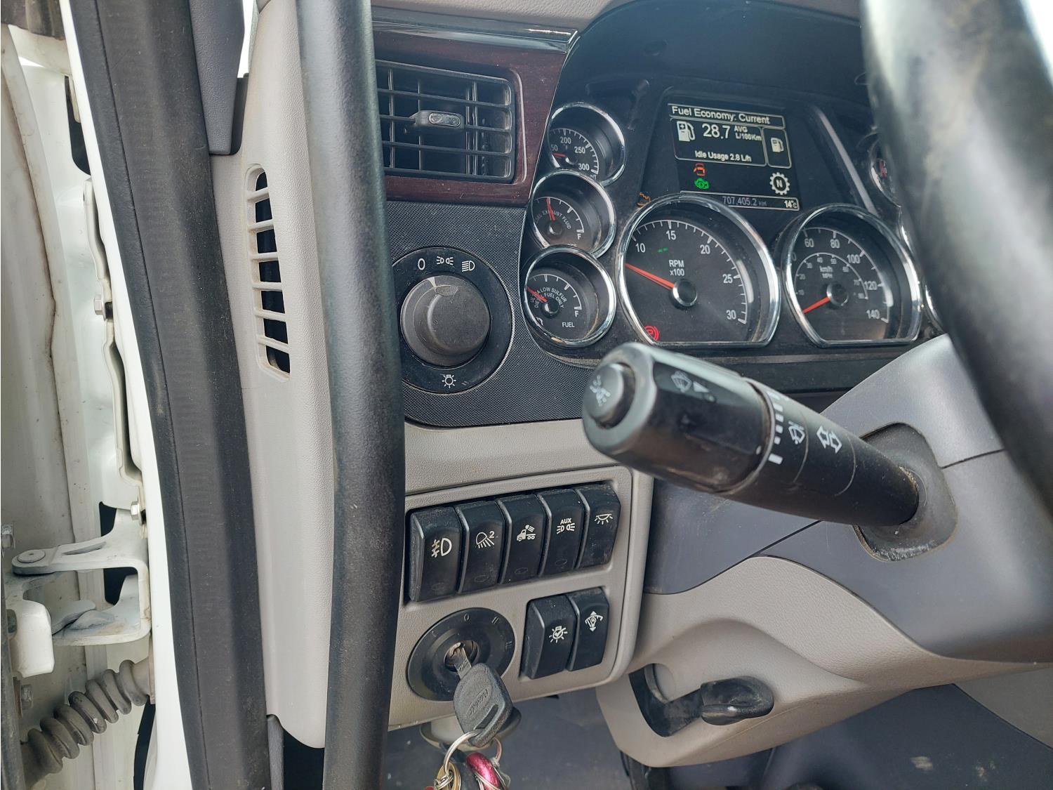 Paccar MX-13 12.9 L 6 cylinder 500 HP engine, DEF required, engine brake, automatic transmission, Webasto cab heater, mid rise 72 inch sleeper, fridge, microwave, bunk beds, A/C, cruise control, leather interior, air ride seats, CB radio, 2-way radio, air ride cab, Comfort Pro APU, aluminum moose bumper, aluminum headache rack, Paccar air ride suspension, 12,300 lb front axle, 40,000 lb rear axles, 3 way diff locks, 236 inch WB, single frame, all aluminum wheels, 11R22.5 tires