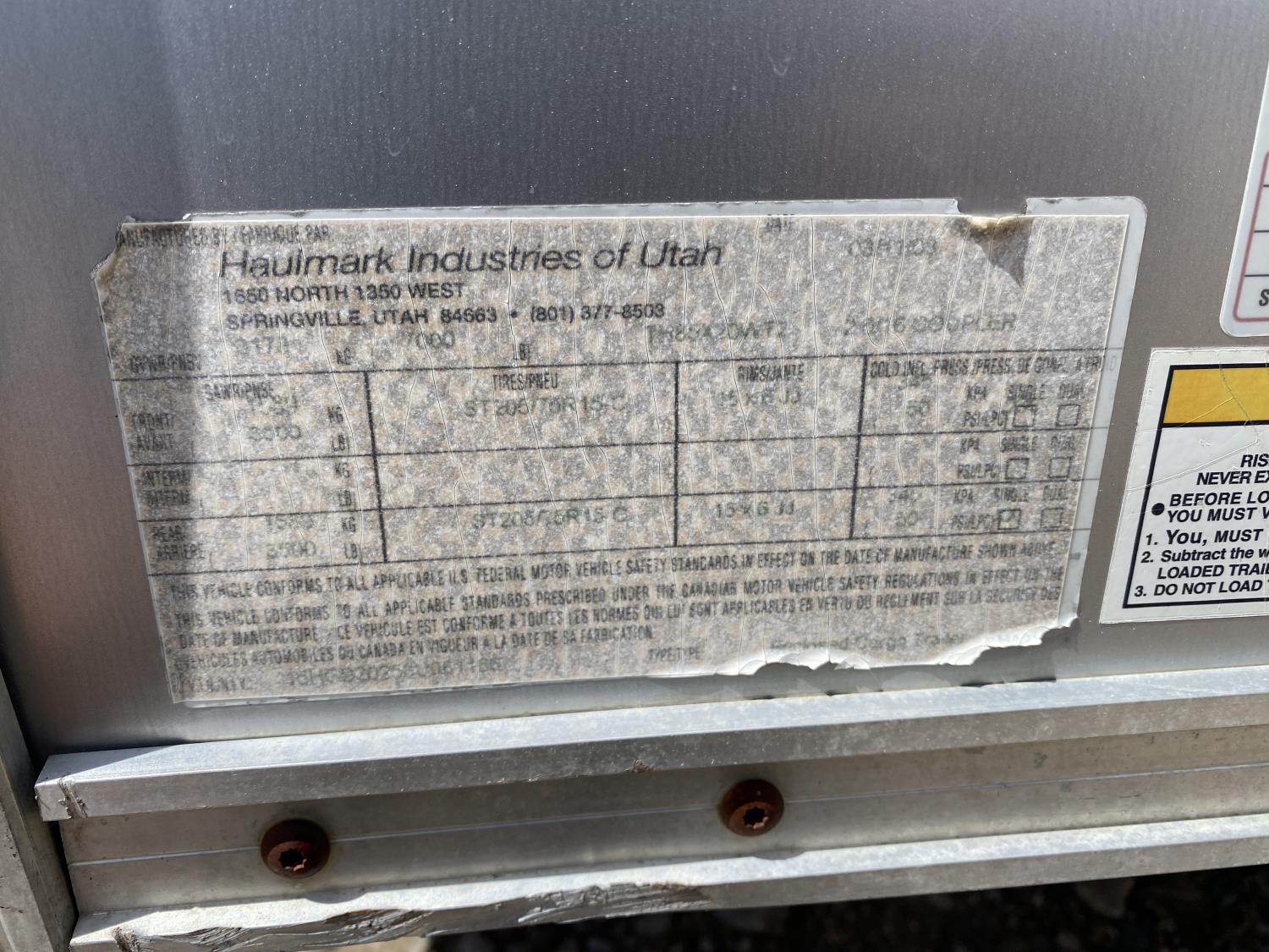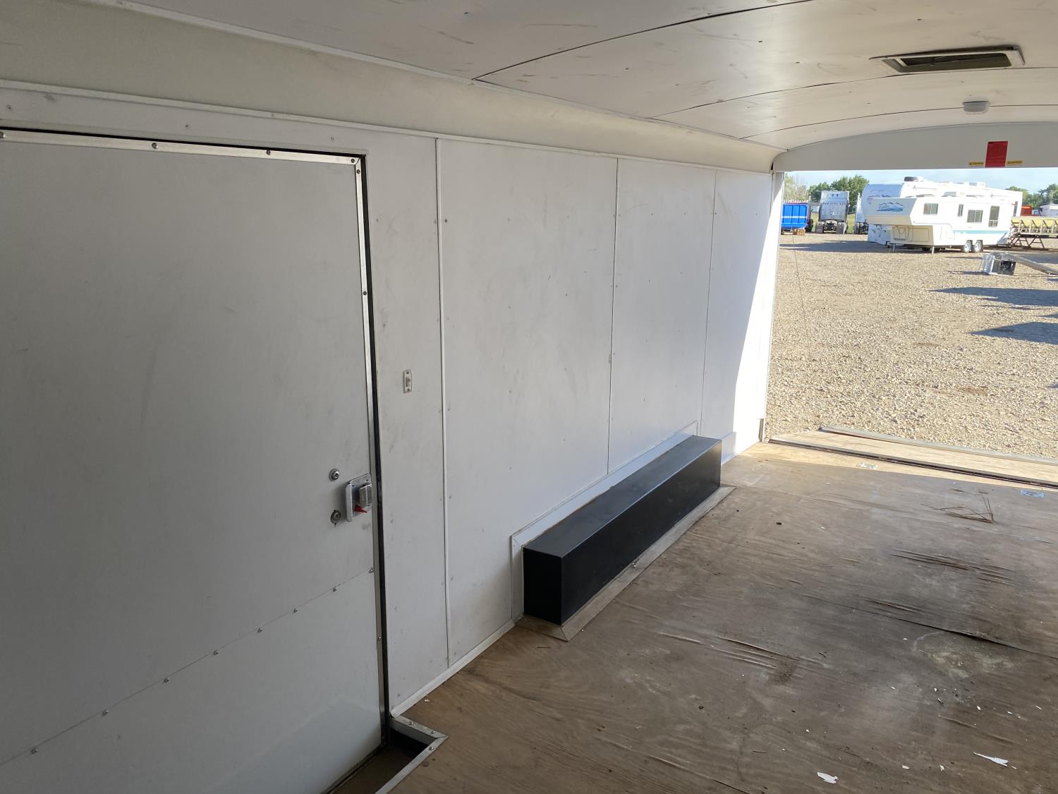 96 inch interior width, 76 inch interior height, ball hitch, side door, fold down door, electric brakes, torsion suspension, 3500 lb axles, 205/75R15 tires