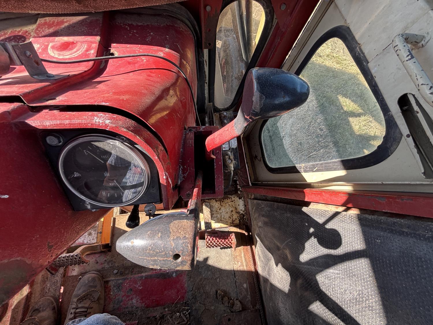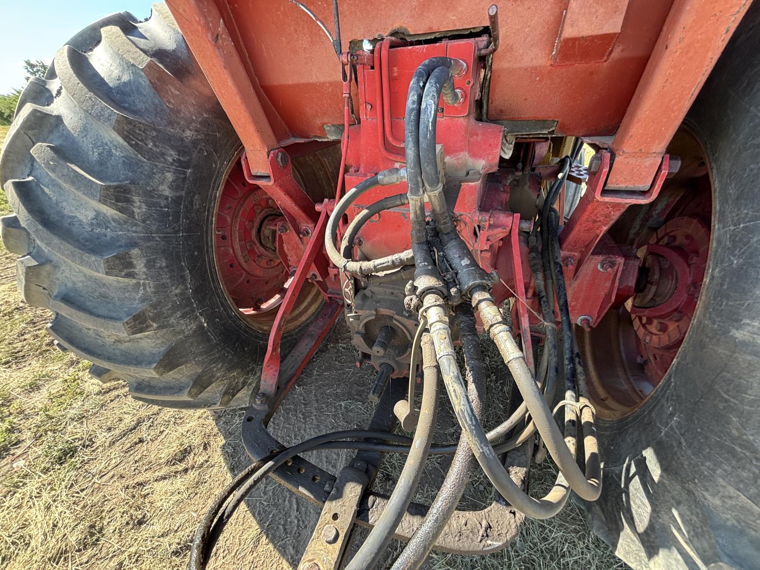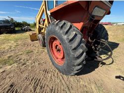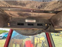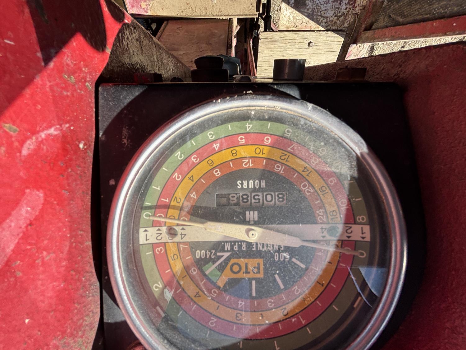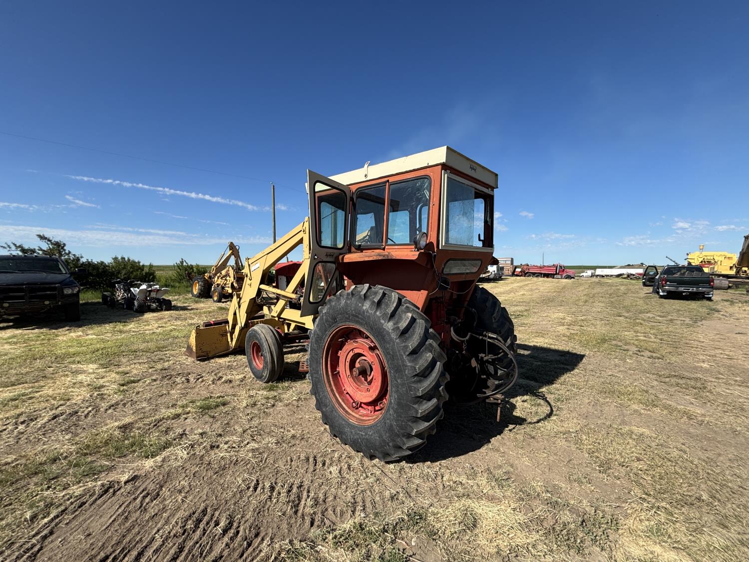 Ezee-On loader, 96 inch bucket, 34 inch bale forks,International 5.9 L 6 cylinder 105 HP, diesel engine, 94 PTO HP, 8 speed manual transmission, cab, 540/1000 PTO, 2 rear hydraulic outlets, rear wheel weights, 10.00-16 front tires, 18.4-34 rear tires