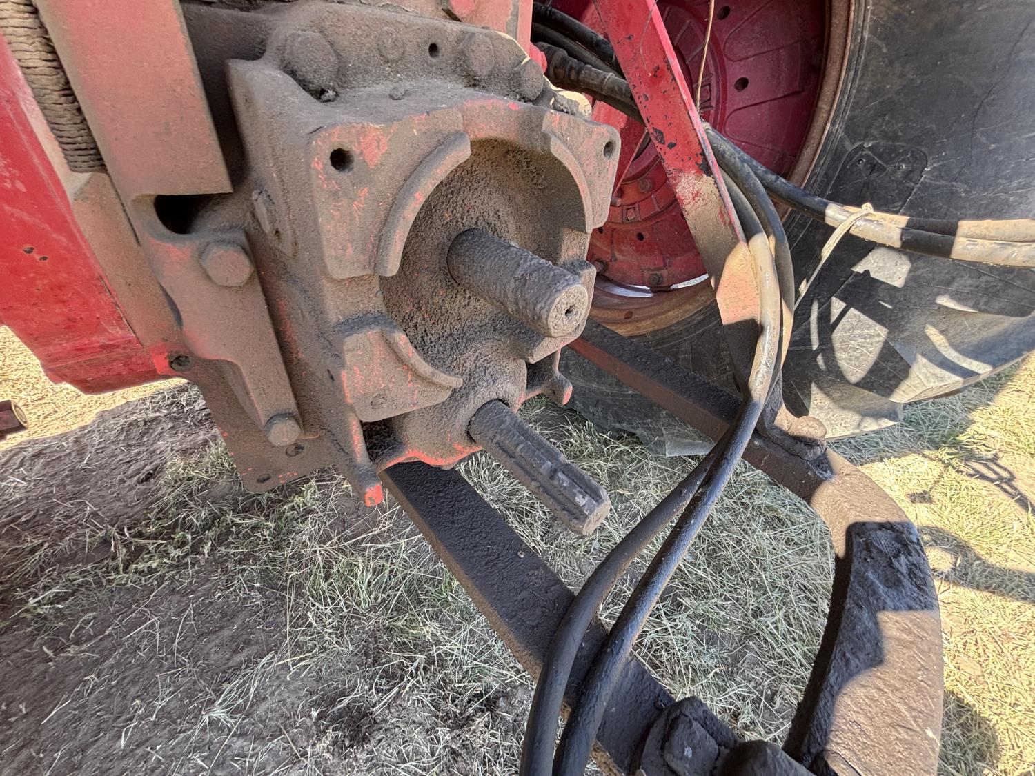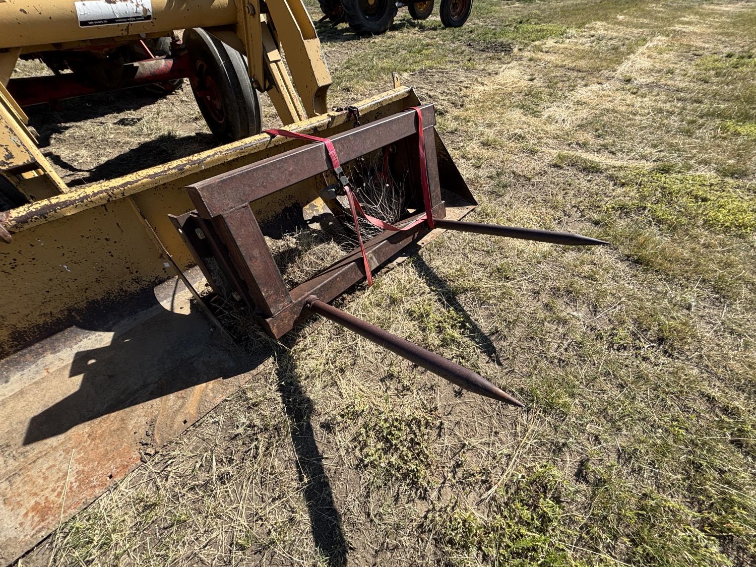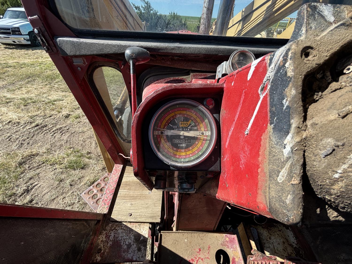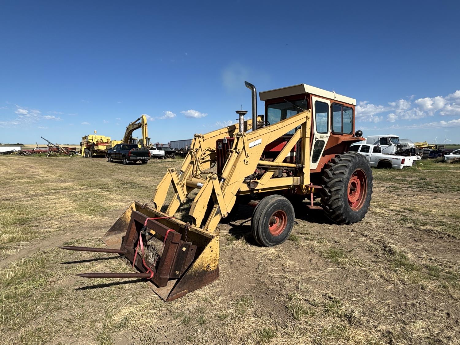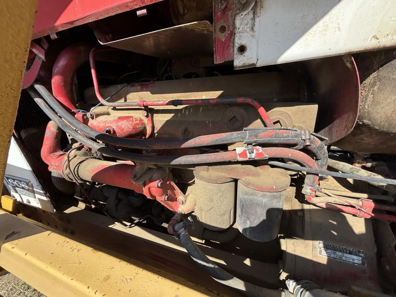 Ezee-On loader, 96 inch bucket, 34 inch bale forks,International 5.9 L 6 cylinder 105 HP, diesel engine, 94 PTO HP, 8 speed manual transmission, cab, 540/1000 PTO, 2 rear hydraulic outlets, rear wheel weights, 10.00-16 front tires, 18.4-34 rear tires
