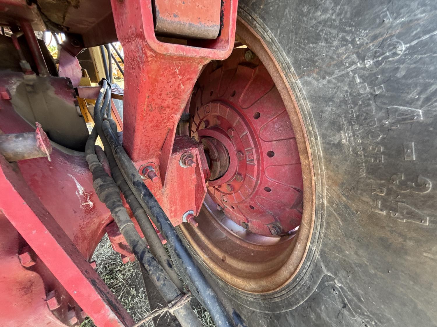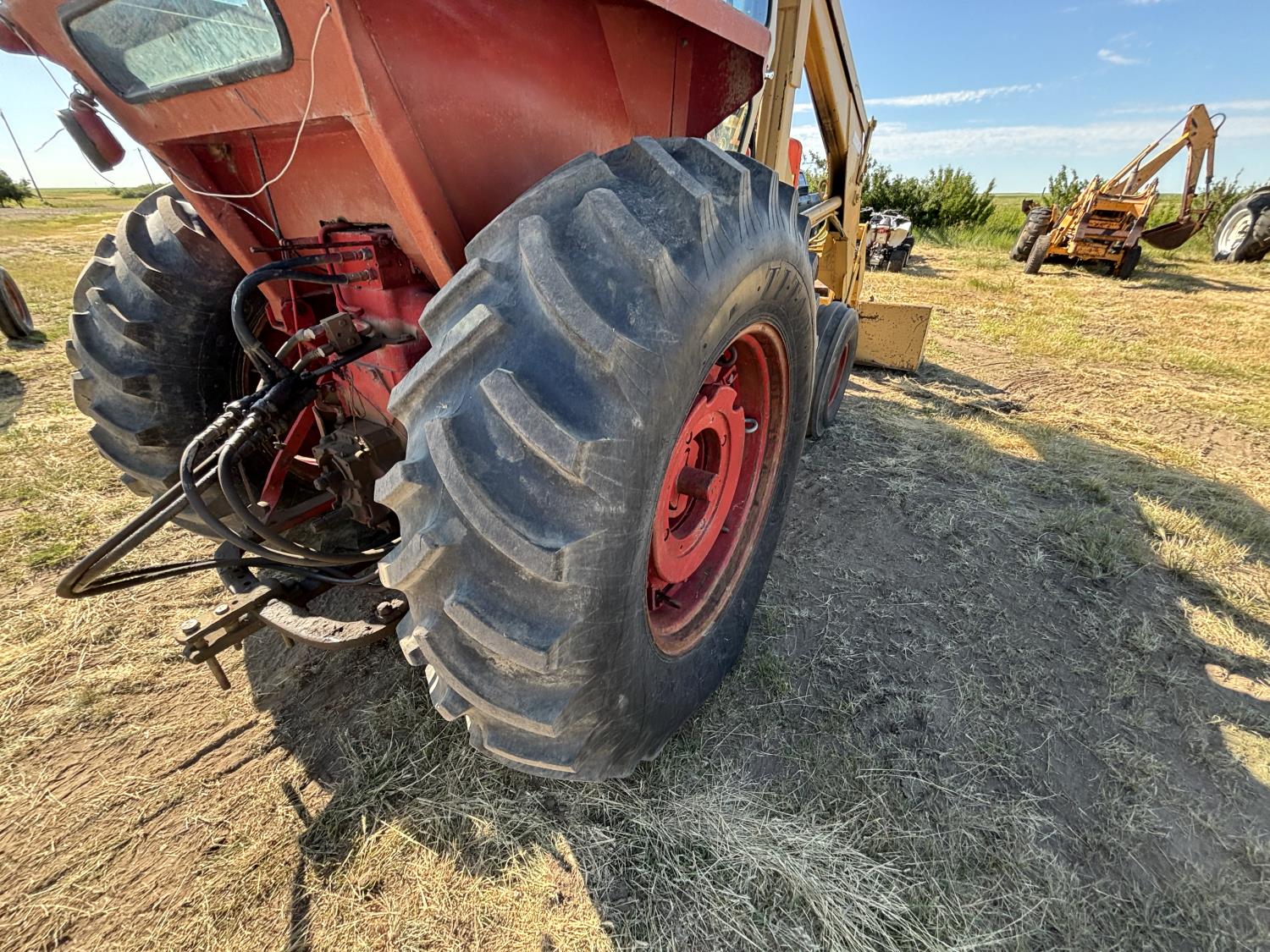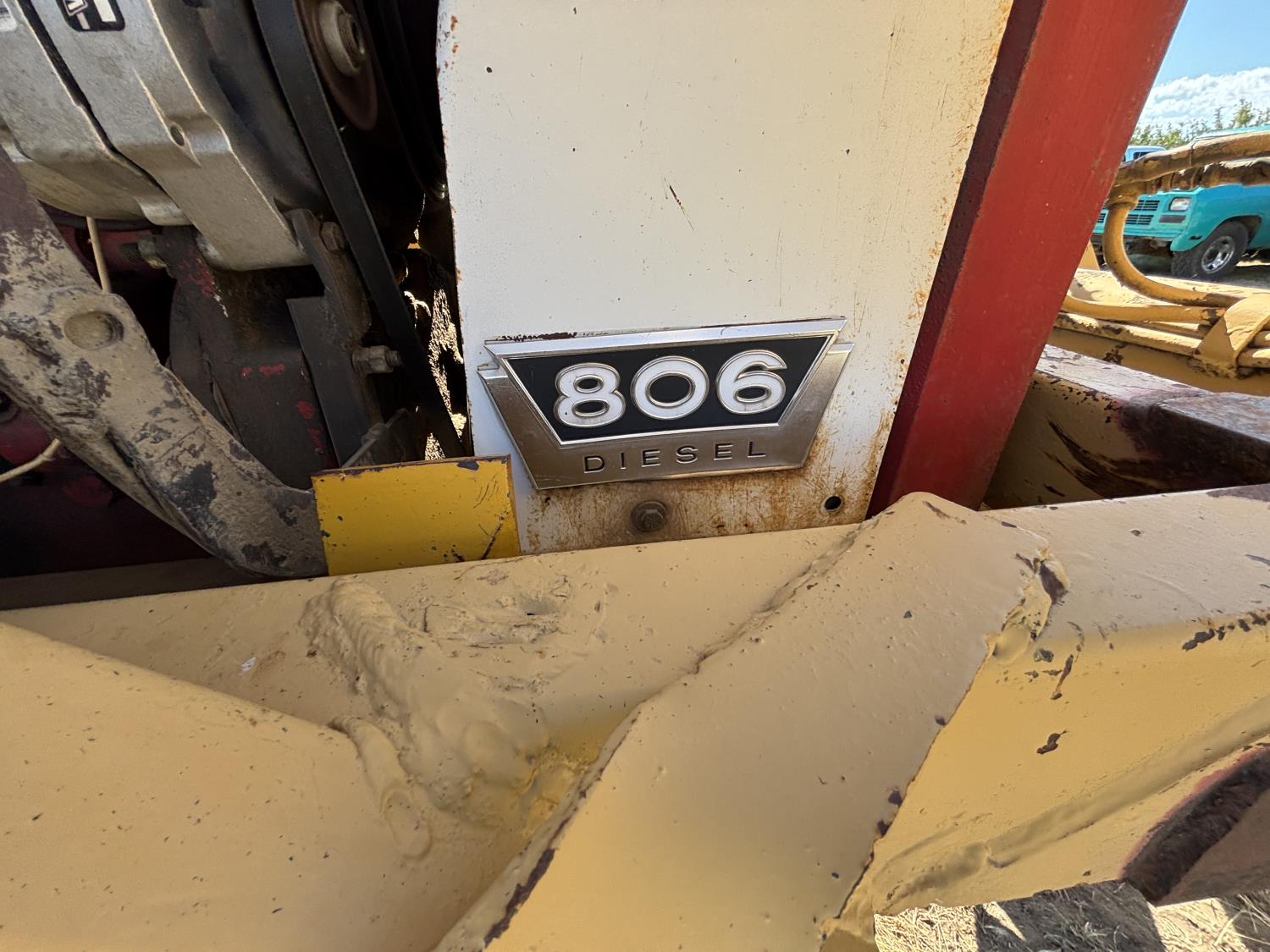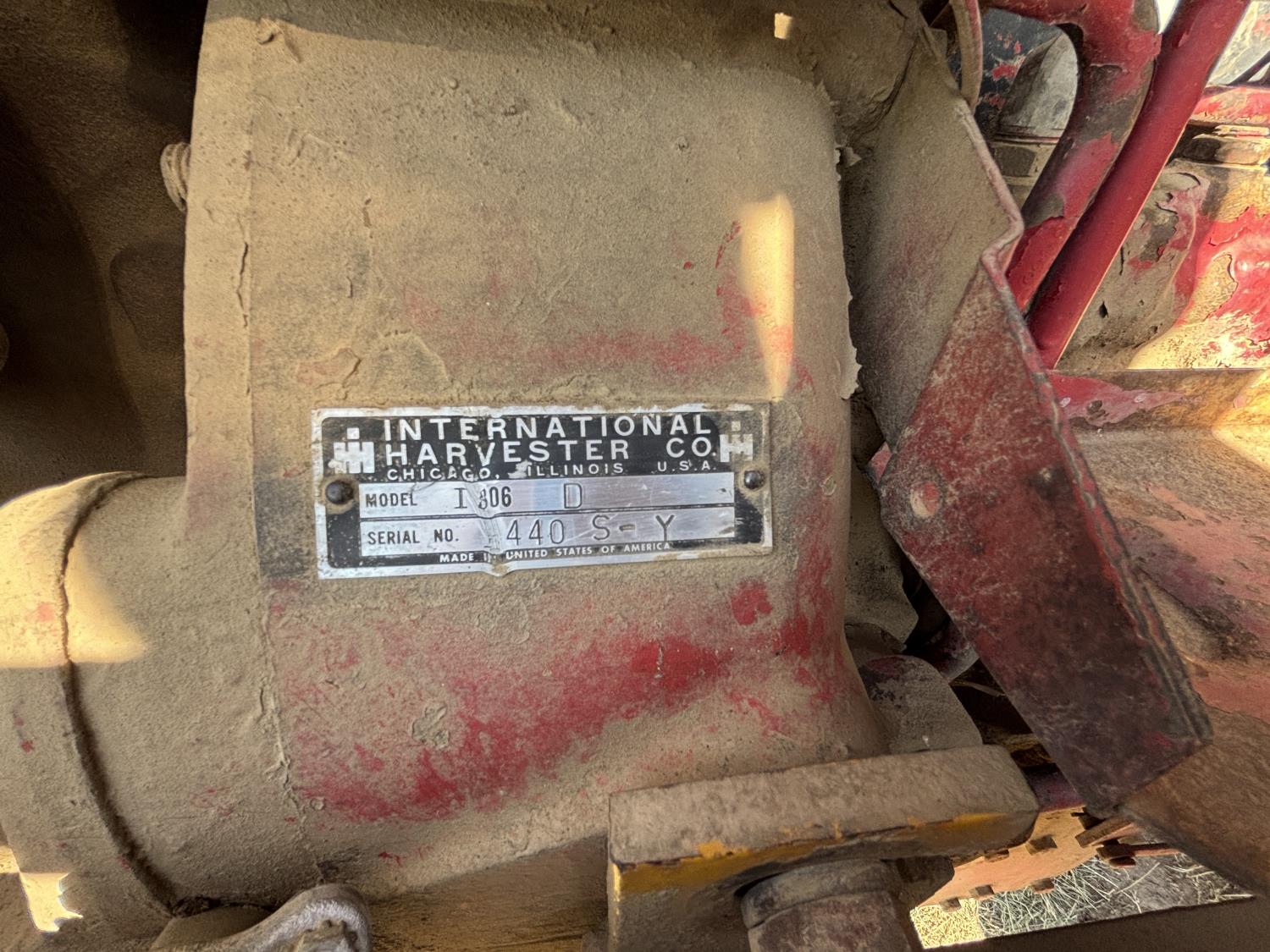 Ezee-On loader, 96 inch bucket, 34 inch bale forks,International 5.9 L 6 cylinder 105 HP, diesel engine, 94 PTO HP, 8 speed manual transmission, cab, 540/1000 PTO, 2 rear hydraulic outlets, rear wheel weights, 10.00-16 front tires, 18.4-34 rear tires