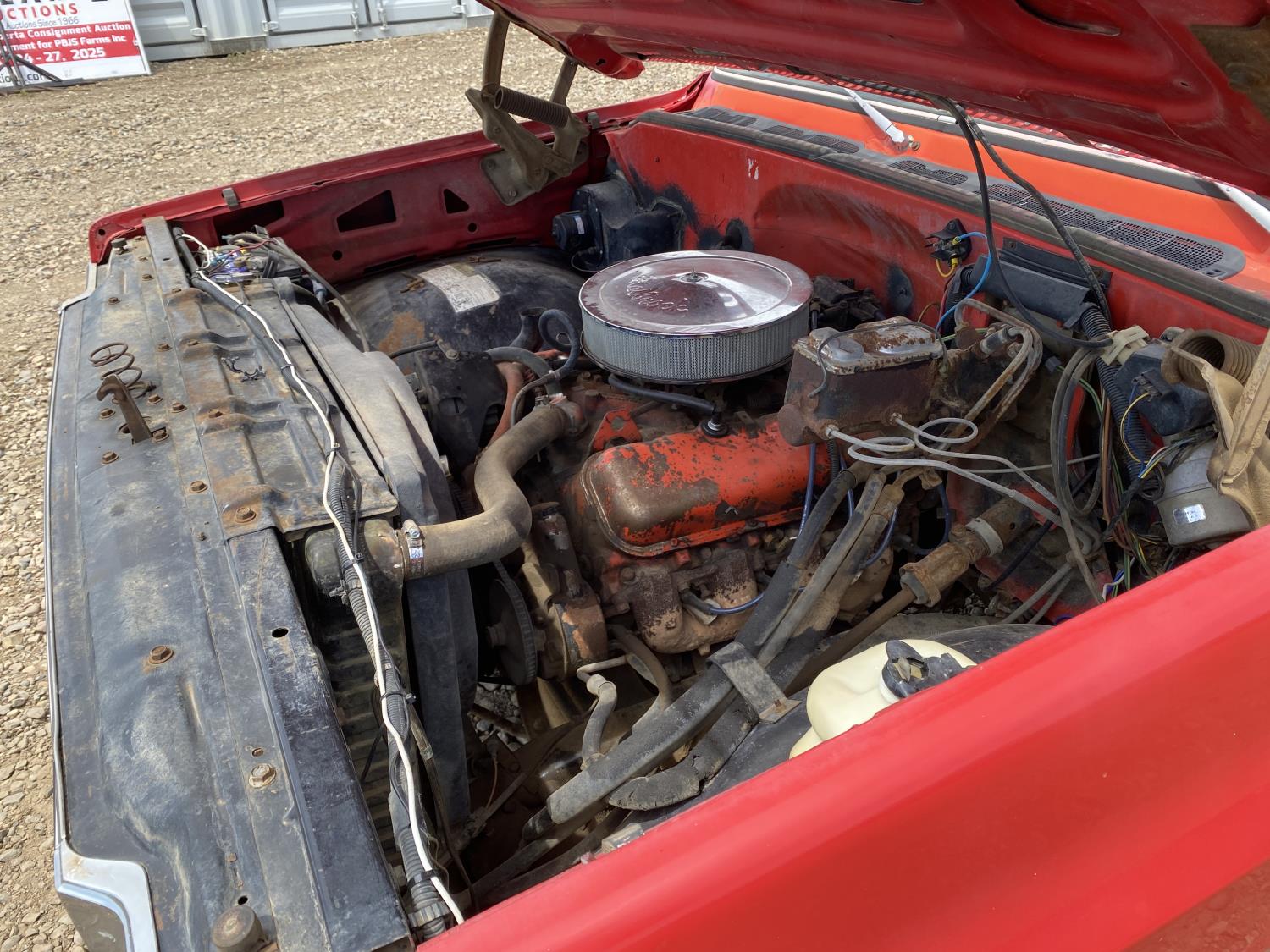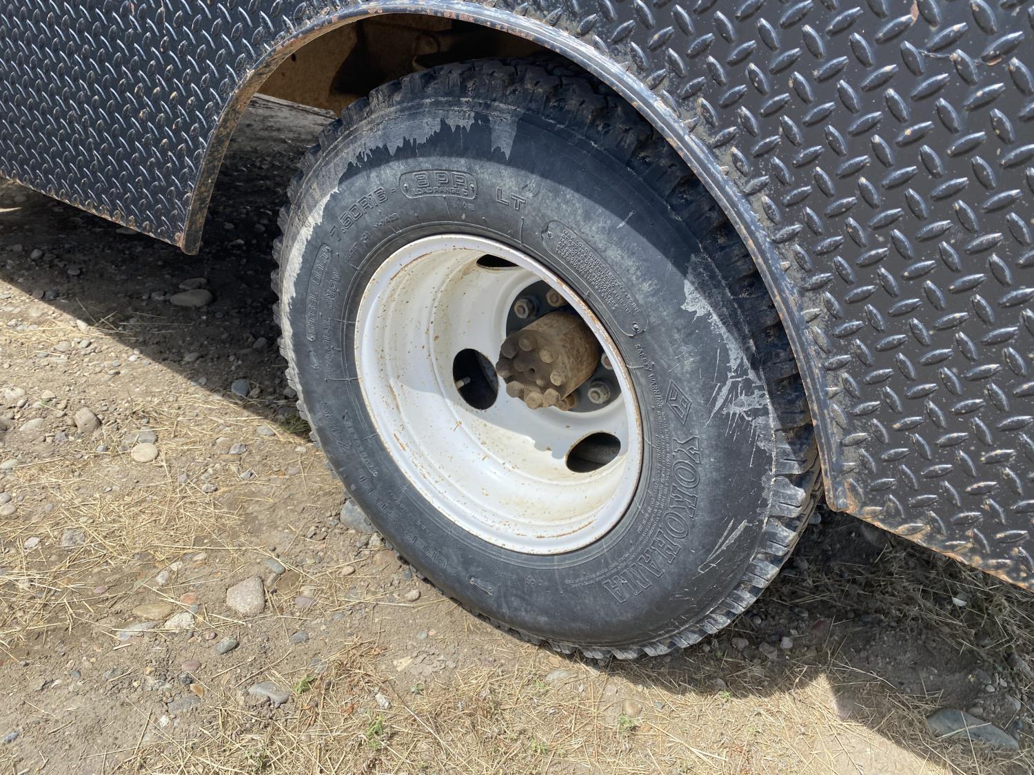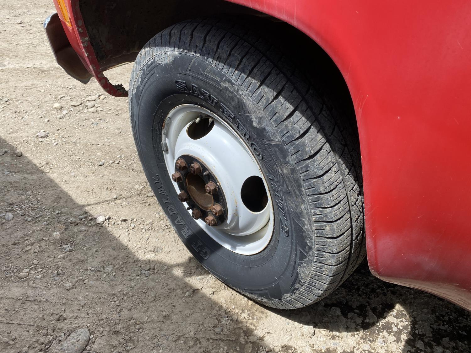 350 cu in, V8, 4 speed manual transmission, 126 inch long deck, 86 in wide deck, 235/85R16 tires