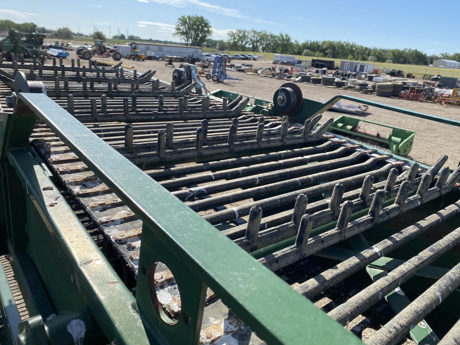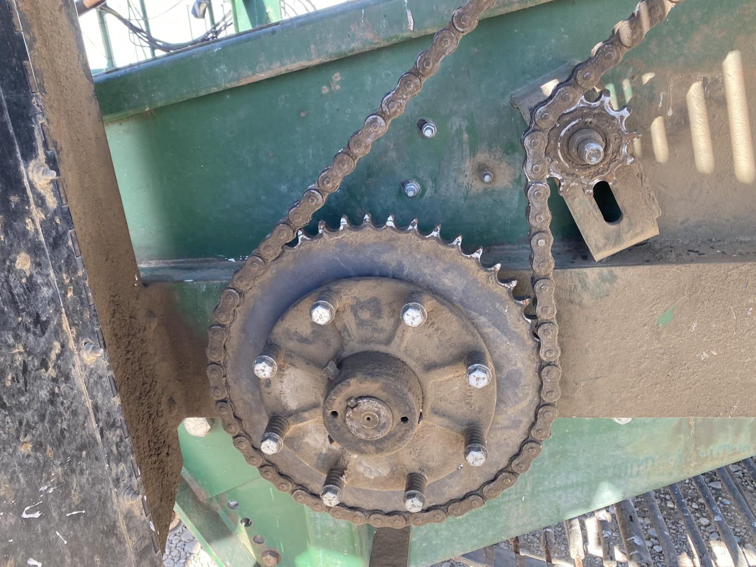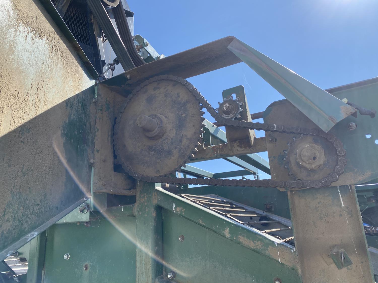 36 inch spacing, 45 mm inside to inside primary chains, 40 mm inside to inside secondary chains, steerable 40/19-19.5 floatation tires, blower, big 1000 PTO