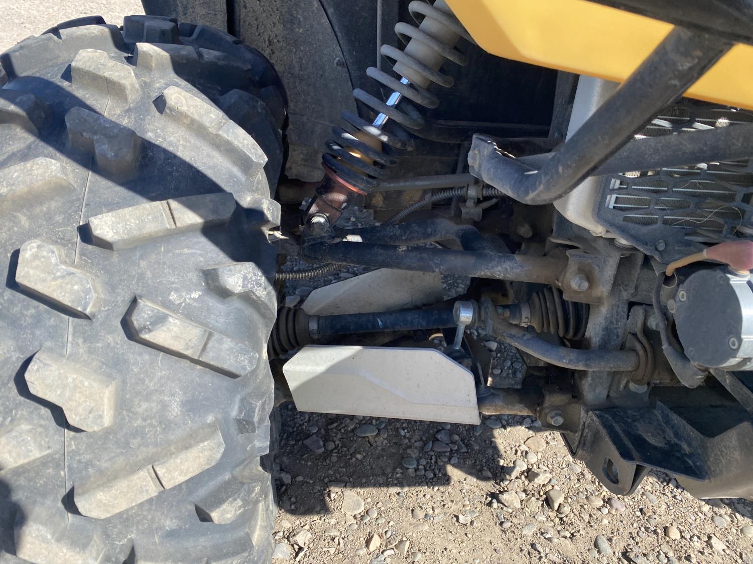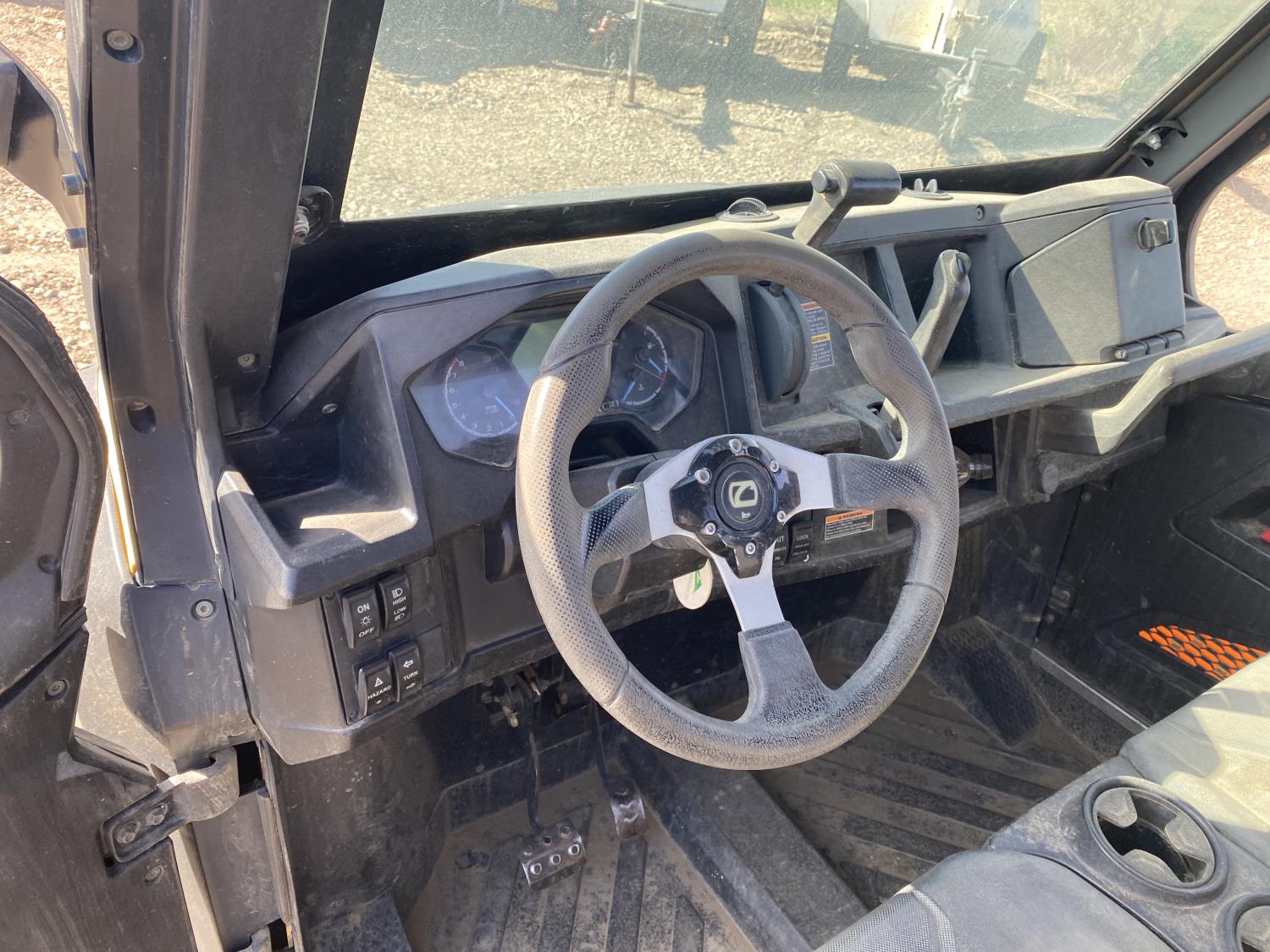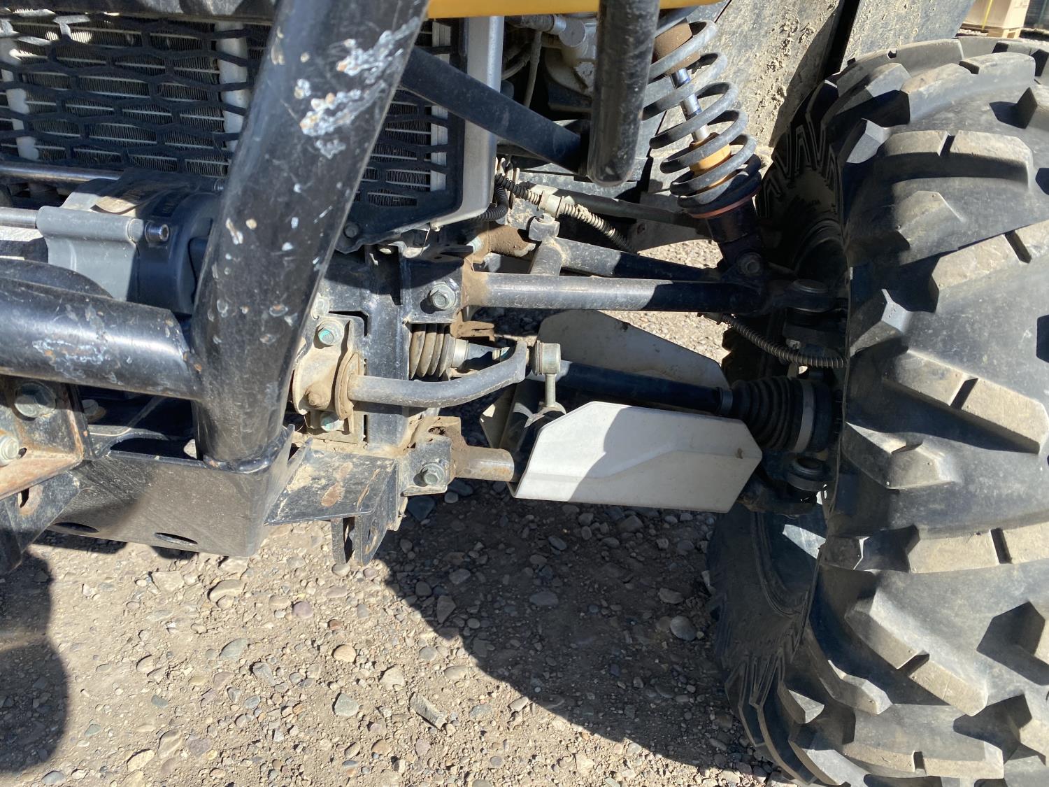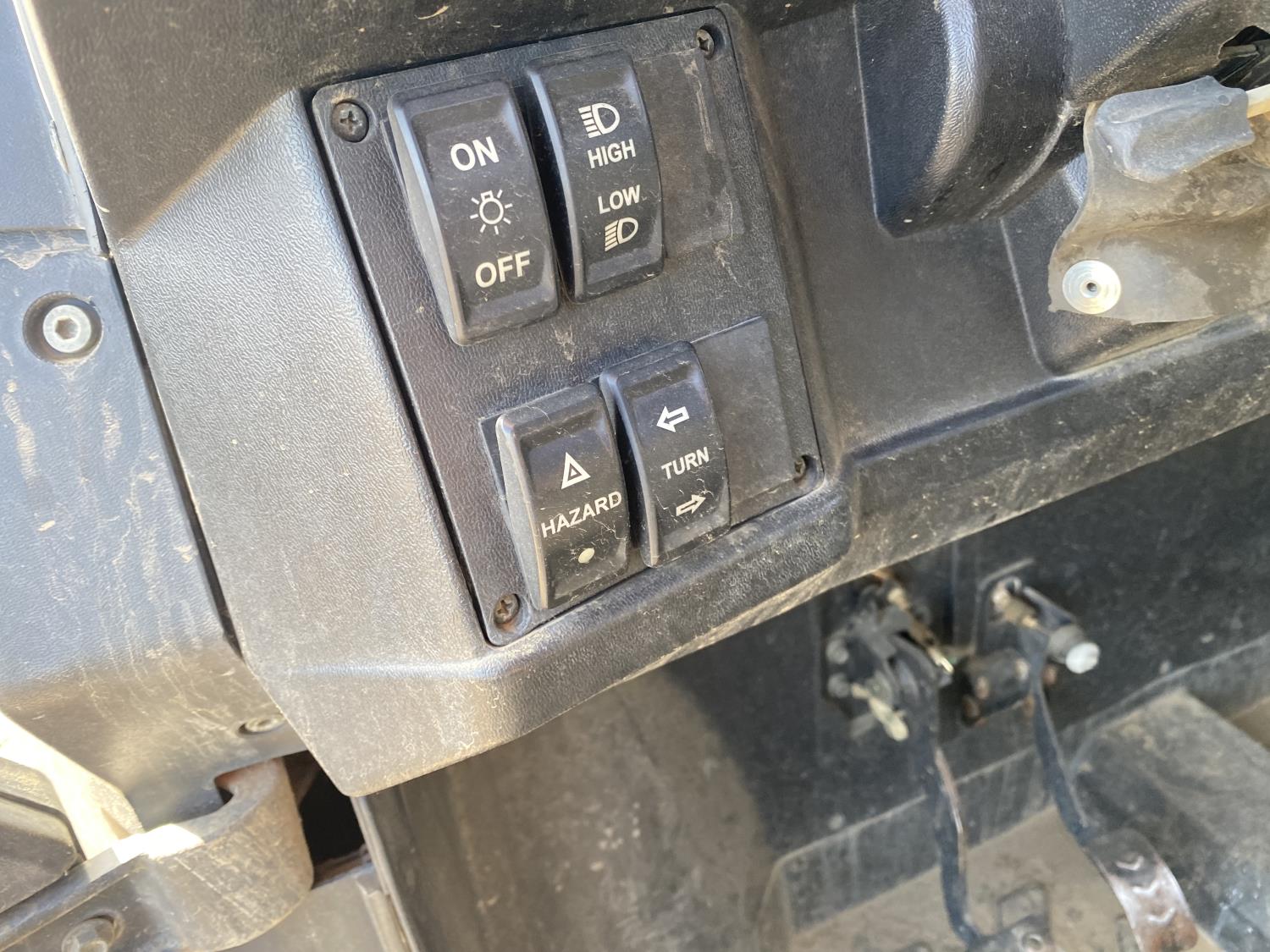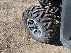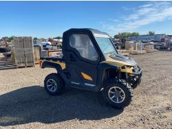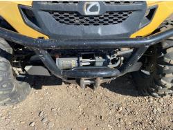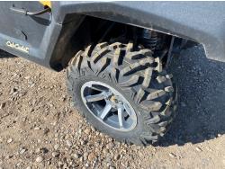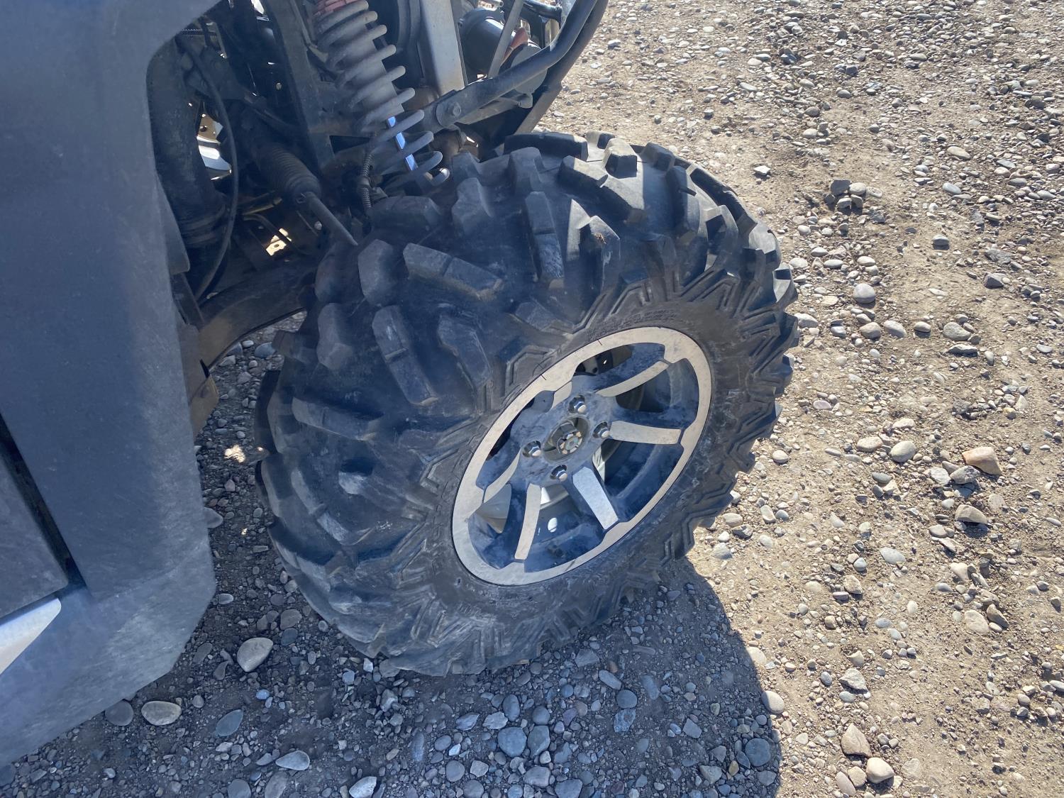 735 cc fuel injected water cooled engine, CVT transmission, Hi/Lo range, reverse, 2 door enclosed cab, 2 passengers, heater, windshield, front winch, manual dump box, receiver hitch, independent suspension, aluminum wheels, 28X11.00R14 tires