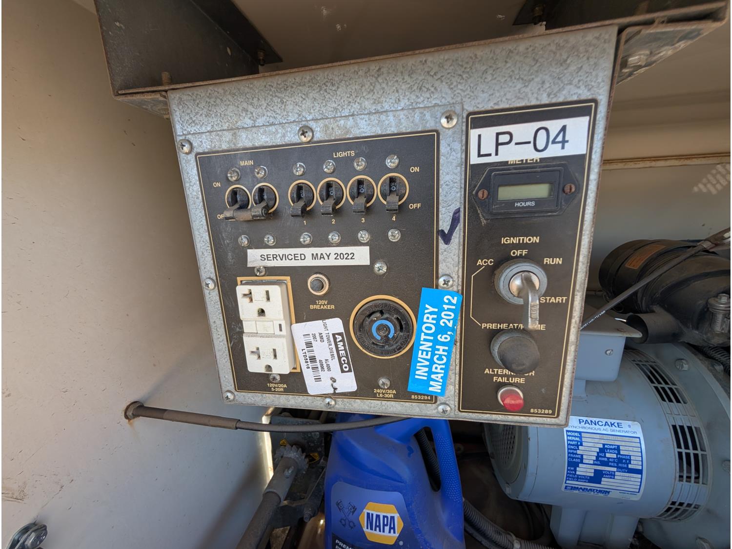 Kubota 1.1L diesel engine, 120/240 volt, single phase, 205/75R15 tires, pintle hitch