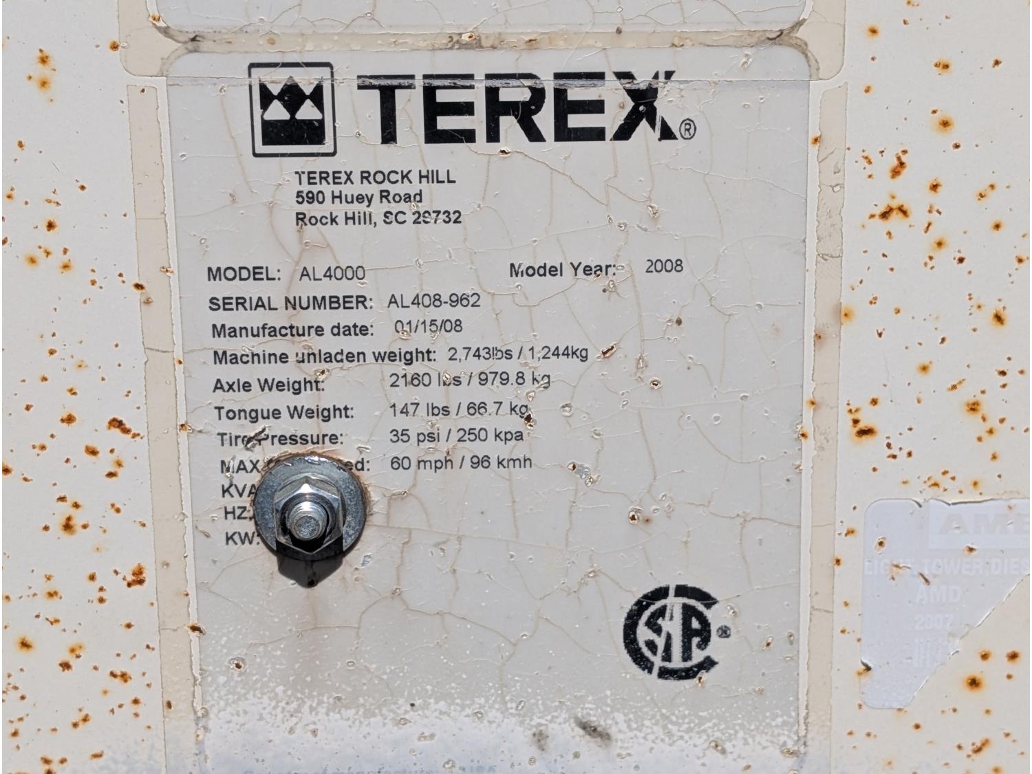 68 2008 Terex AL4000 6 Kw Light Tower (Inoperable)