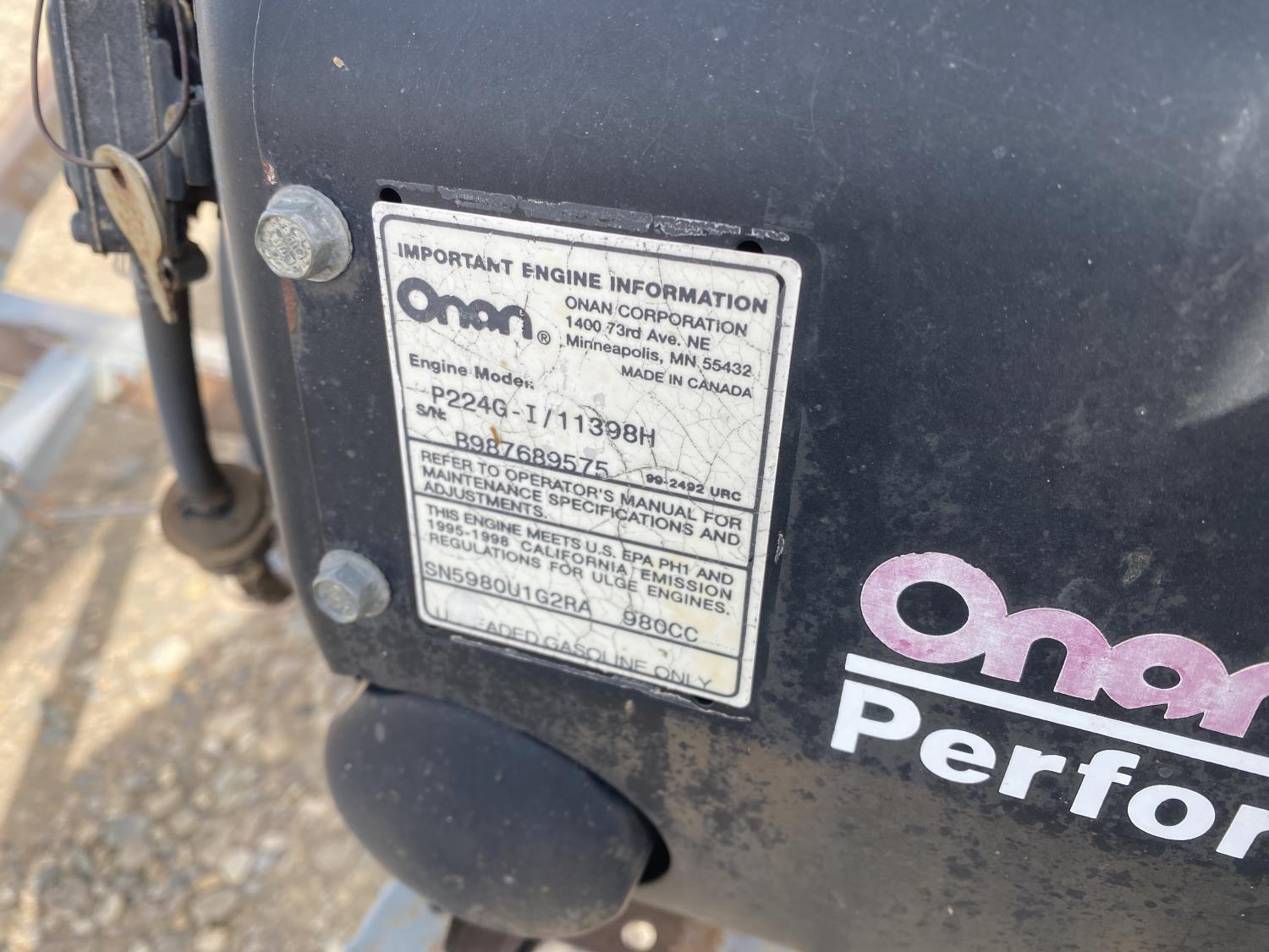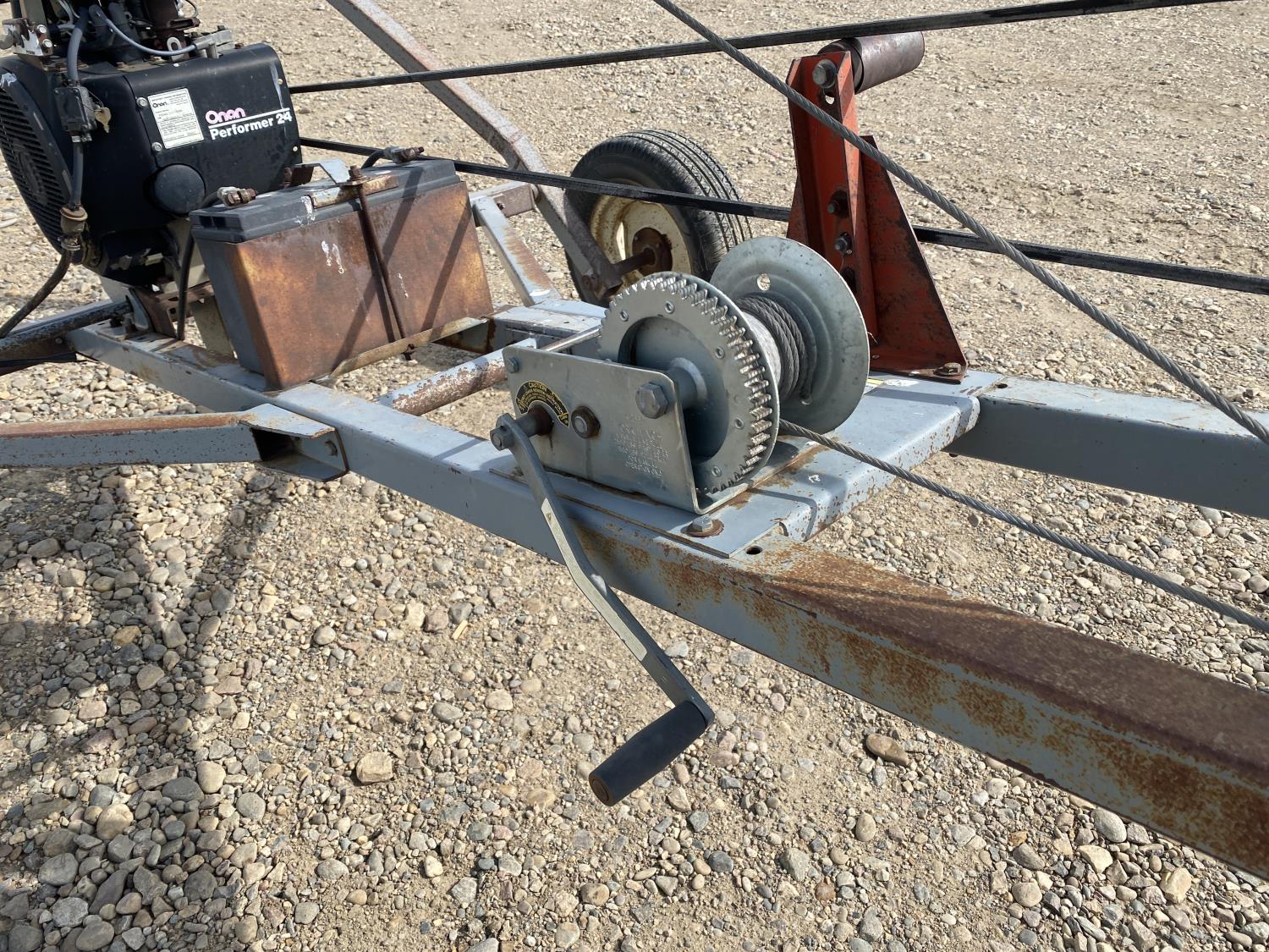 Onan P224G 980 cc electric start gas engine, hand winch lift, 205/70R15 tires
