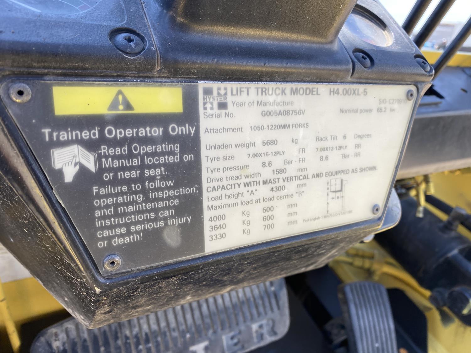 309 2011 Hyster H4.00XL-5 8000 2WD Rough Terrain Forklift
