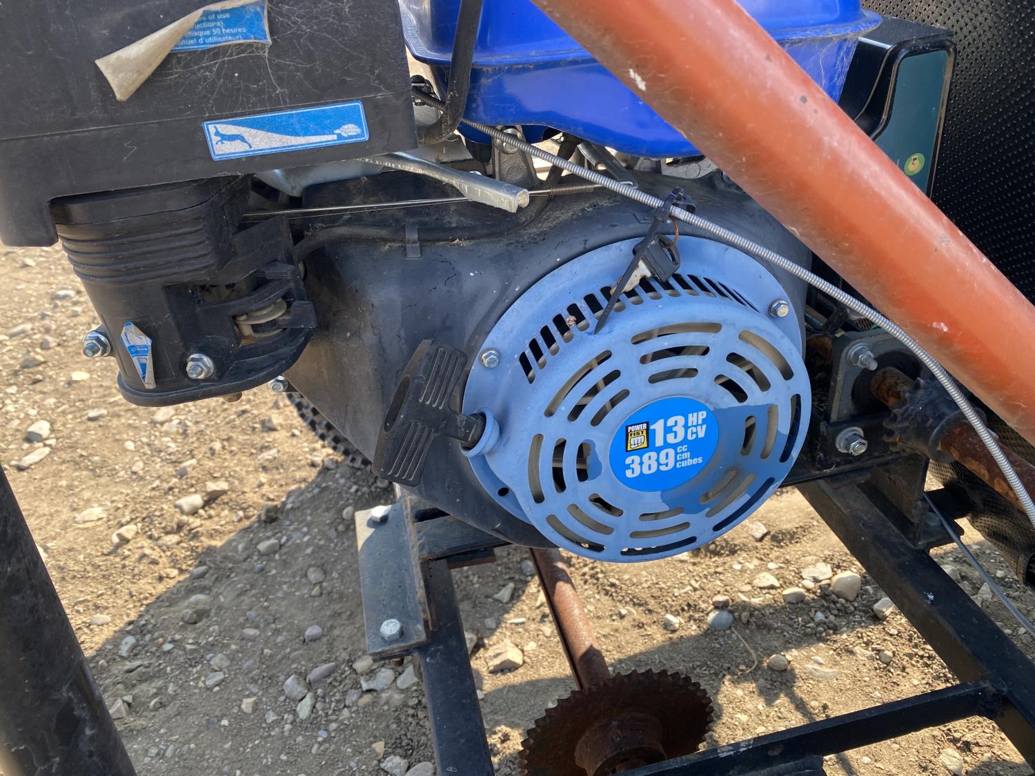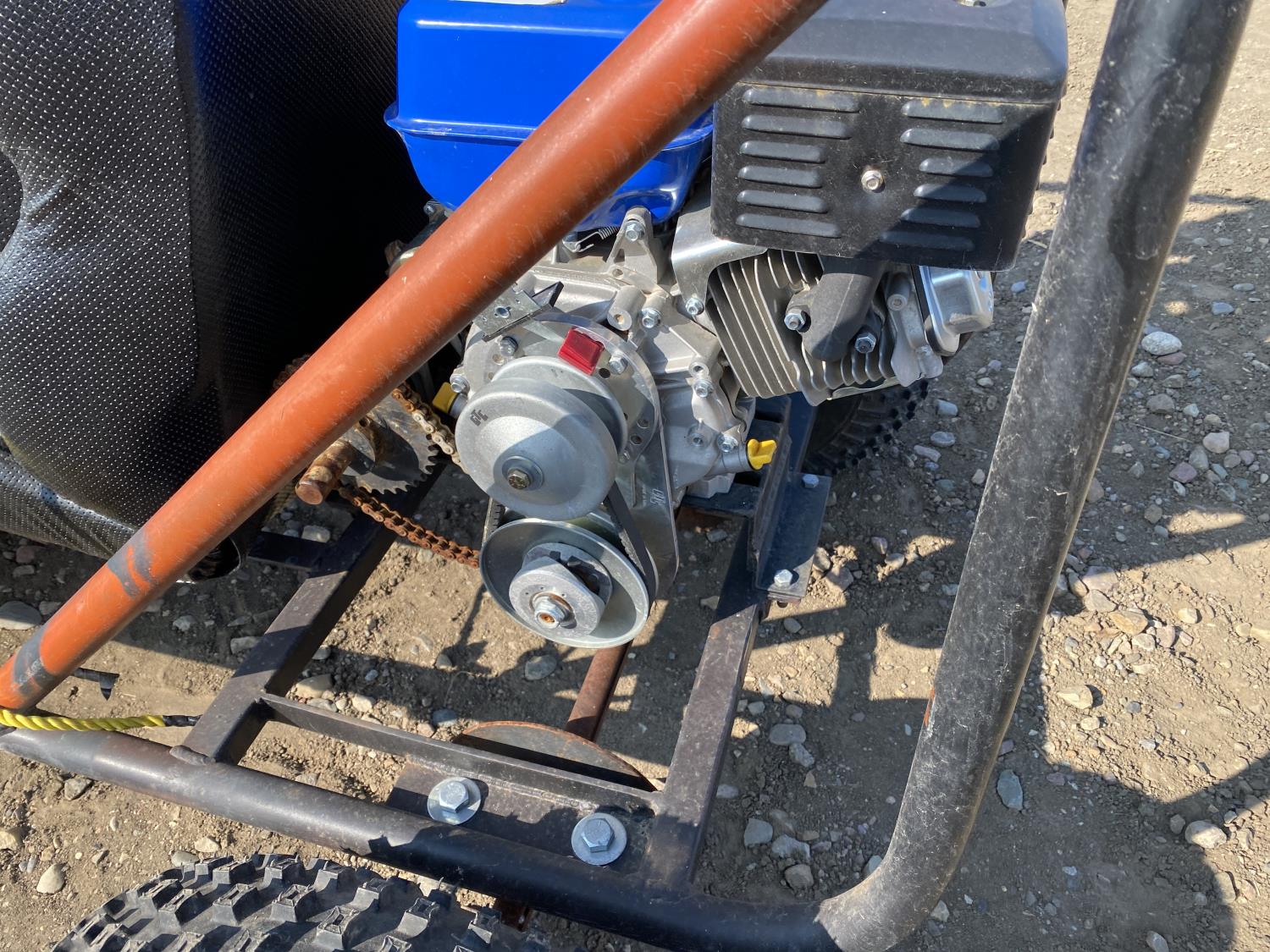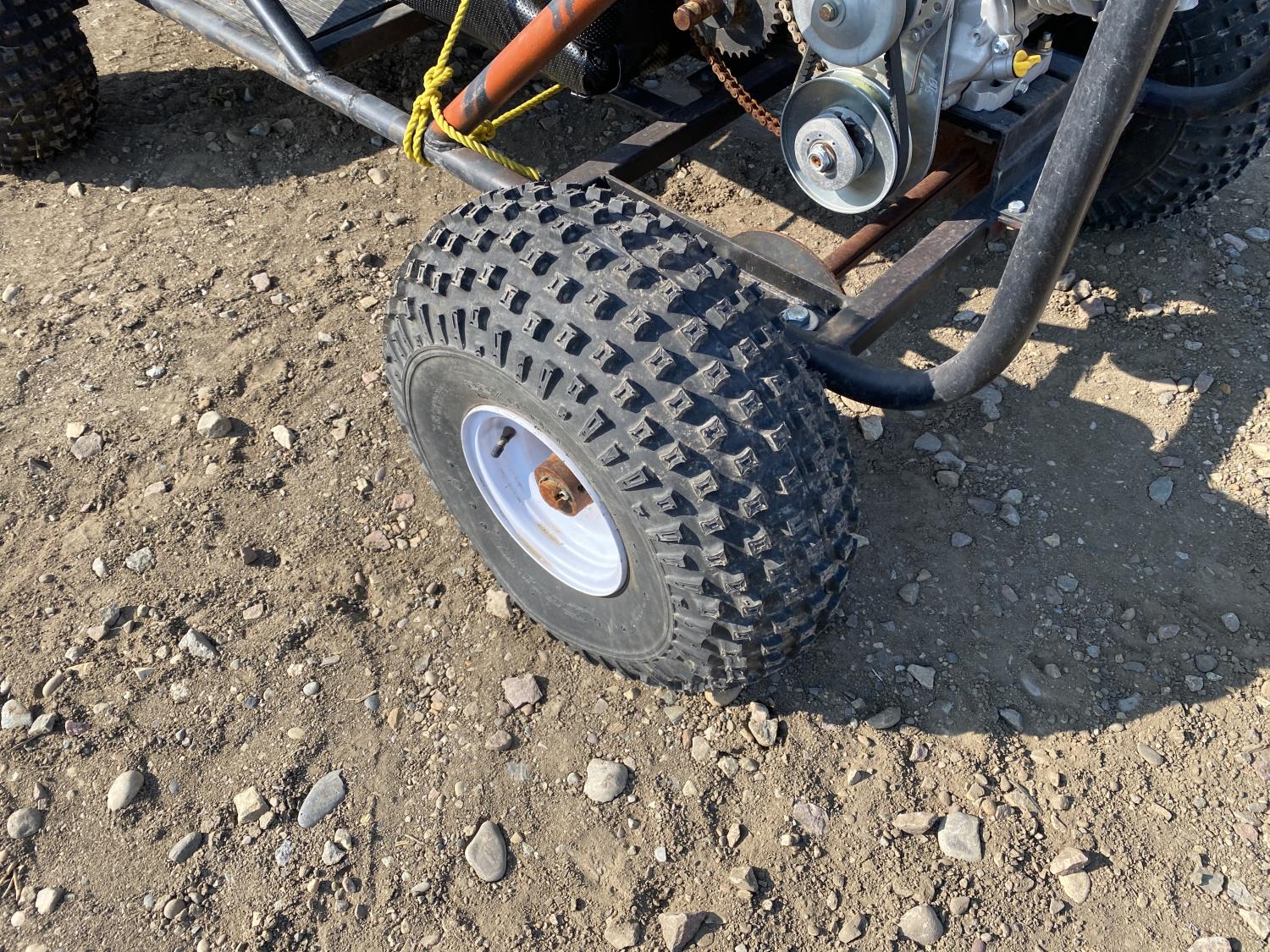 13 HP Power Fist gas engine, 21x9-8 front tires, 22x11-8 rear tires, includes spare engine and spare seat