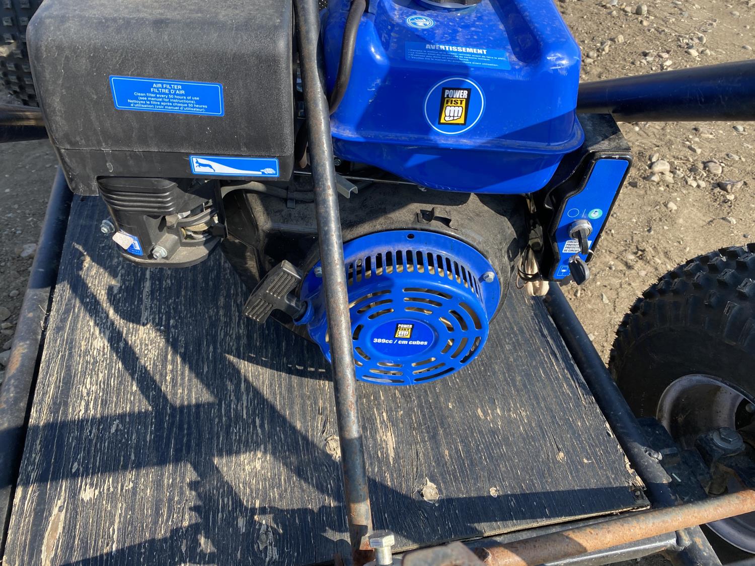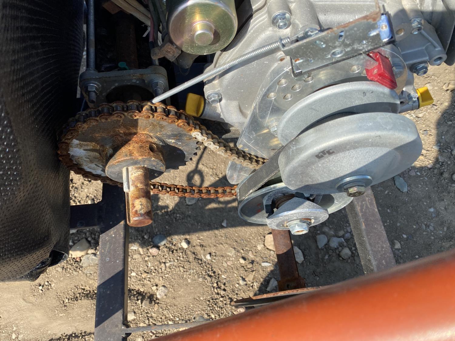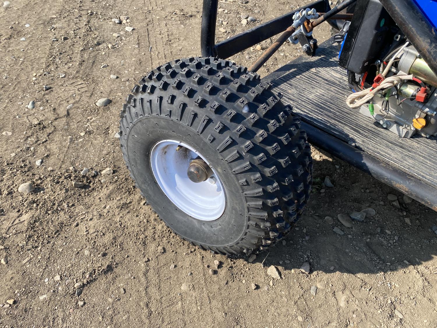 13 HP Power Fist gas engine, 21x9-8 front tires, 22x11-8 rear tires, includes spare engine and spare seat