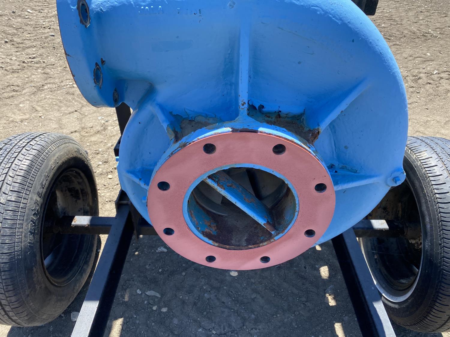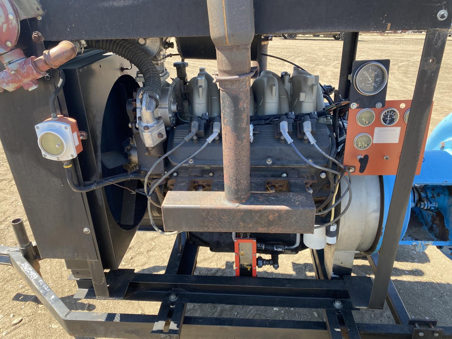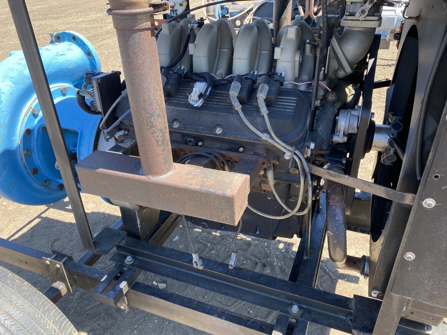 8 inch inlet, 6 inch outlet, V8 gas engine, 215/70R15 tires