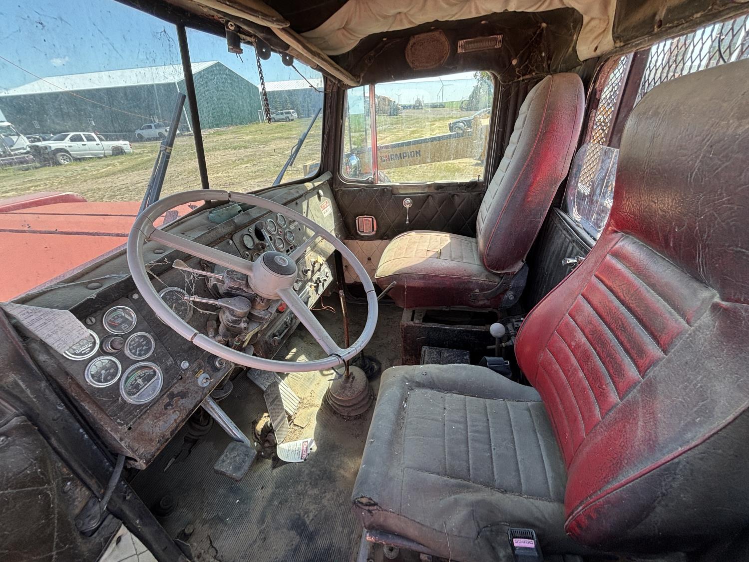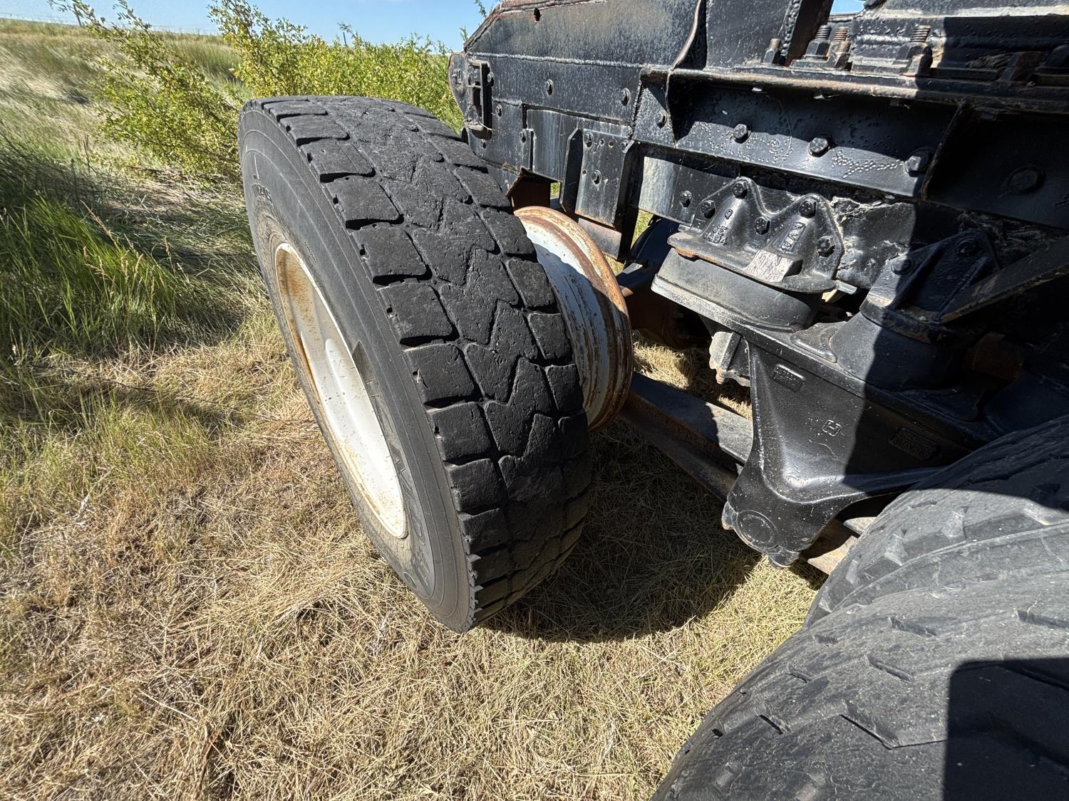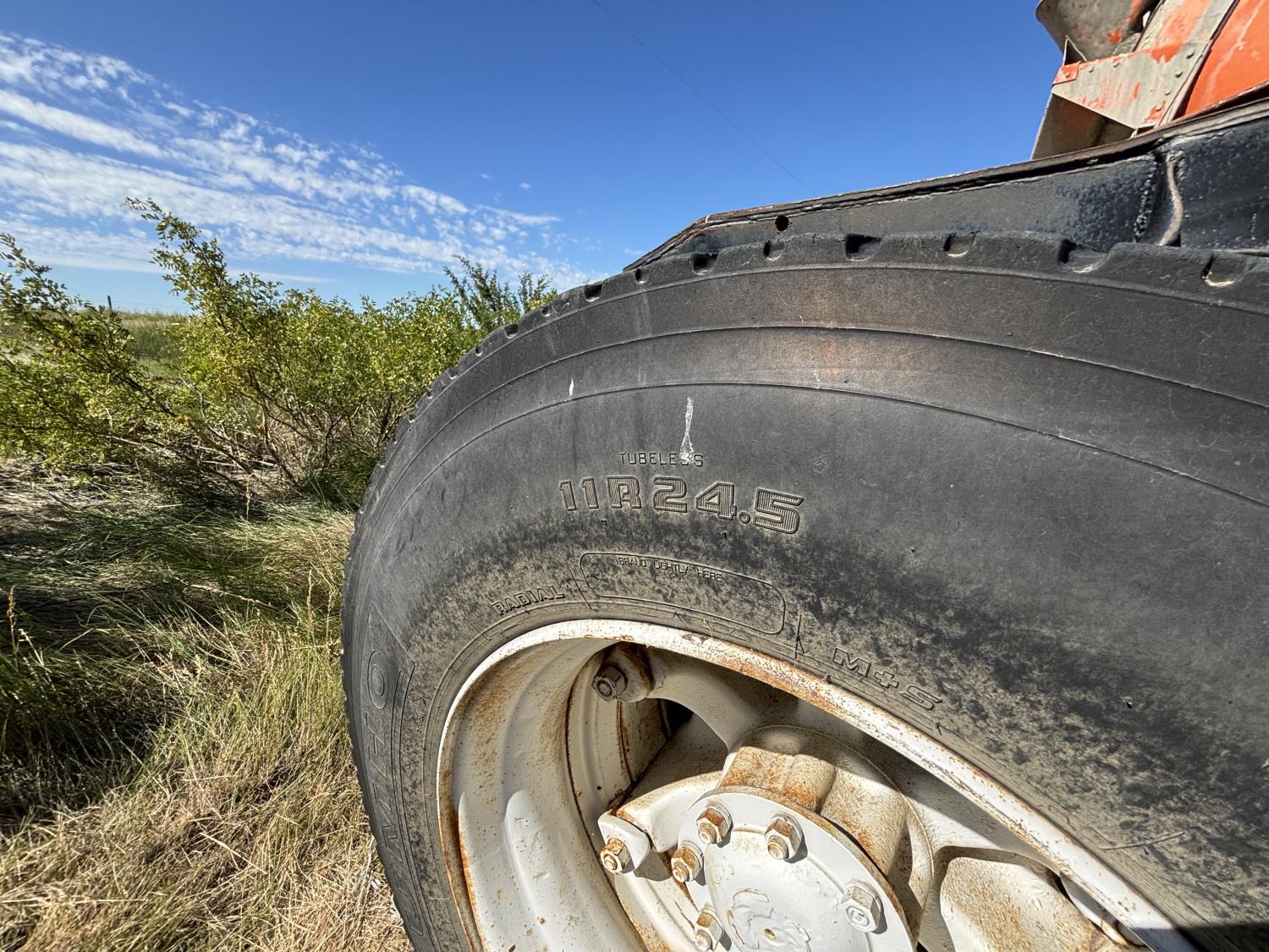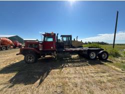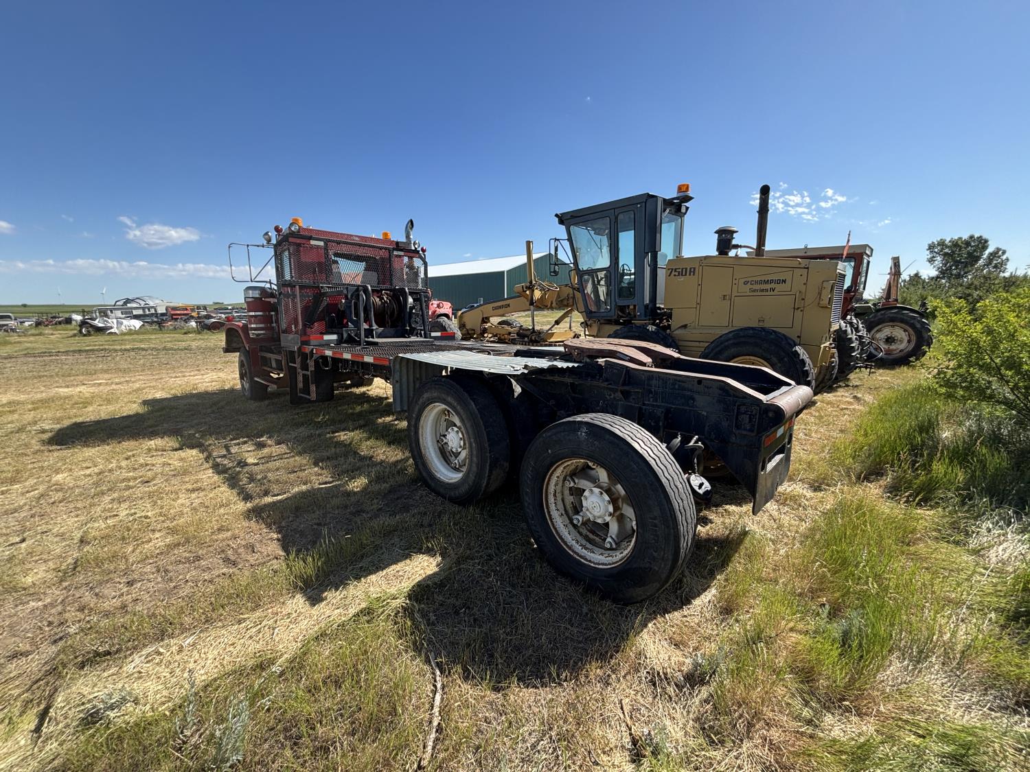 Cummins 6 cylinder diesel engine, manual transmission, 96 inch x 84 inch deck, beacons, chain holders, Tulsa winch, rubber block suspension, 255 inch WB, 11R22.5 front tires, 11R24.5 rear tires