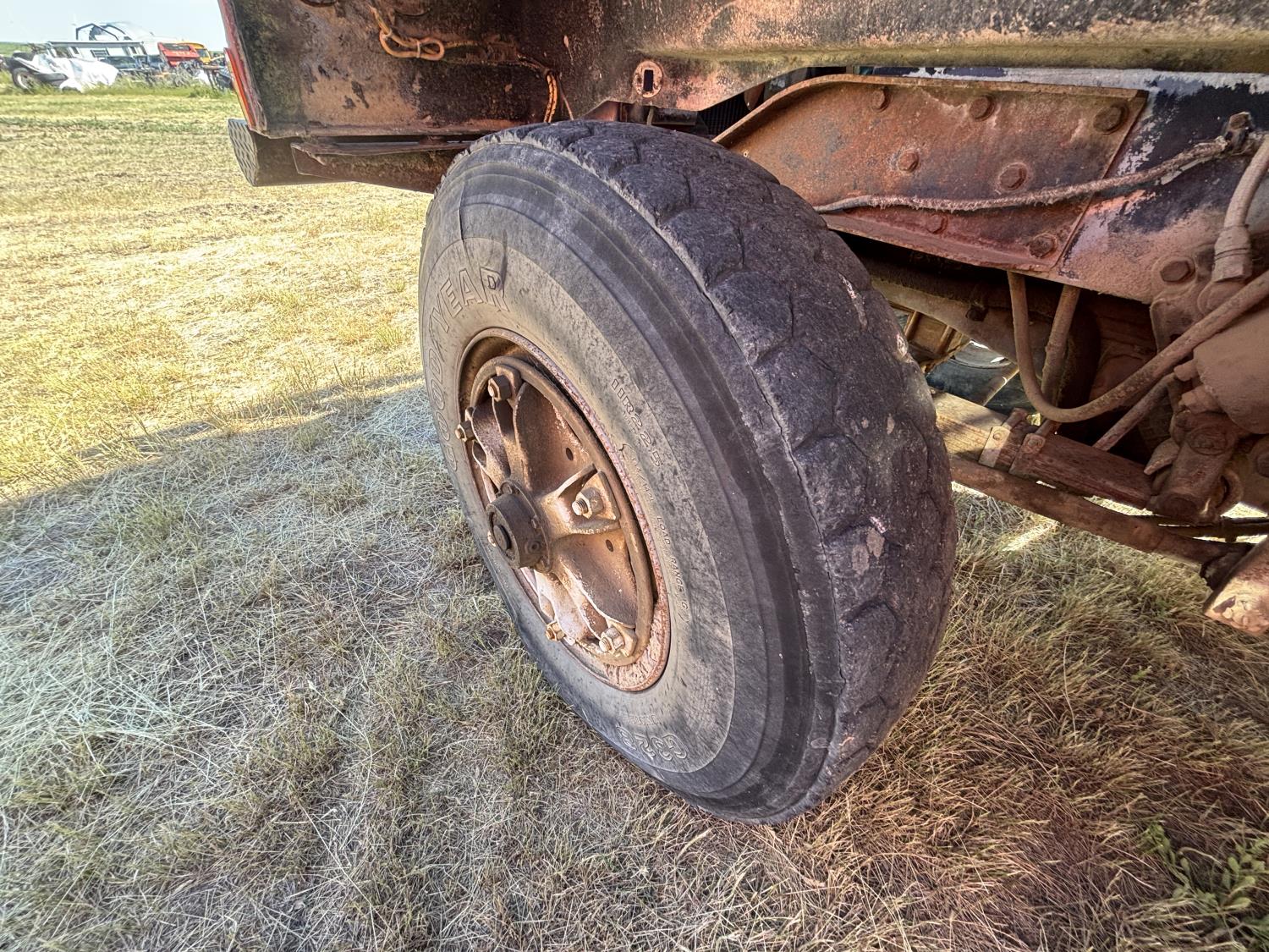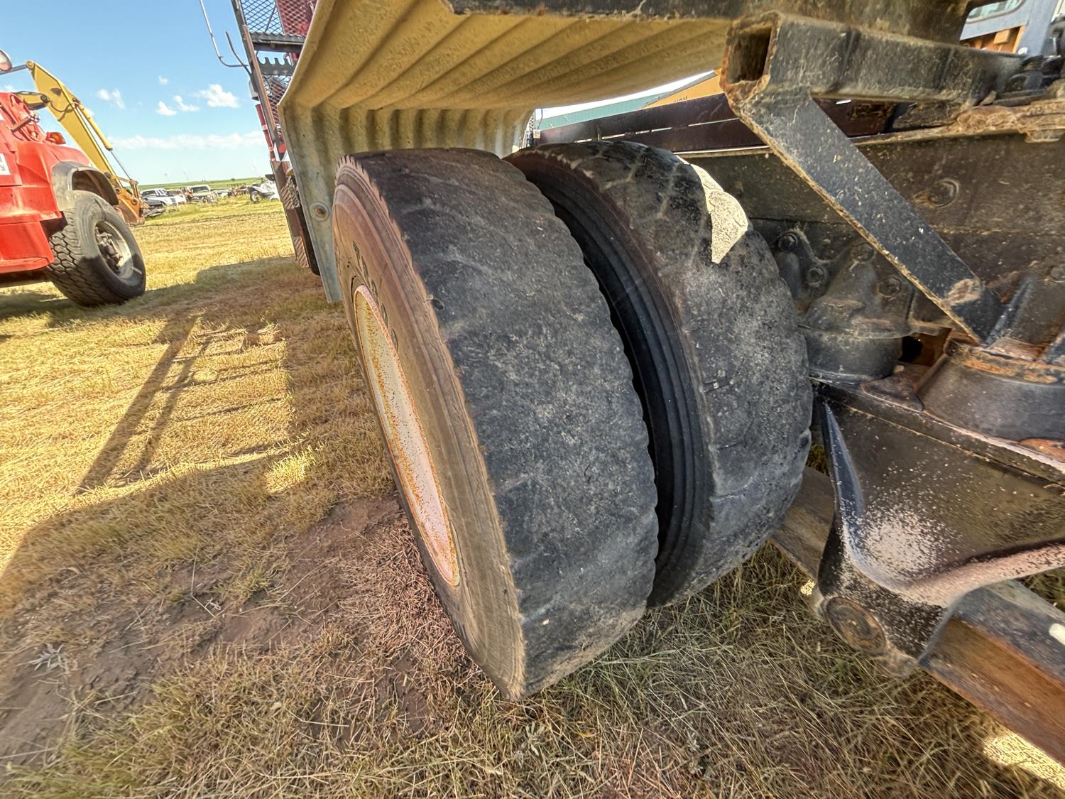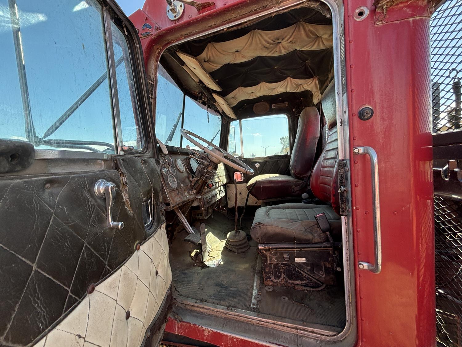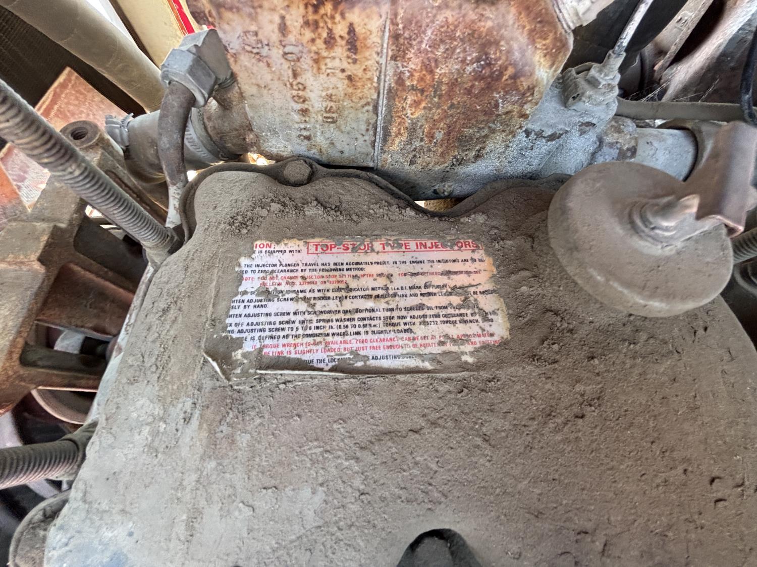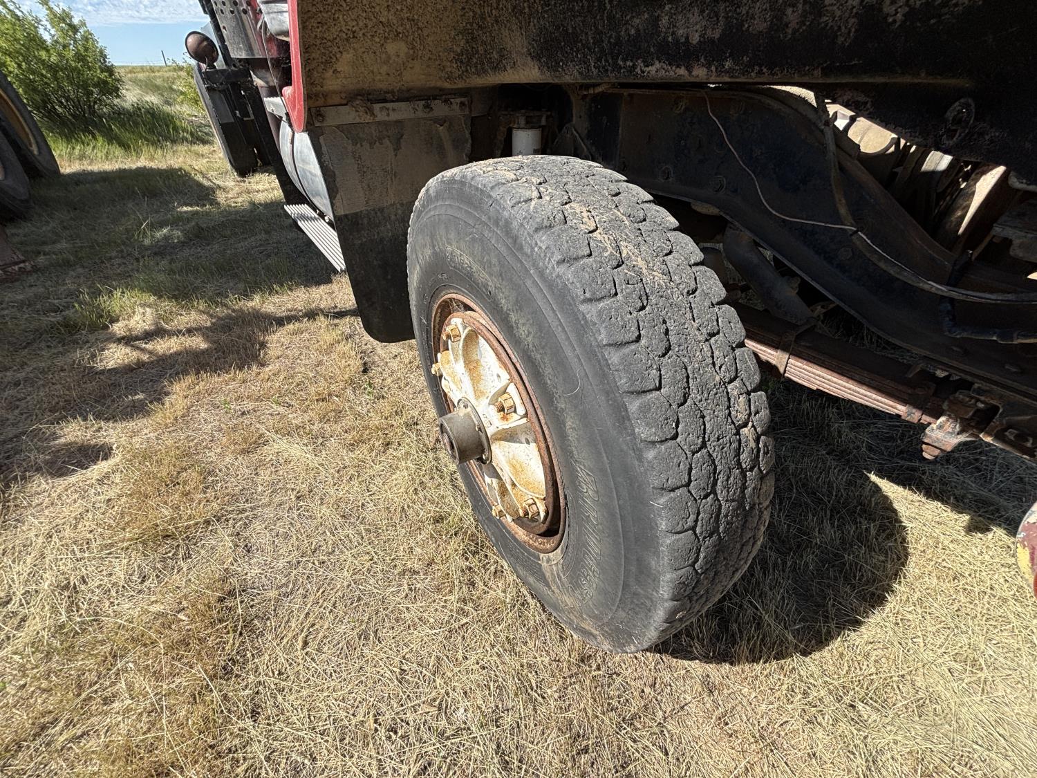 Cummins 6 cylinder diesel engine, manual transmission, 96 inch x 84 inch deck, beacons, chain holders, Tulsa winch, rubber block suspension, 255 inch WB, 11R22.5 front tires, 11R24.5 rear tires