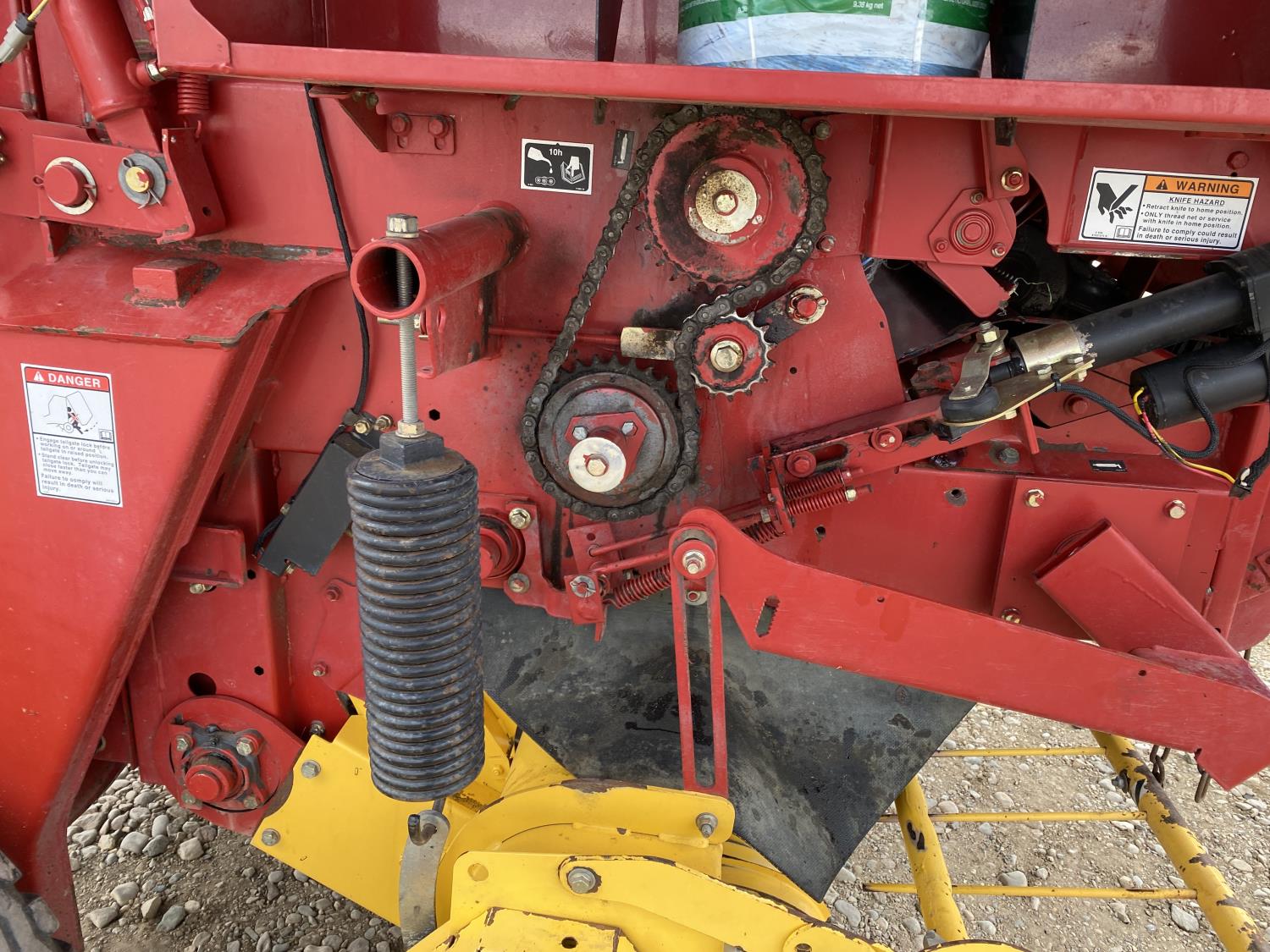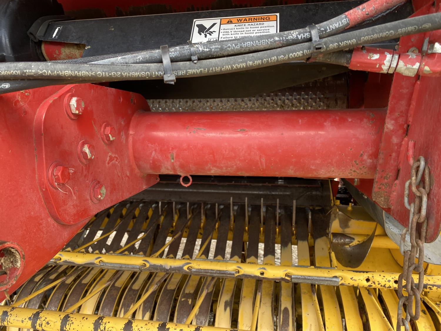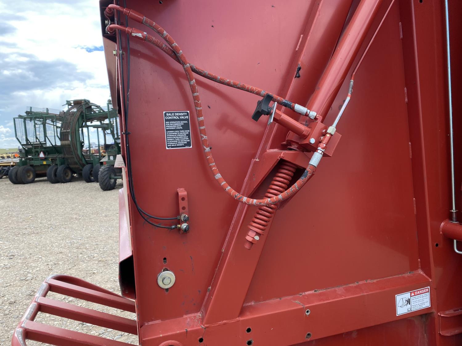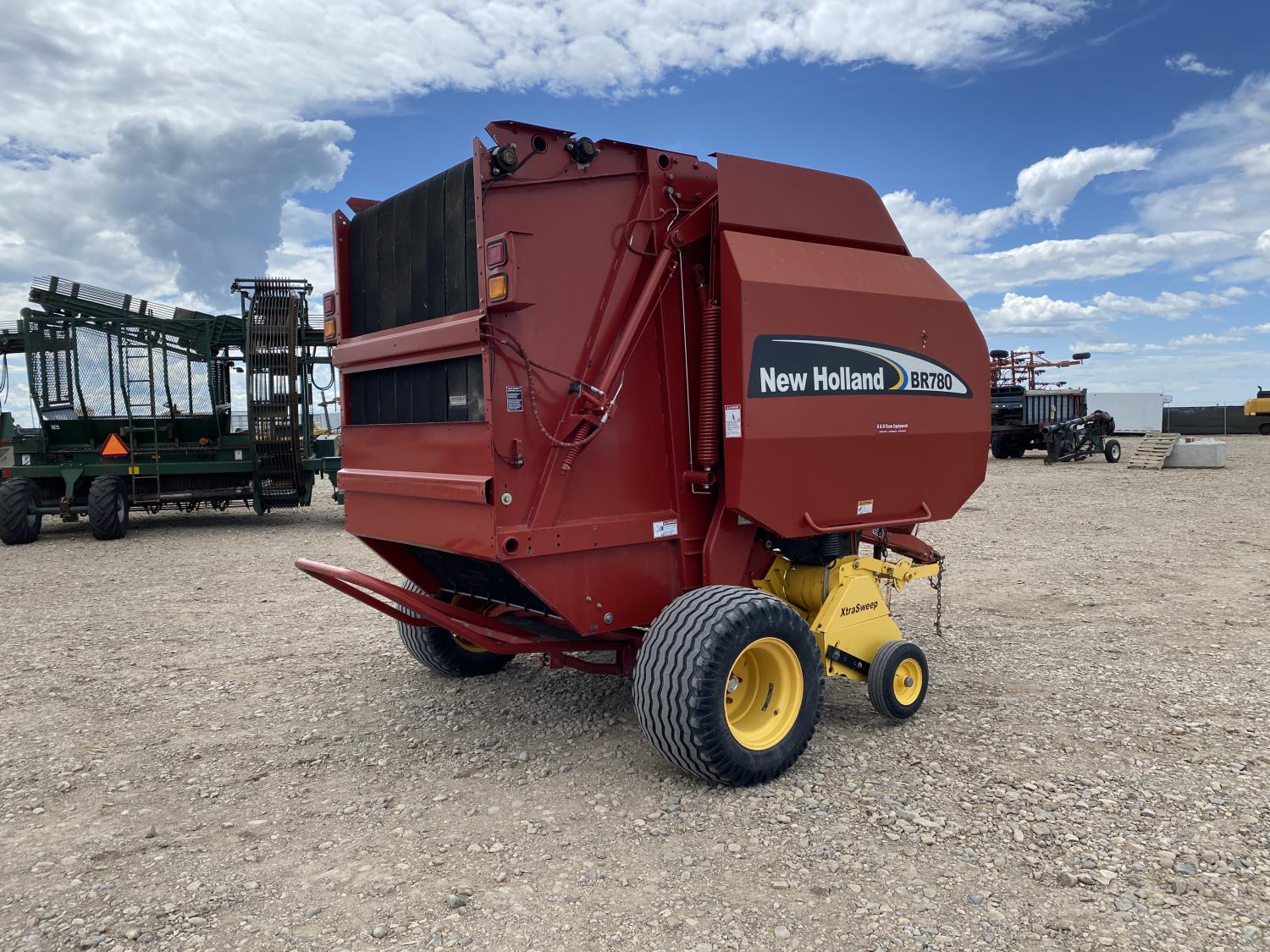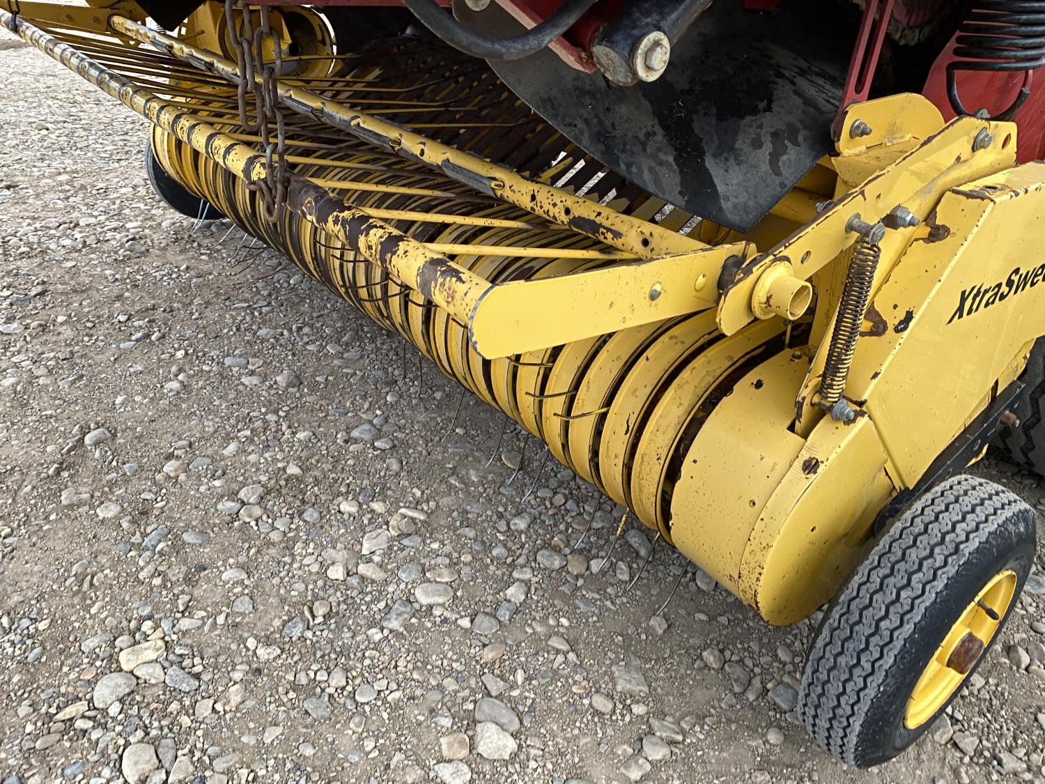 1000 PTO, XtraSweep, 78 inch pickup, hydraulic lift, (2) gauge wheels, 5x6 ft bale size, twine tie or net wrap, monitor, kicker, hydraulic tension, 20,000 bale count, 480/45-17 tires