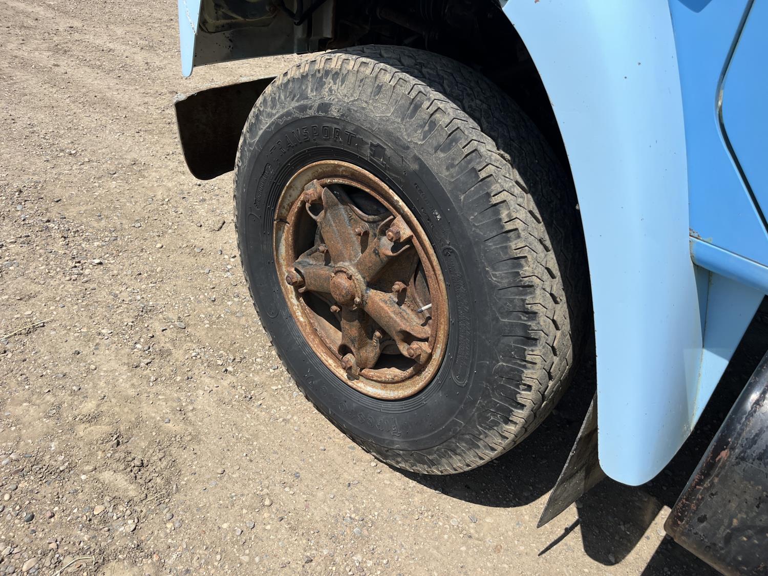 V8 gas engine, electric engine block heater, 5 X 2 manual transmission, 8 ft x 15 ft deck, spring suspension, 8.00-20 tires