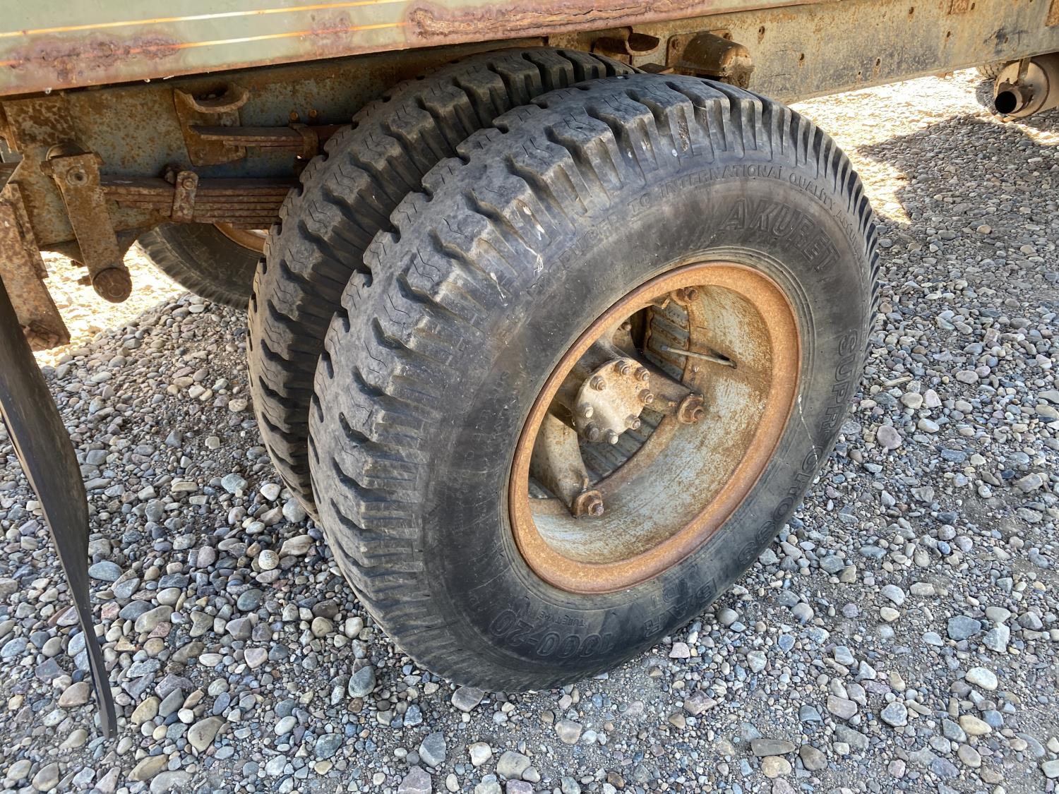 International V-345E 5.7 L V8 gas engine, 5X2 manual transmission, 15 ft box, PTO pump, spring suspension, 187 inch WB, 9.00R20 front tires, 10-20 rear tires