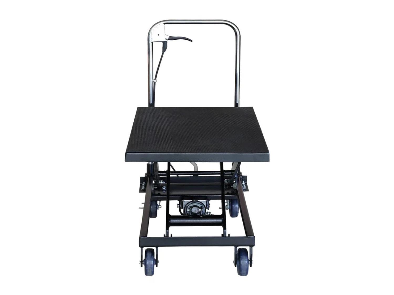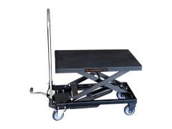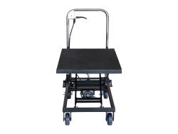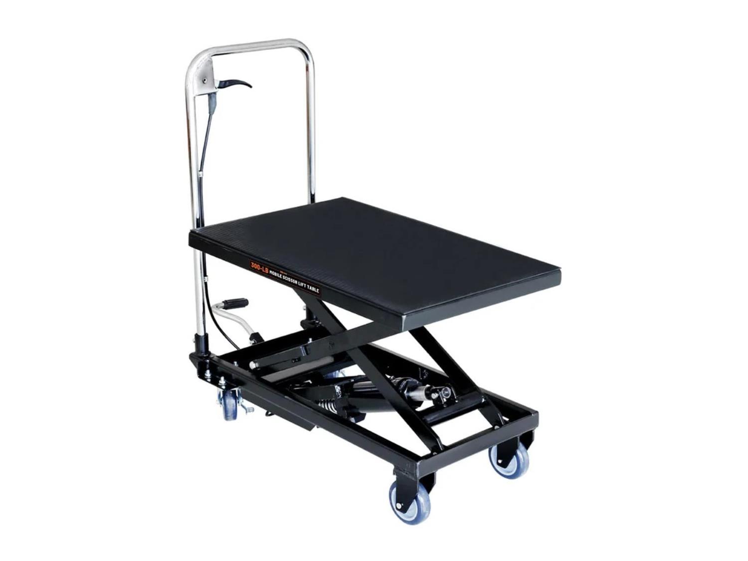 28 inch lifting height, foot pedal operation, rubber padded tabletop