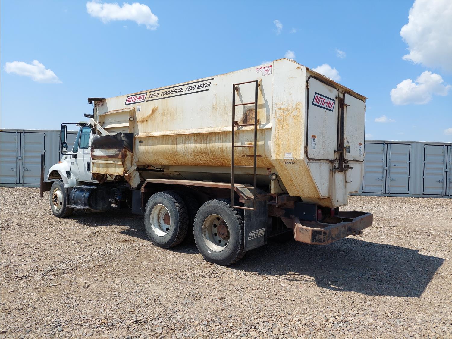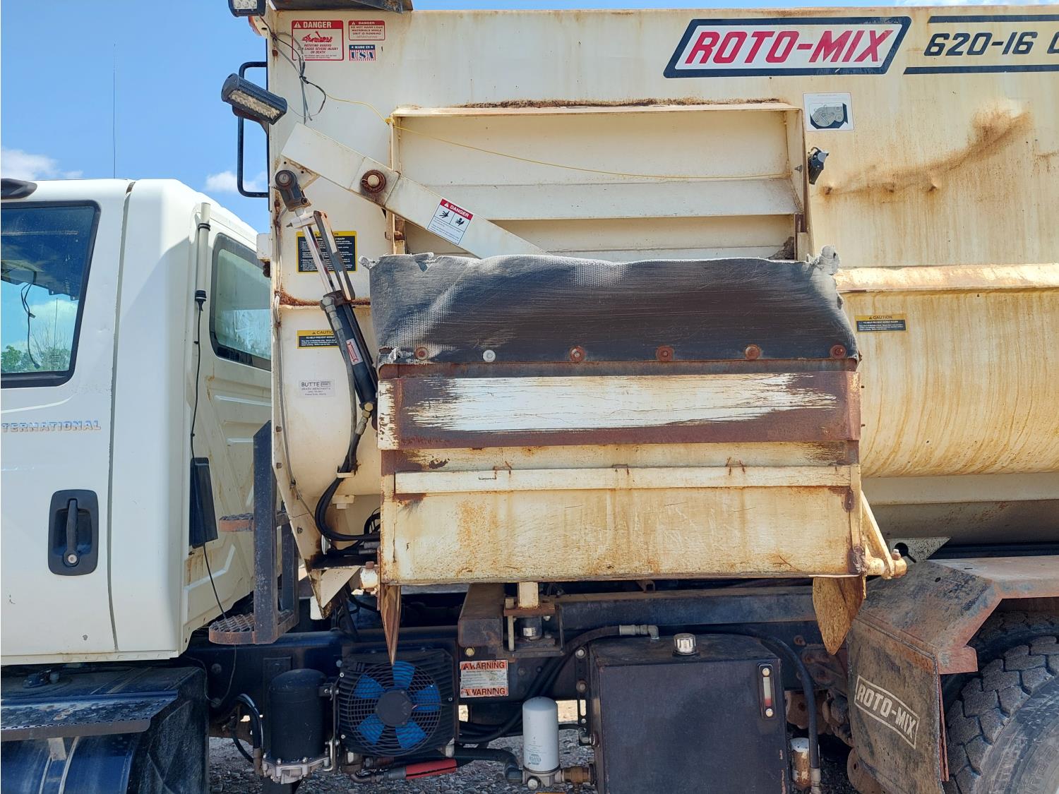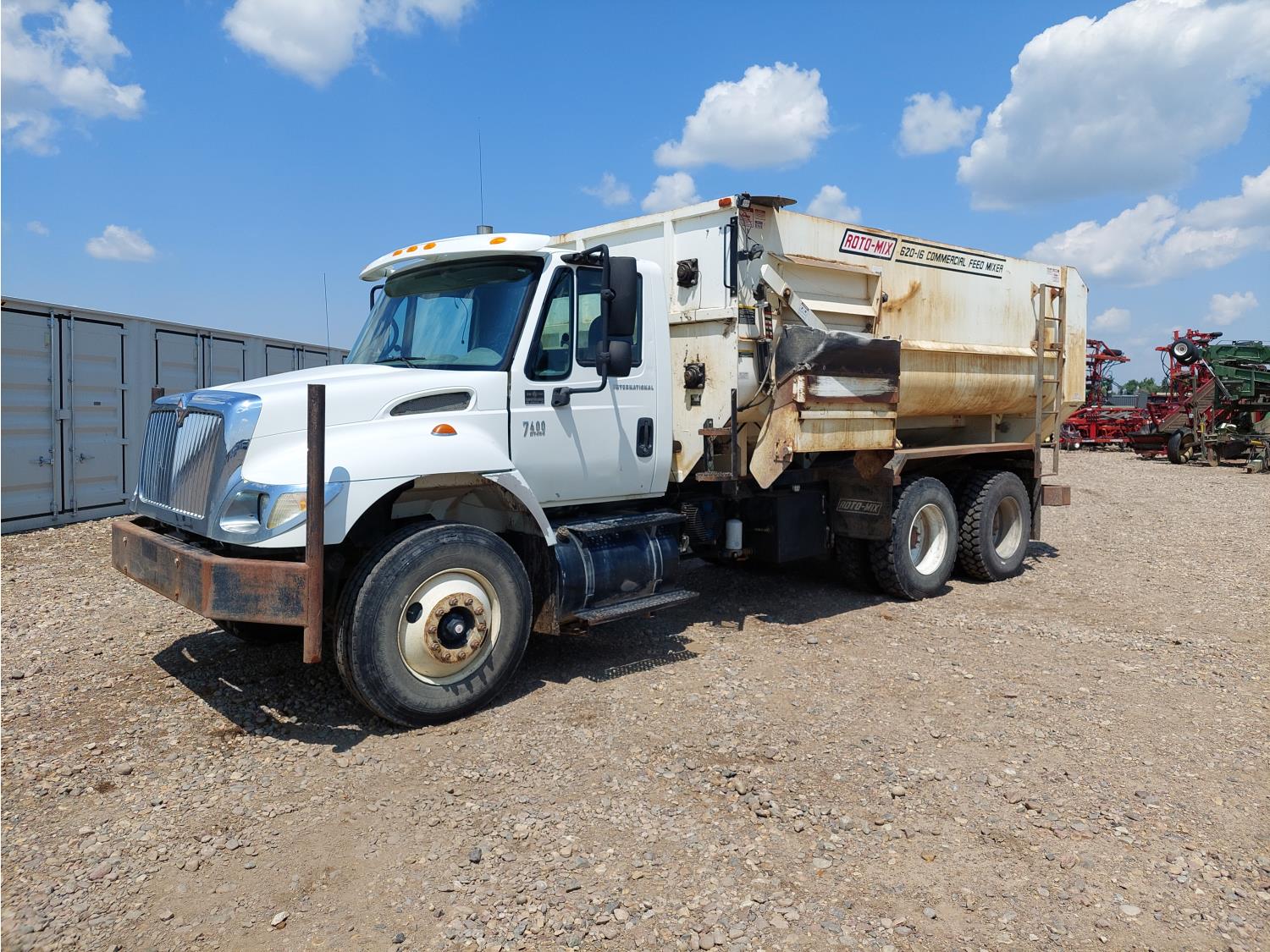 DT 466 7.6 L 6 cylinder engine, engine block heater, differential lock, Allison automatic transmission, Rotomix 620-16 box, Digi-Star scale, A/C, air ride driver seat, air ride suspension, 206 inch WB, Chelsea PTO, 11R22.5 tires