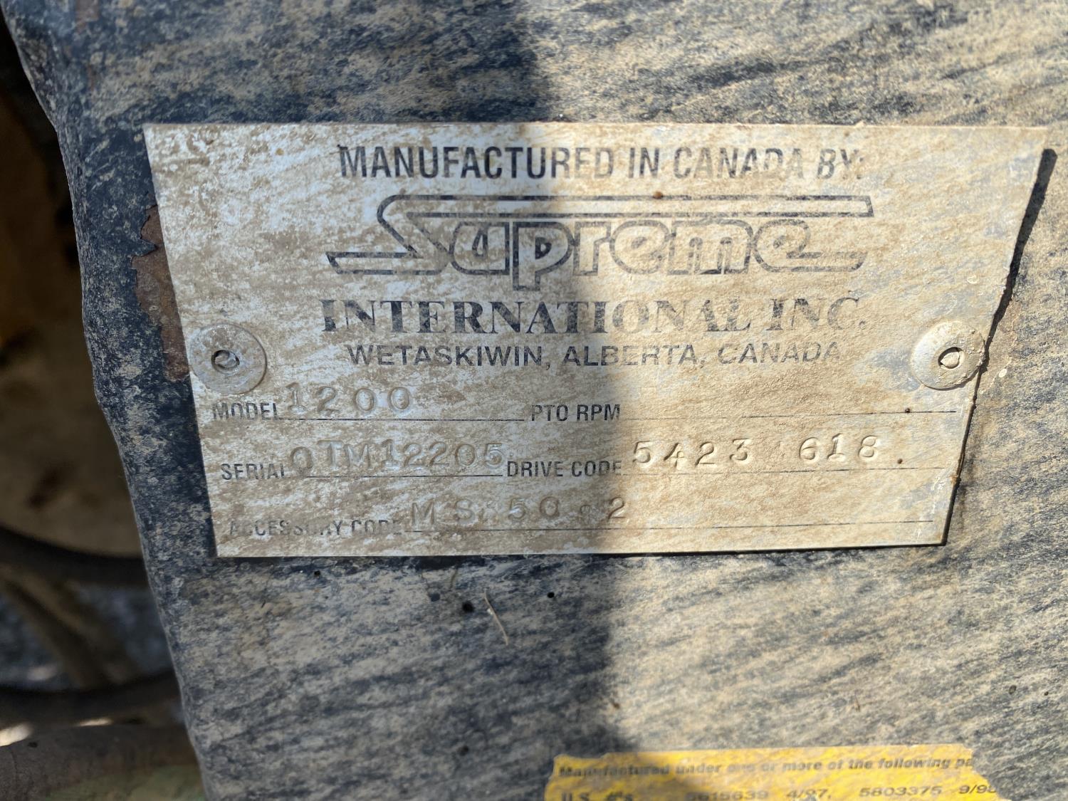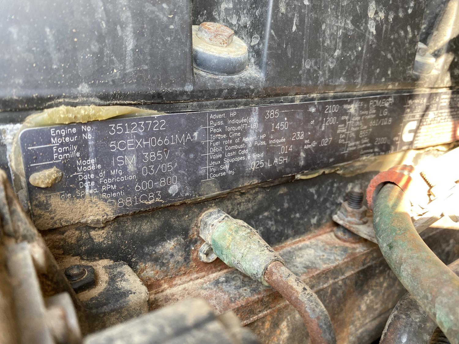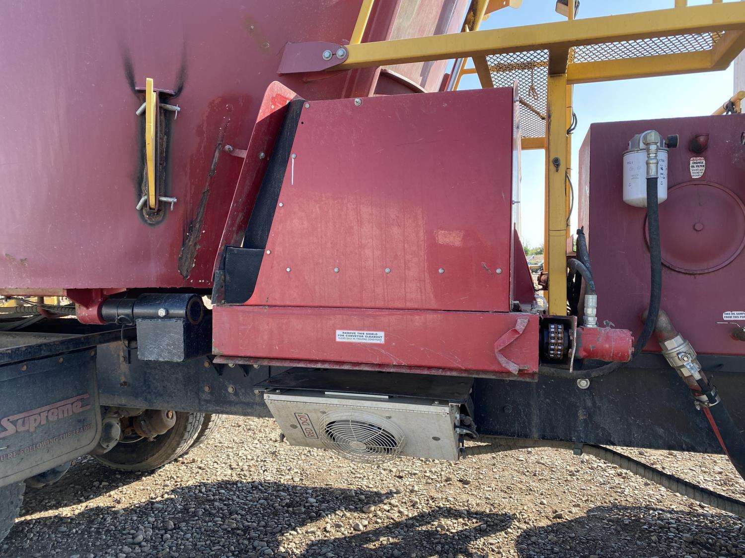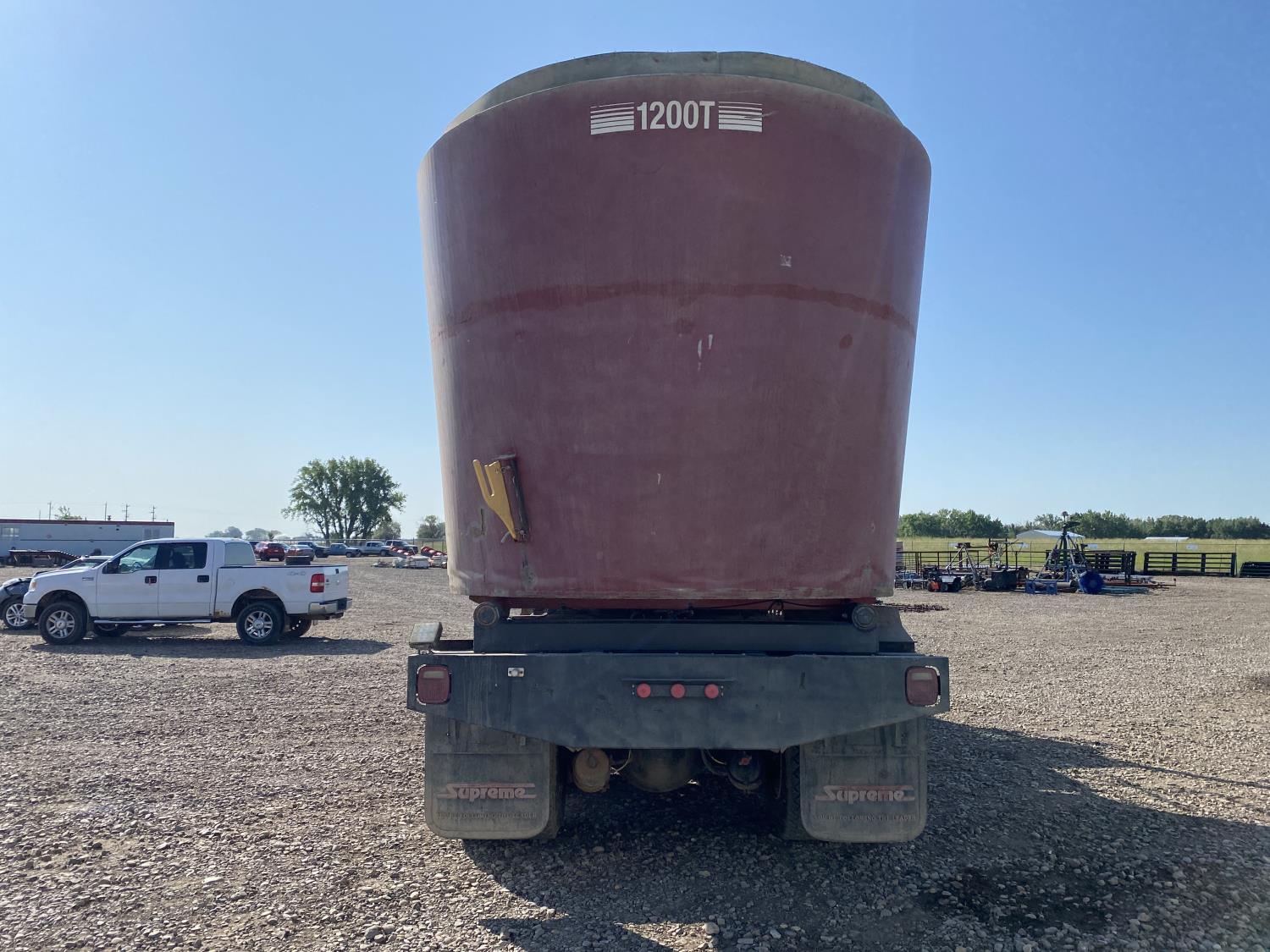 Cummins ISM 385V 10.8 L 6 cylinder 385 HP engine, engine block heater, automatic transmission, A/C, cruise control, air ride driver seat, front PTO pump, rubber block suspension, 18,000 lb front axle, 46,000 lb rear axles, differential lock, in cab Digi-Star EZ 2500V, 935 ft tub capacity, Supreme International 1200T feed mixer, vertical twin screw, 40 inch x 32 inch T discharge door, 32 inch discharge, left hand discharge, 240 inch WB, aluminum front wheels, 11R22.5 tires