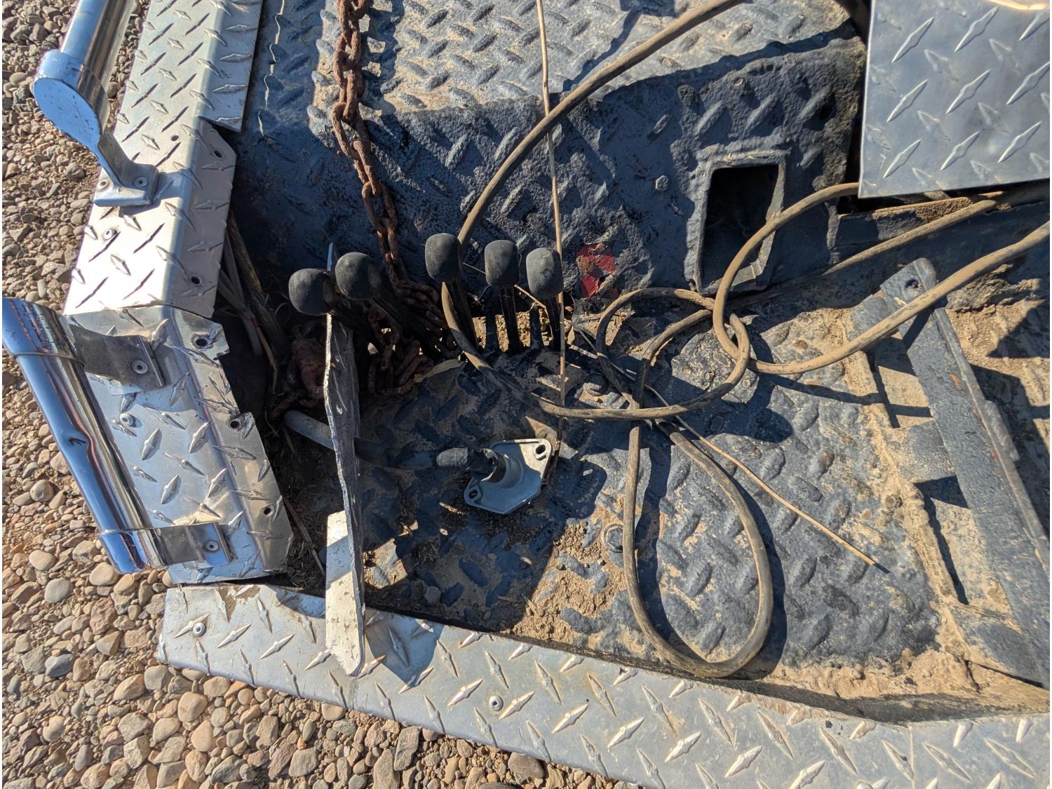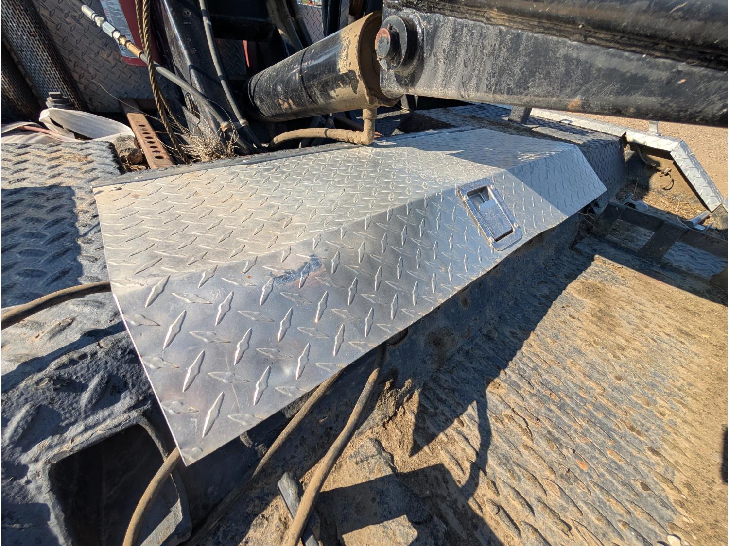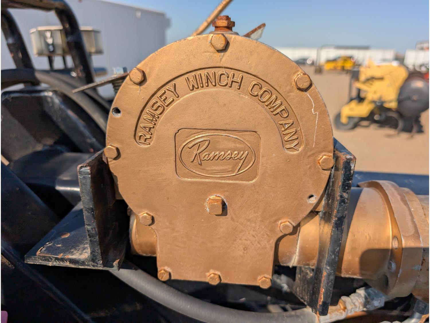 Ramsey hydraulic winch, auxiliary lighting, (3) storage boxes, rear hydraulic controls, Battery box, spare tire carrier w/ spare, exhaust stacks. Deck dimensions: 90 Inch L X 82 Inch W