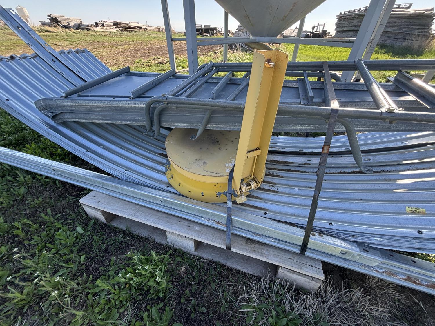 2,700± bu capacity, Westeel 6 leg hopper, 2 foundation rings, ladder, lid opener, vertical aeration