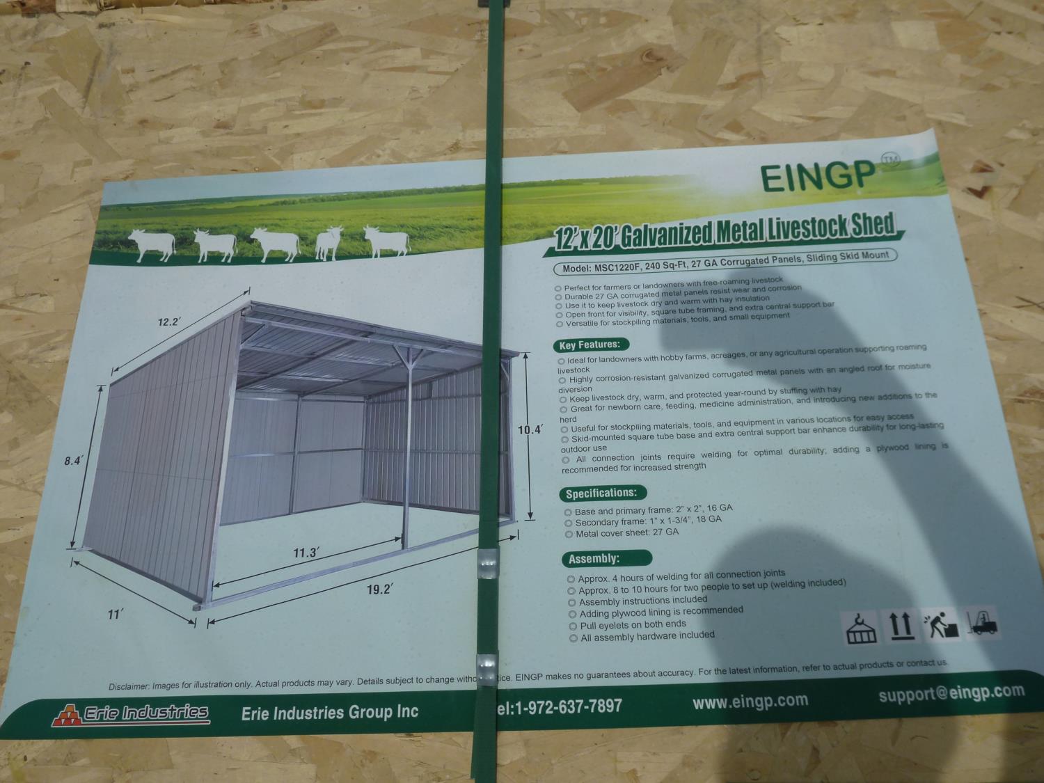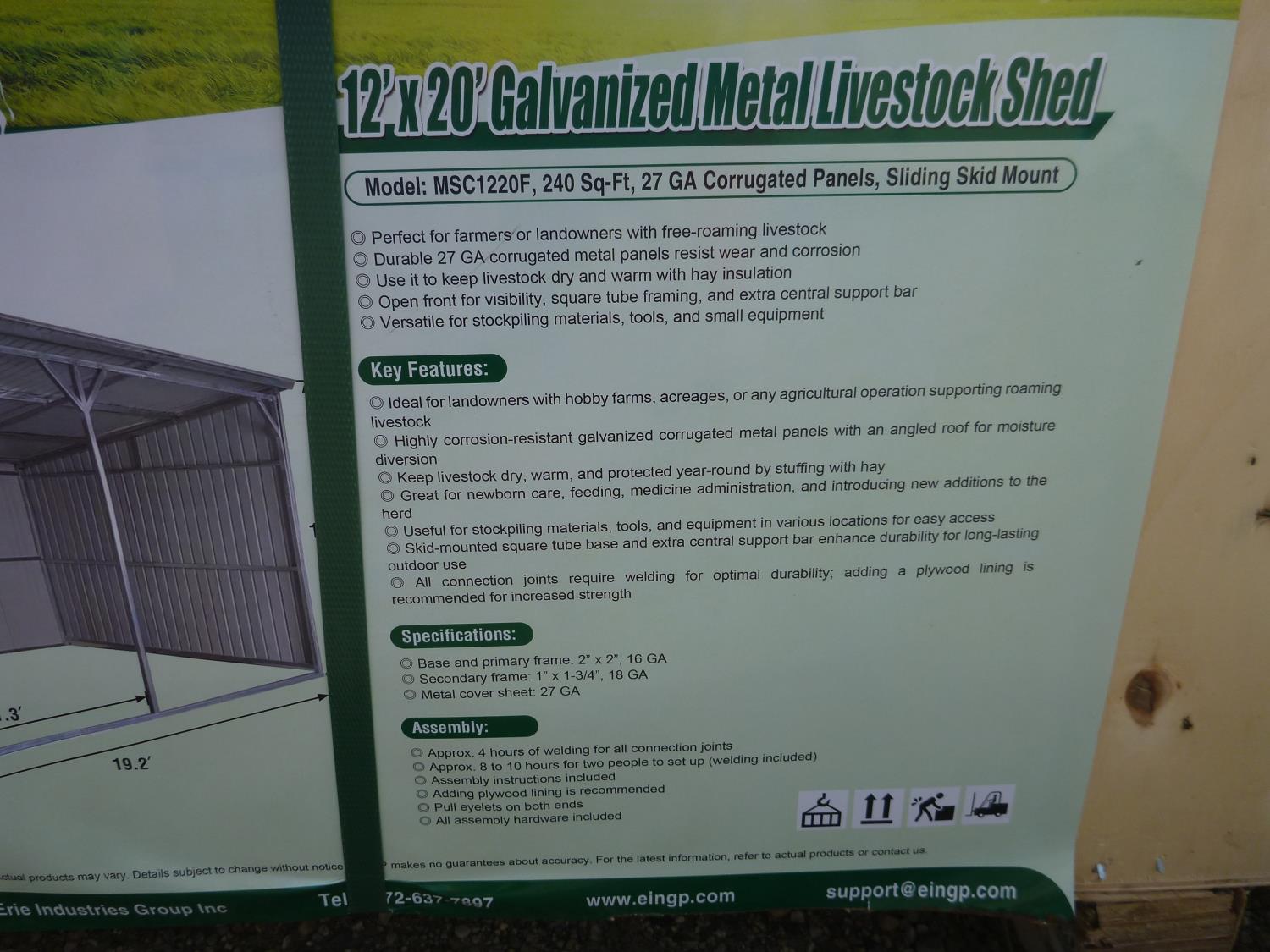 3930 12 Ft X 20 Ft Galvanized Metal Livestock Shed (Unused)