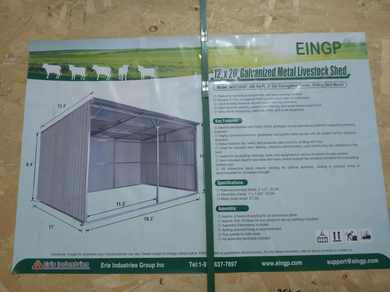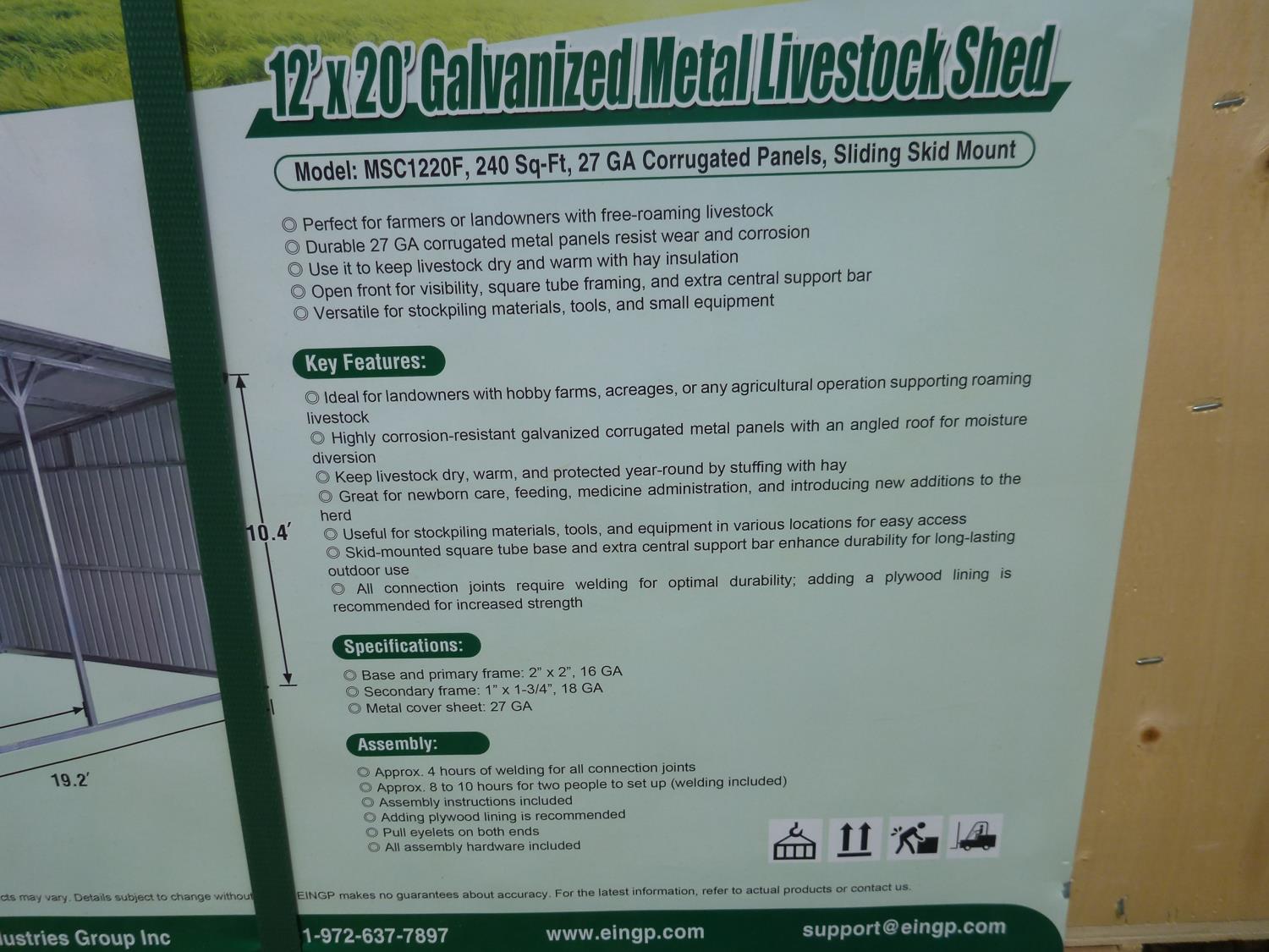 3931 12 Ft X 20 Ft Galvanized Metal Livestock Shed (Unused)