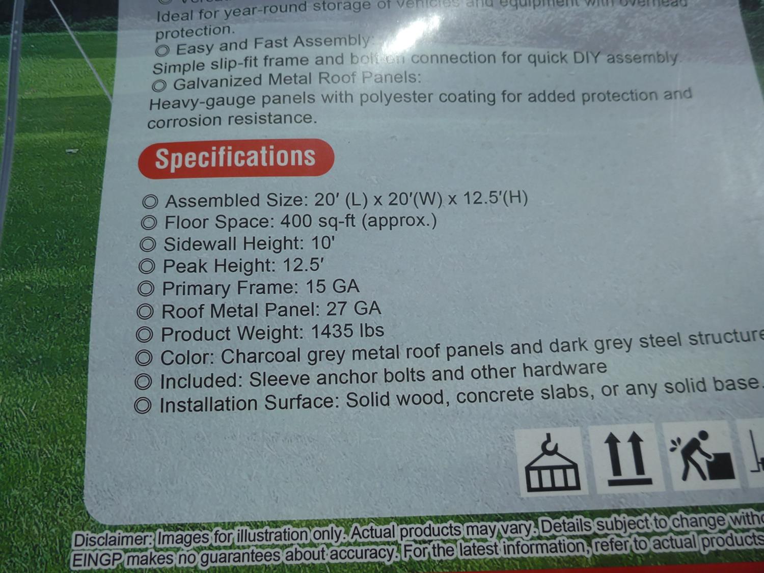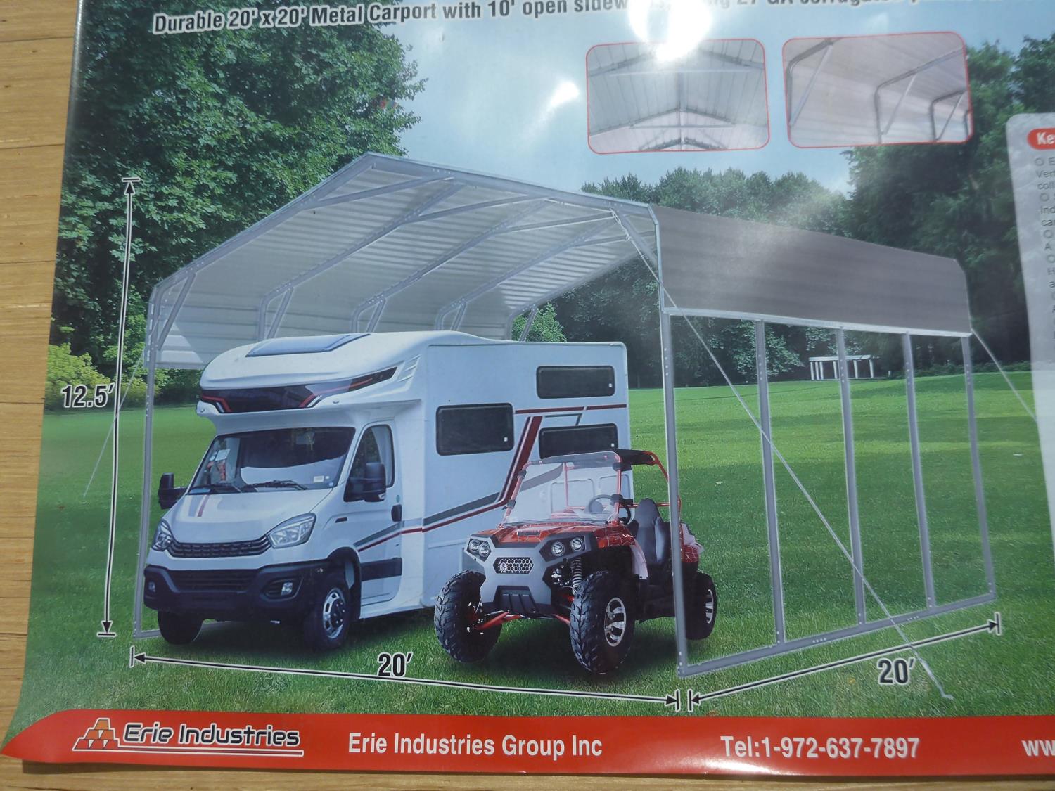 3914 20 Ft X 20 Ft All-Steel Carport (Unused)