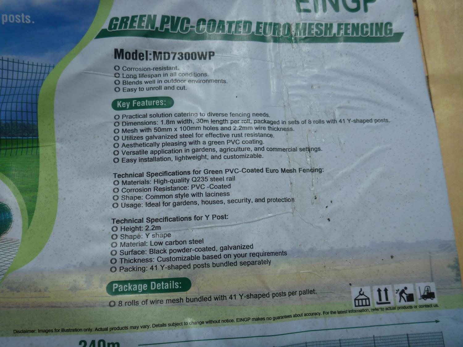 240 M total length, 8 rolls @ 30 m each, 41 Y-shaped posts